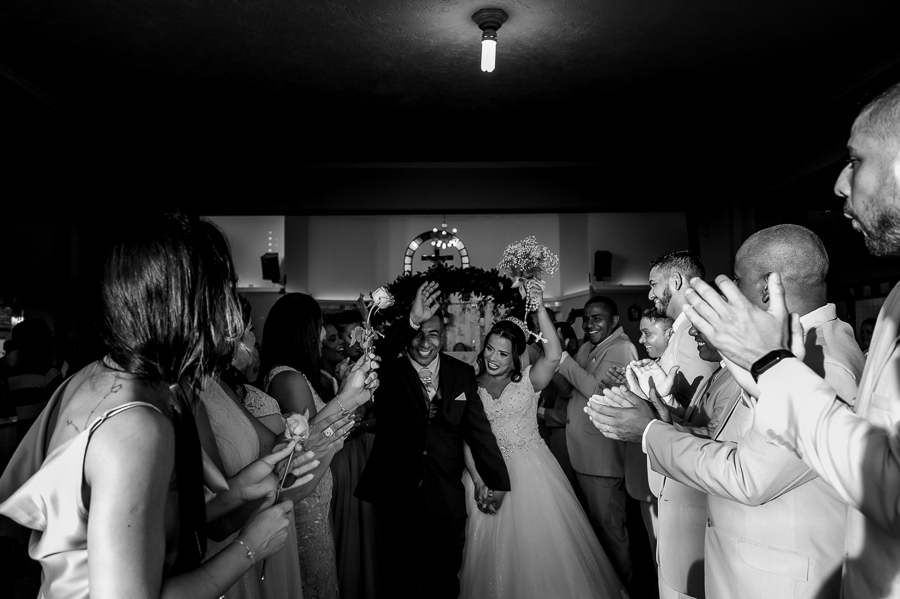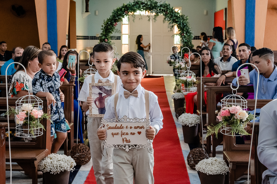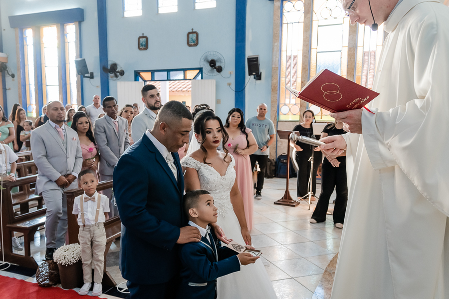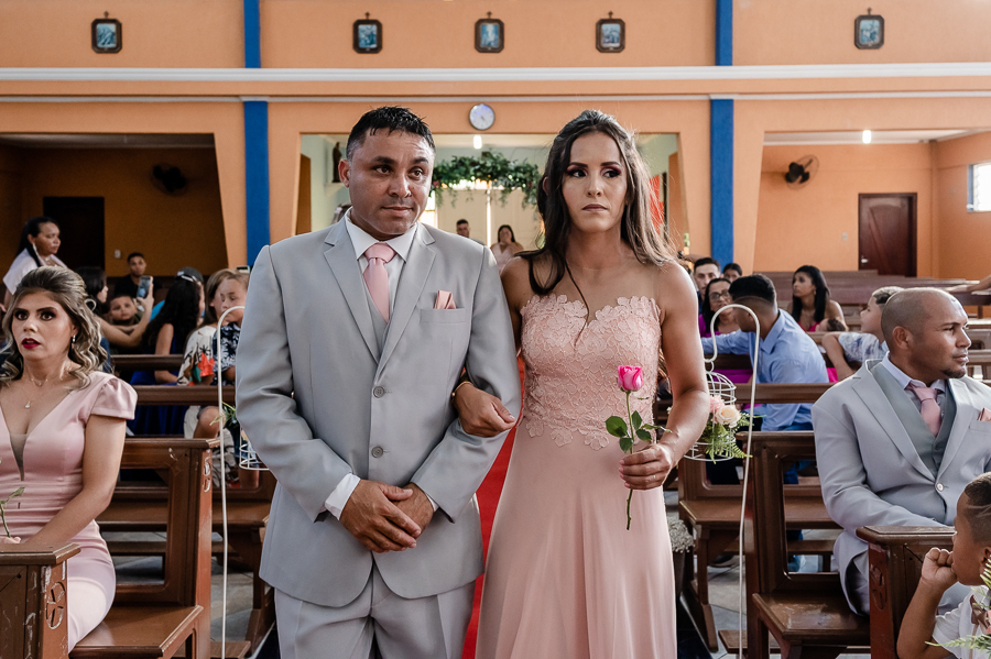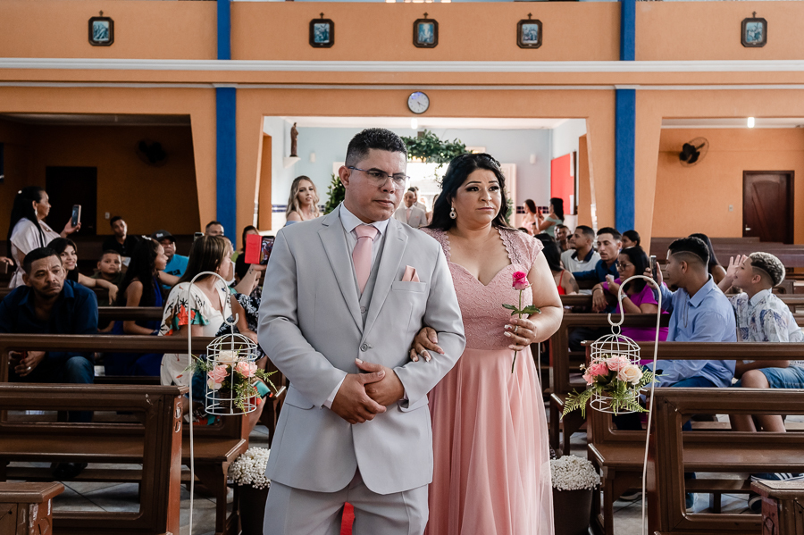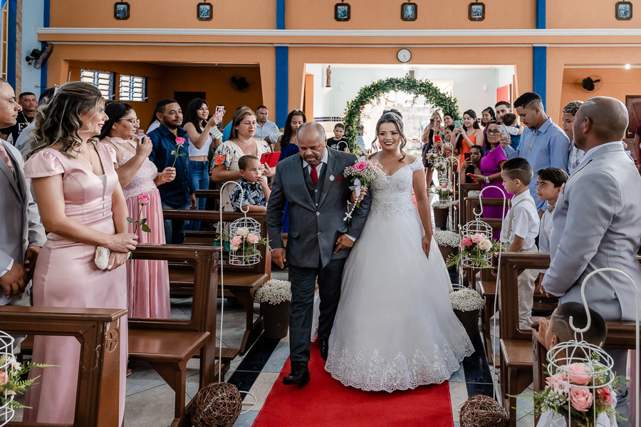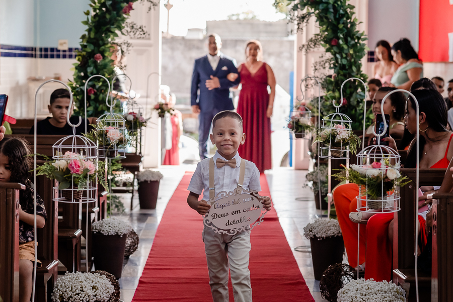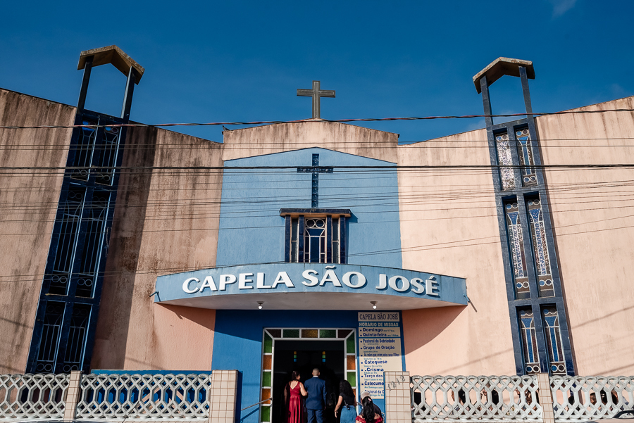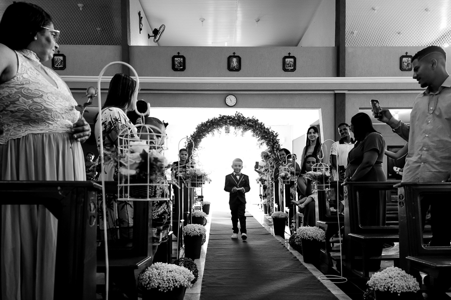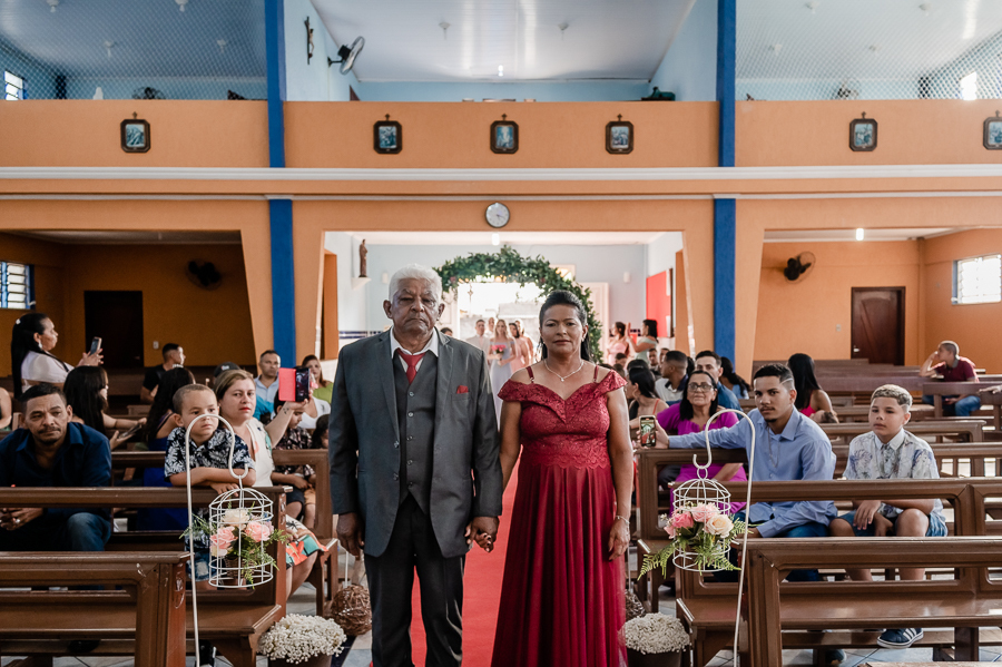 Seguimos então para a igreja, onde acompanhamos a chegada do noivo, das madrinhas e padrinhos, da família e amigos.