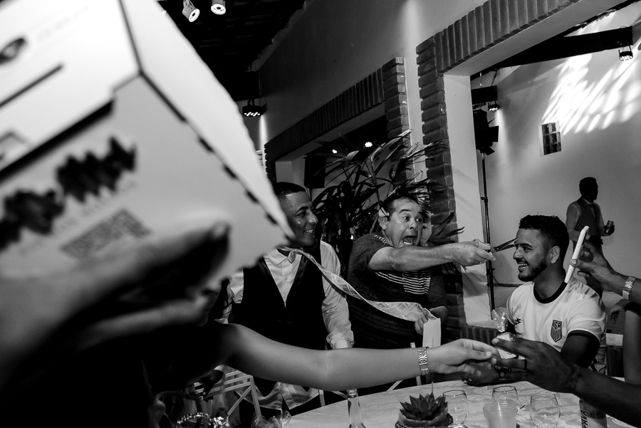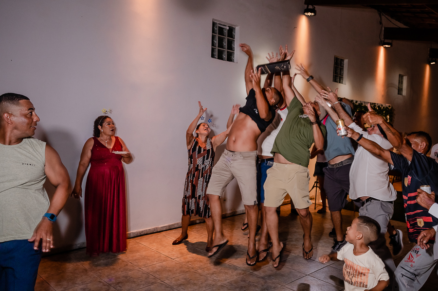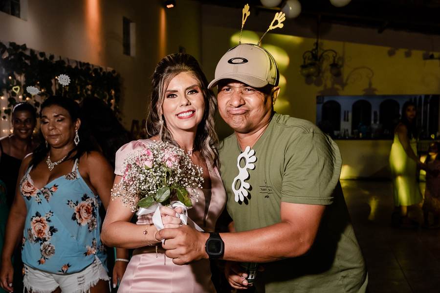 Teve momento da gravata, buquê da noiva e garrafa do noivo. Teve até um pedido de casamento do irmão do Ivaldo, e está tudo registrado hein!!
