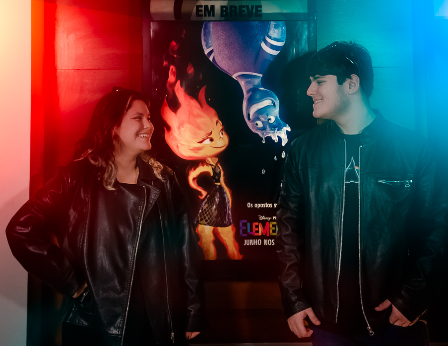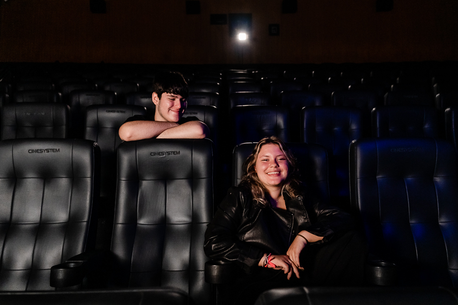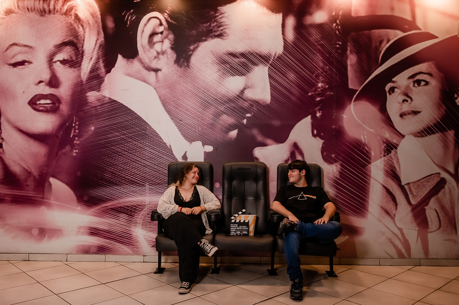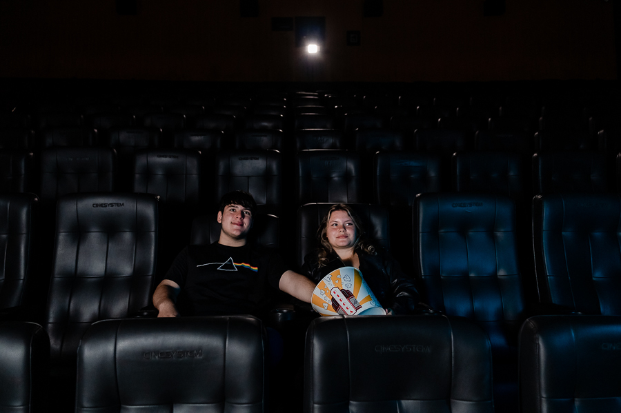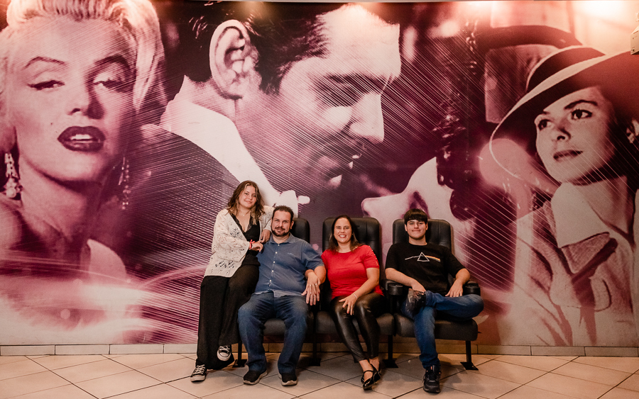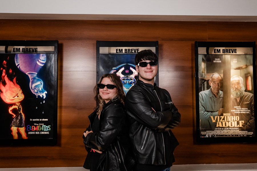 Junto com a Eduarda e o Arthur estavam seus pais, que acompanharam o ensaio, um pouco a distância, a pedido dos filhos, mas que estavam super felizes em realizarem esse pedido de um ensaio no cinema.
