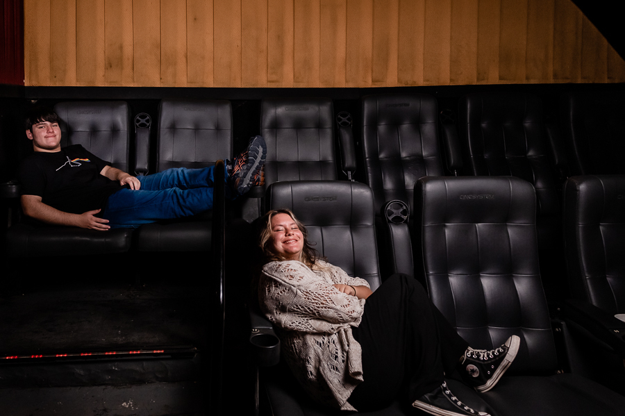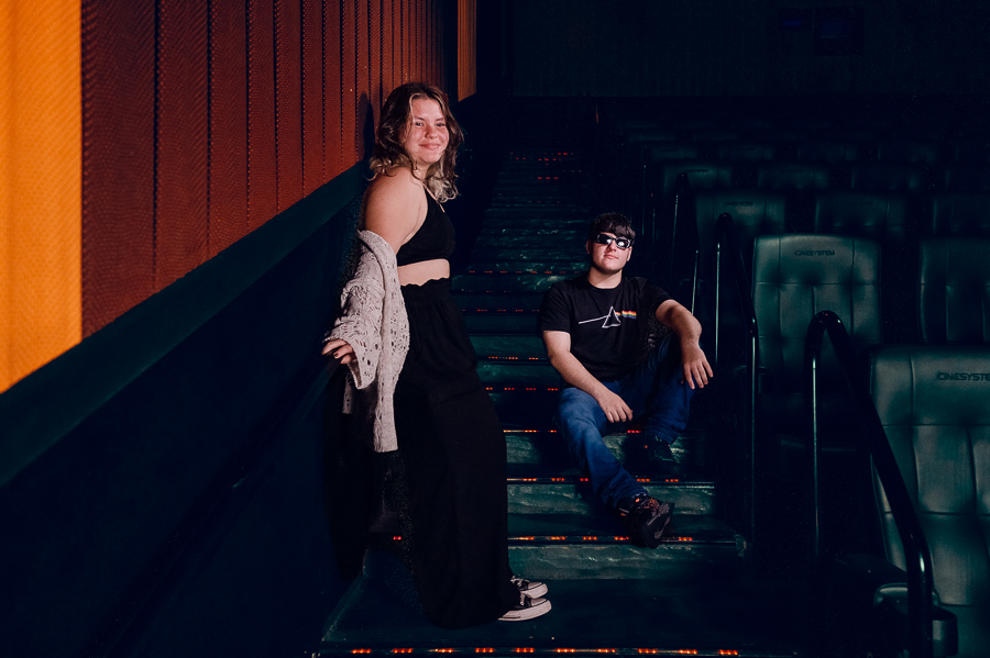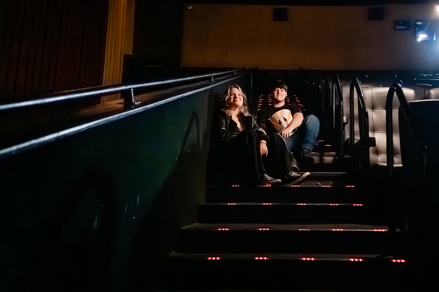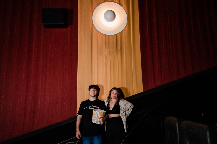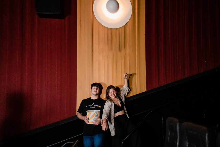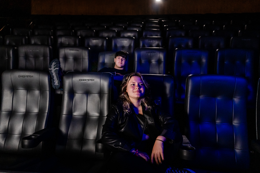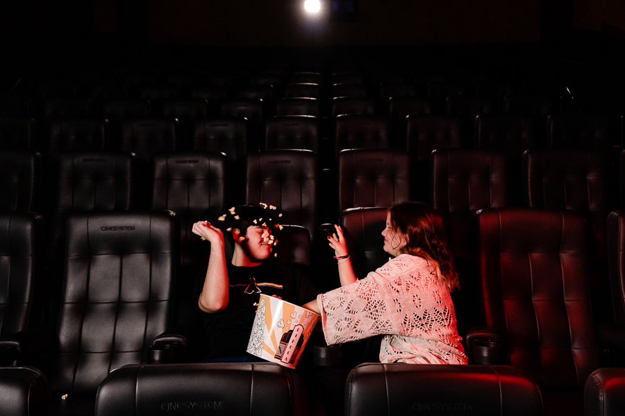 Junto com a Eduarda e o Arthur estavam seus pais, que acompanharam o ensaio, um pouco a distância, a pedido dos filhos, mas que estavam super felizes em realizarem esse pedido de um ensaio no cinema.