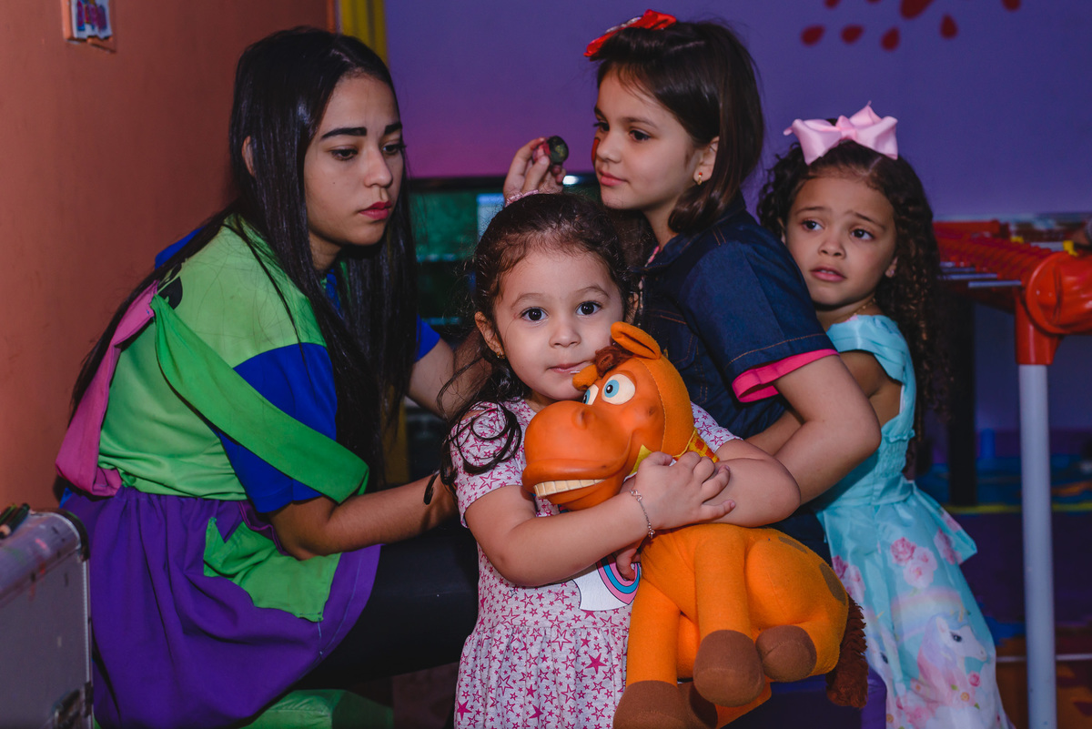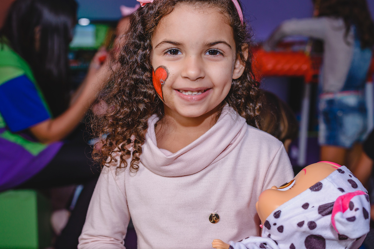 A Lilly estava tímida no início, mas logo estava dando sorrisos e brincando com as amigas. O videogame foi sua principal escolha para se divertir. Ela correu, recebeu os convidados com carinho, aproveitou cada minuto com muita felicidade.