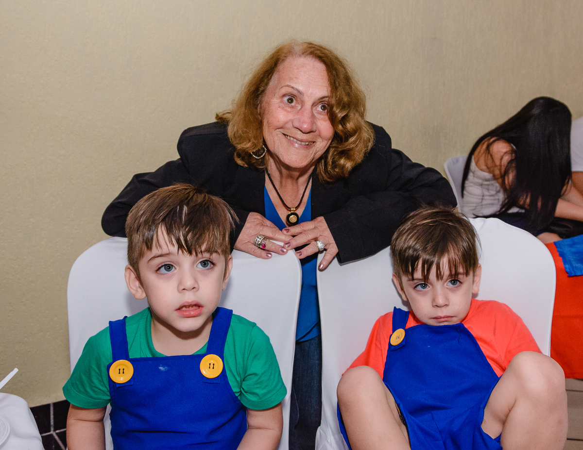 A mamãe Ariane como sempre recebendo à todos com seu sorriso e orgulho de seus meninos encantadores. As vovós e o vovô sempre muito animados e com toda atenção com o Arthur e o Bernardo.
