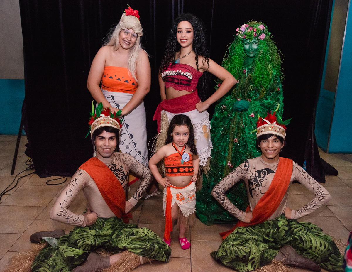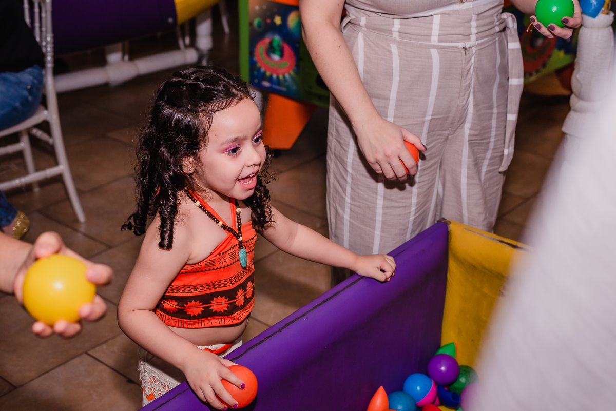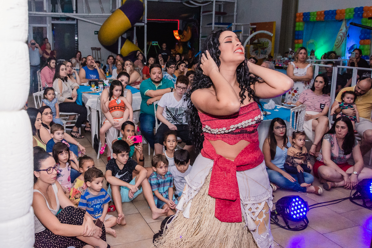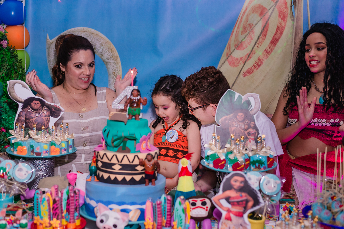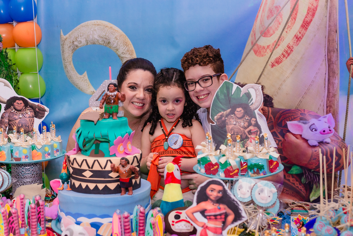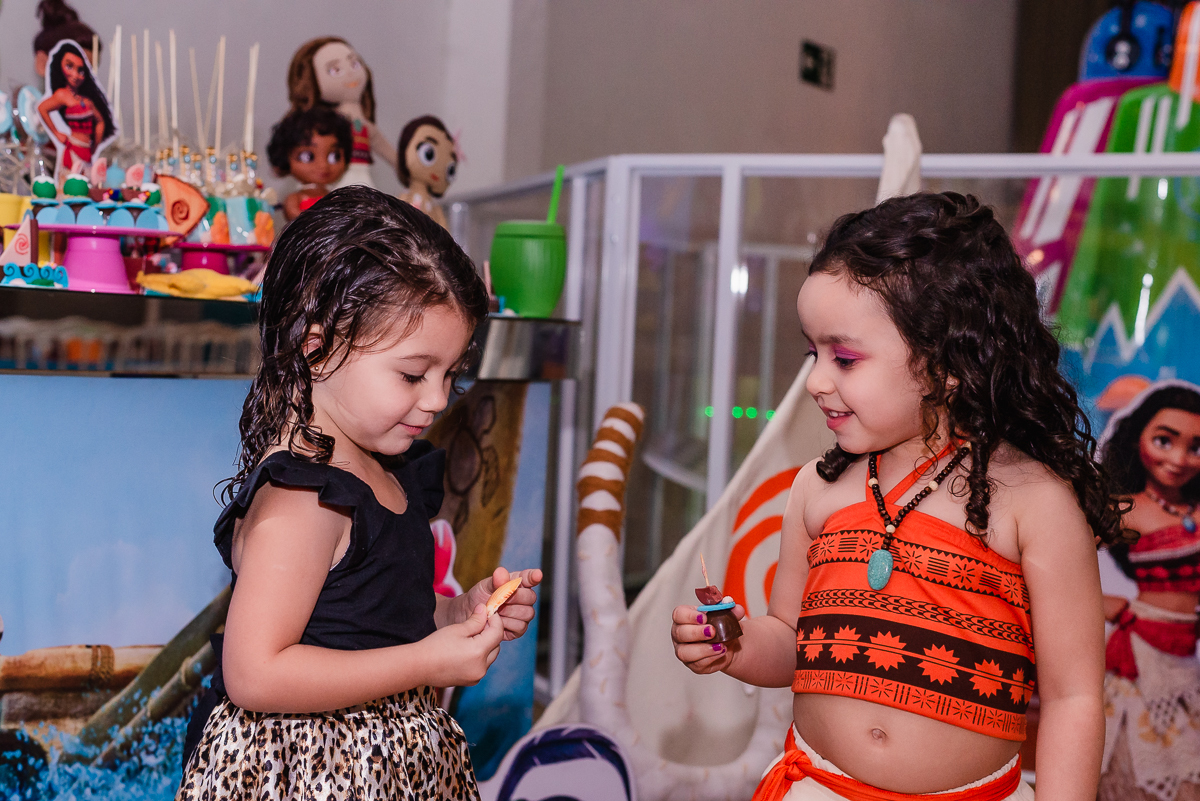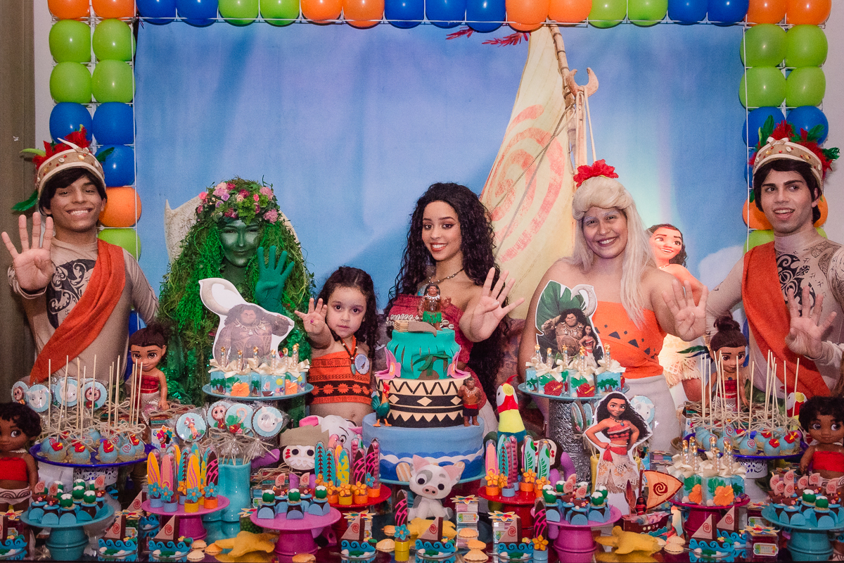 A Maya veio toda no estilo de Moana, um dos seus desenhos prediletos e pode contemplar uma mesa temática do mesmo desenho realizado no Buffet Magic Time, na cidade de Praia Grande - SP.