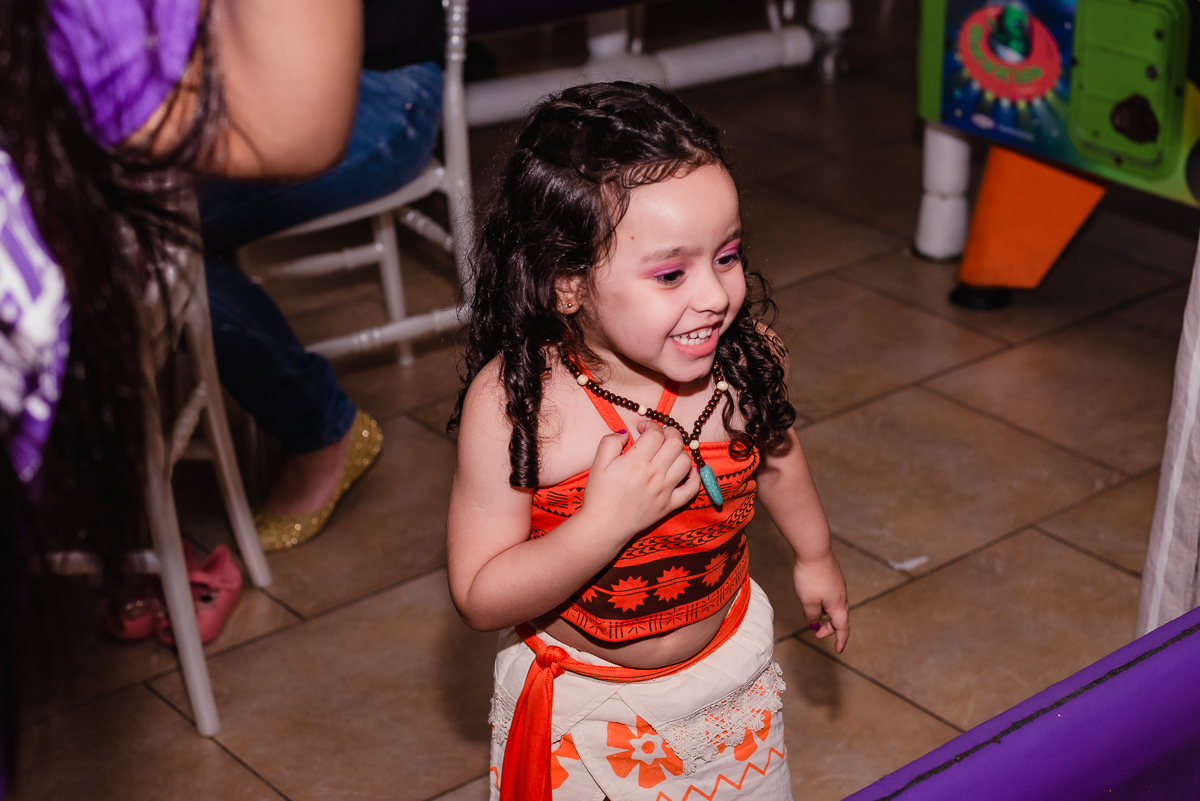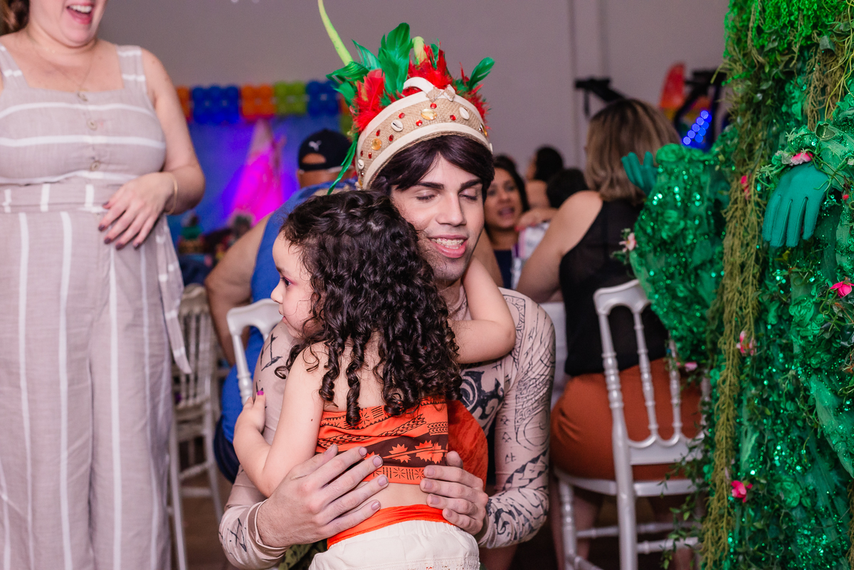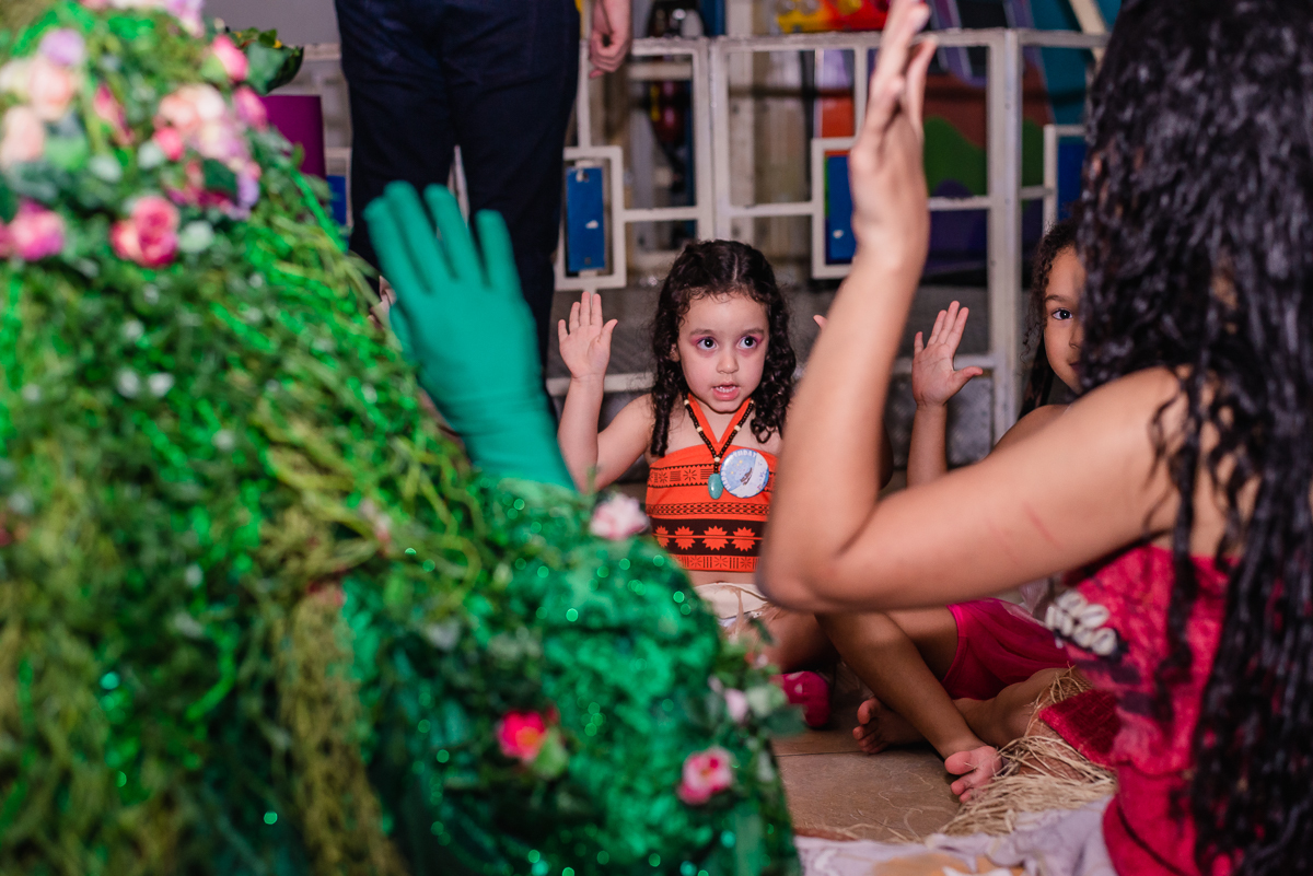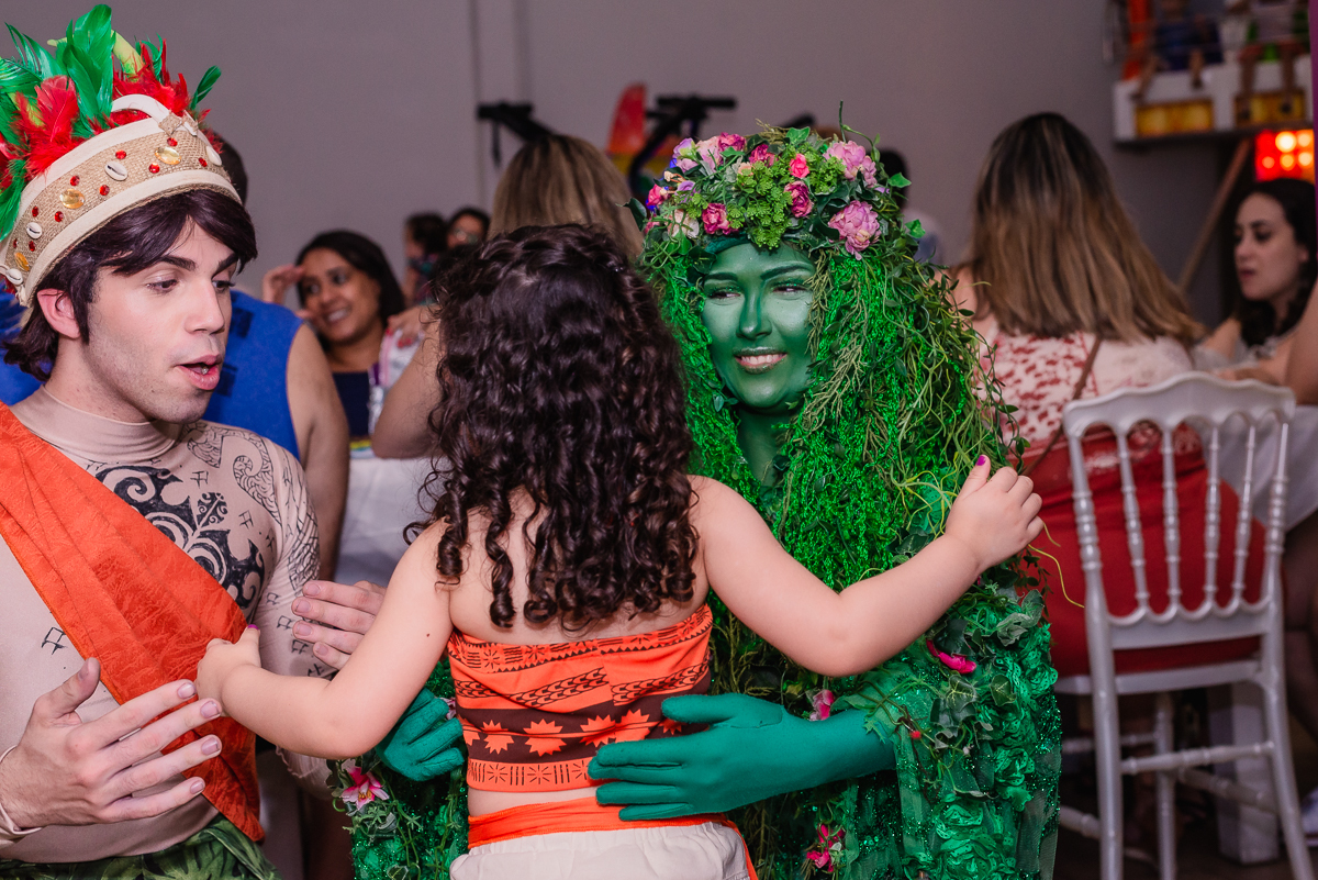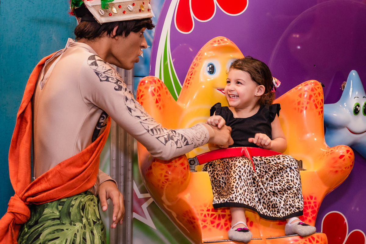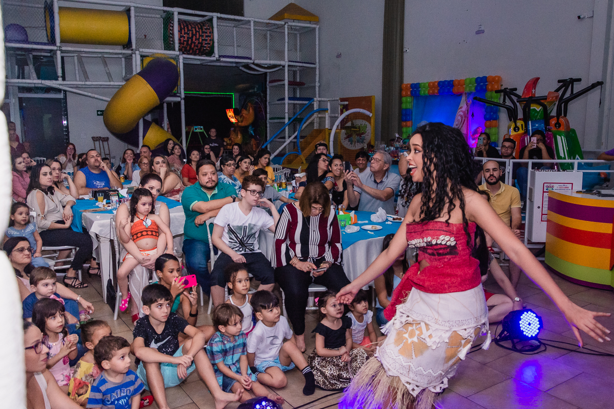 A Maya veio toda no estilo de Moana, um dos seus desenhos prediletos e pode contemplar uma mesa temática do mesmo desenho realizado no Buffet Magic Time, na cidade de Praia Grande - SP.