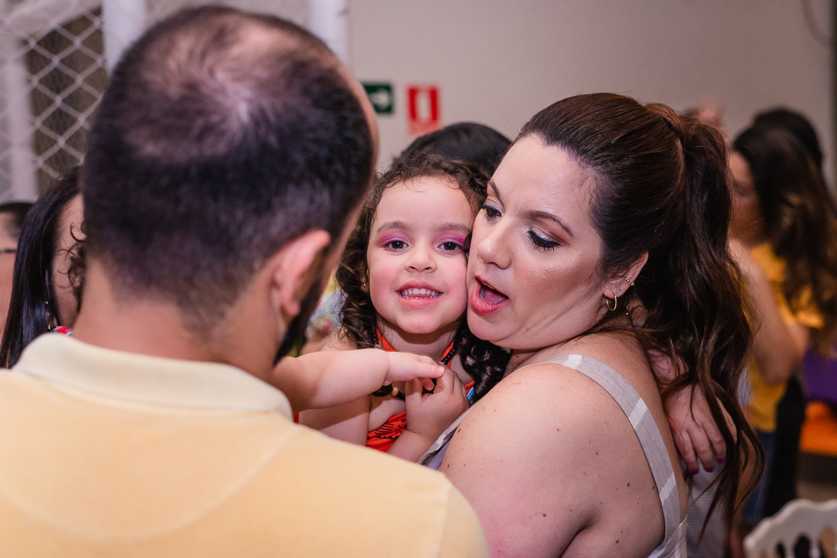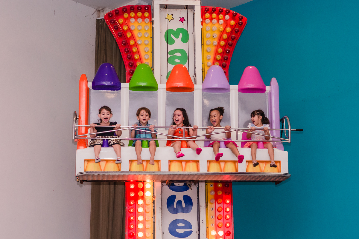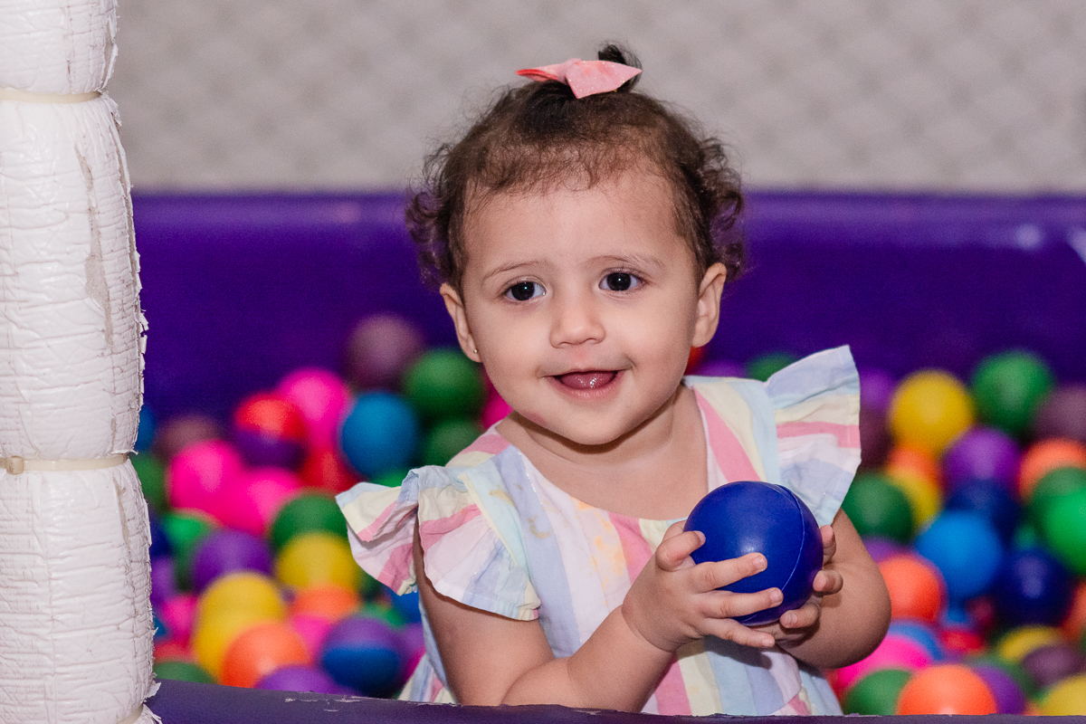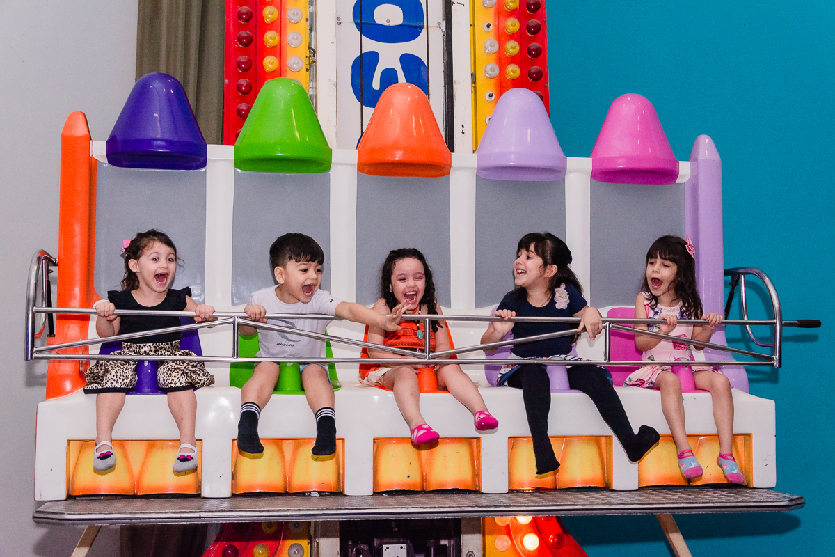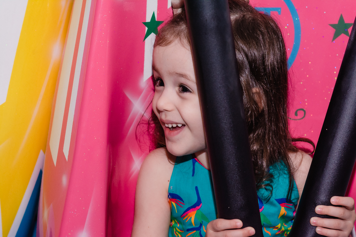 Ela recebeu seus amiguinhos e familiares; se divertiu entre o pula pula, escorregador e principalmente a adrenalina do elevador.