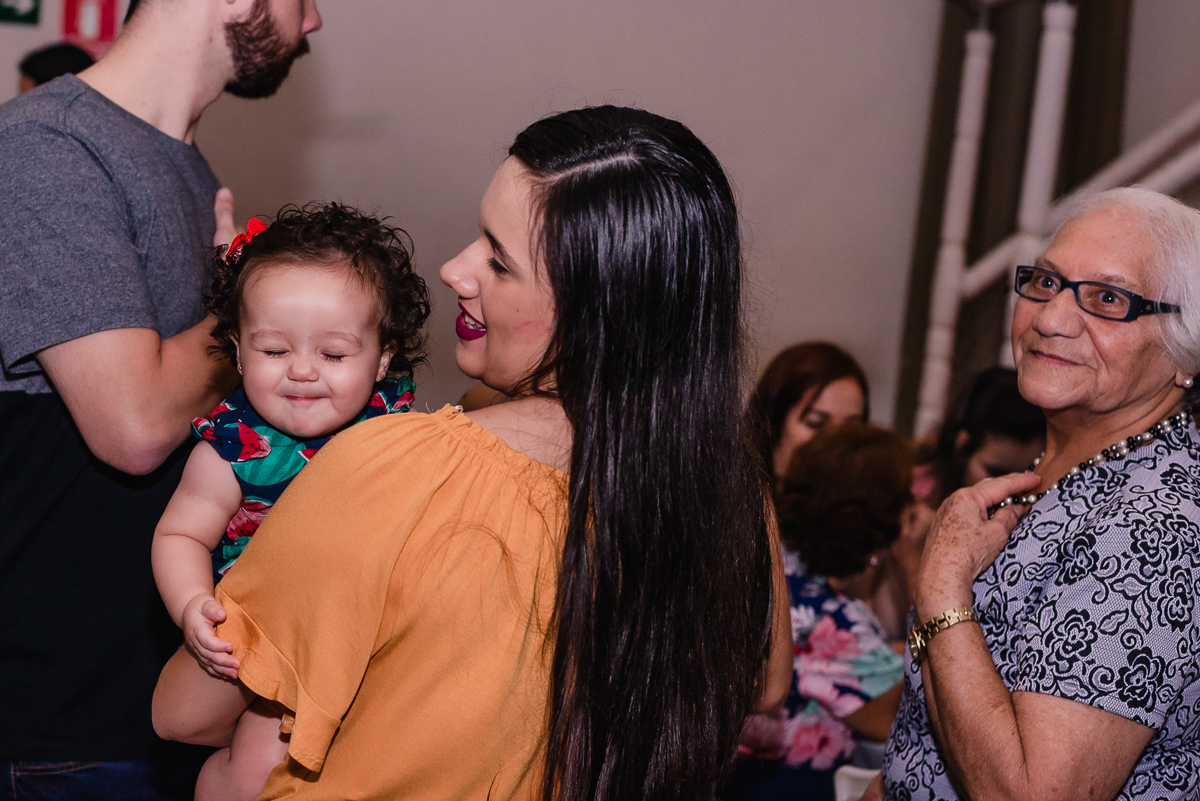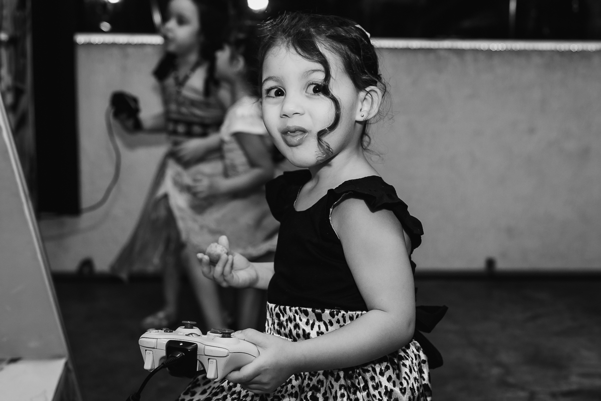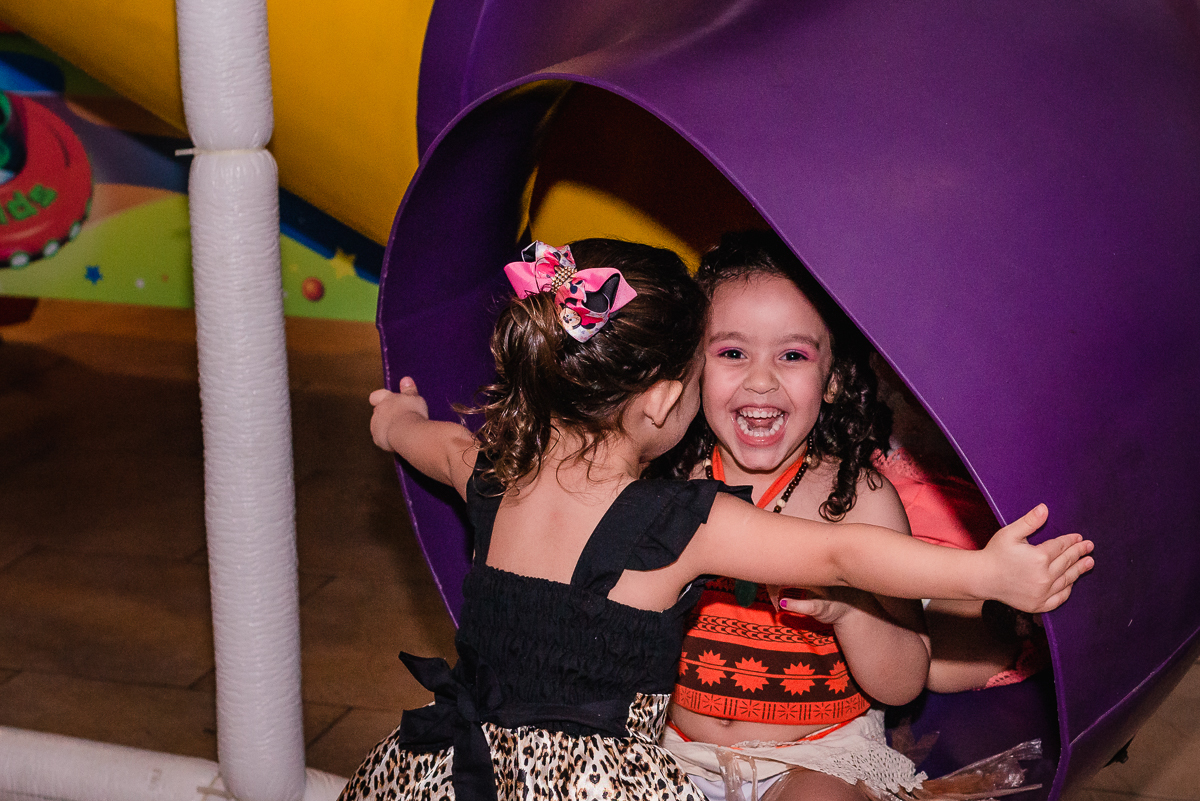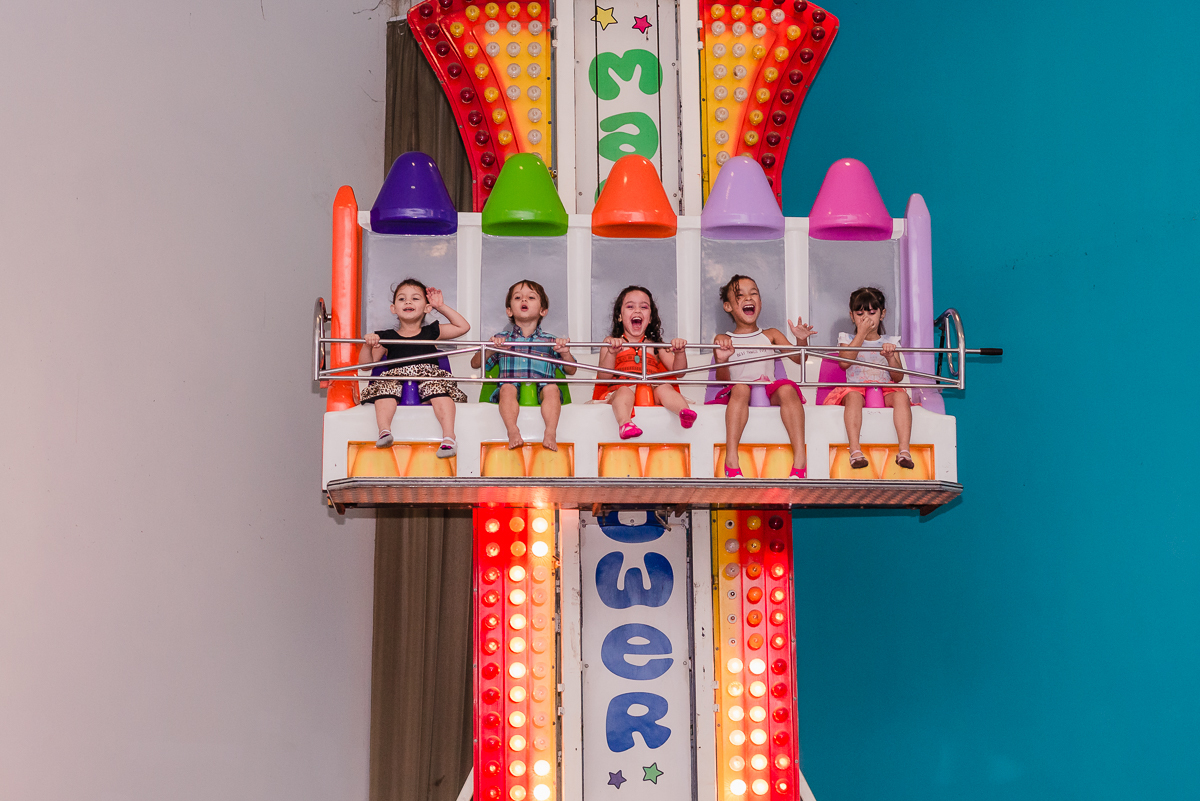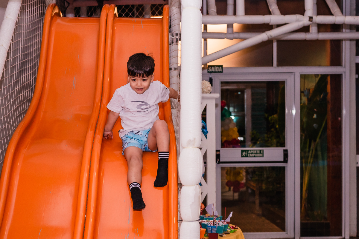 Ela recebeu seus amiguinhos e familiares; se divertiu entre o pula pula, escorregador e principalmente a adrenalina do elevador.