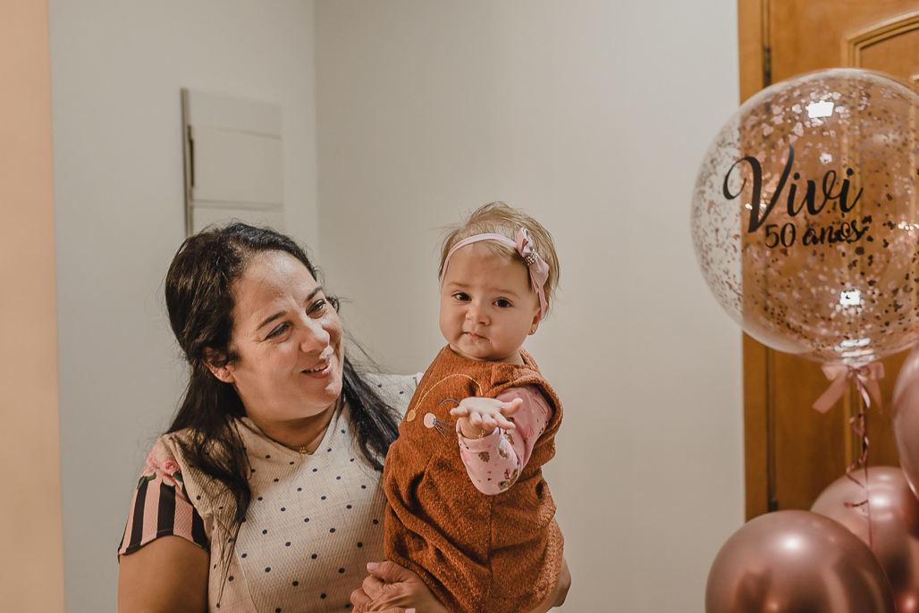 A dona Vivi comemorou seus 50 anos de idade dentro do seu apartamento na cidade de Praia Grande, no estado de São Paulo, ao lado de seus familiares mais próximos e claro seus netos que deram um show à parte de alegria pela casa, que diga a mais nova membro da família, a Lorena. Que fez a alegria das titias com suas carinhas e sorrisos!