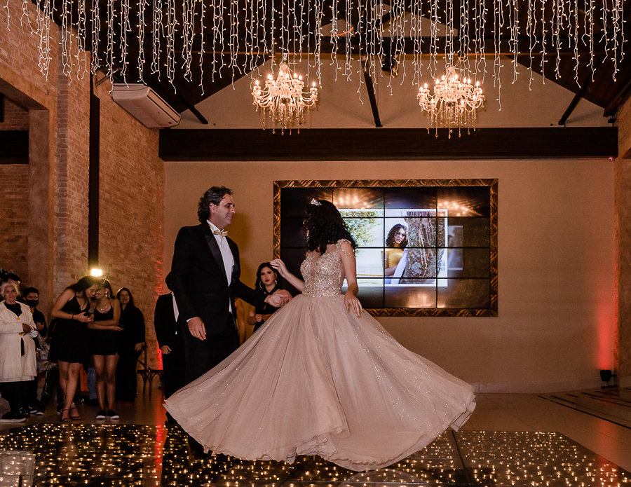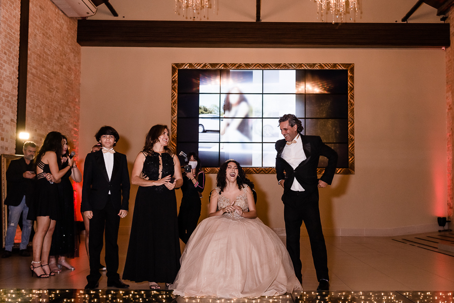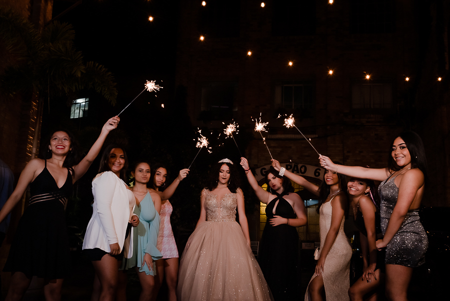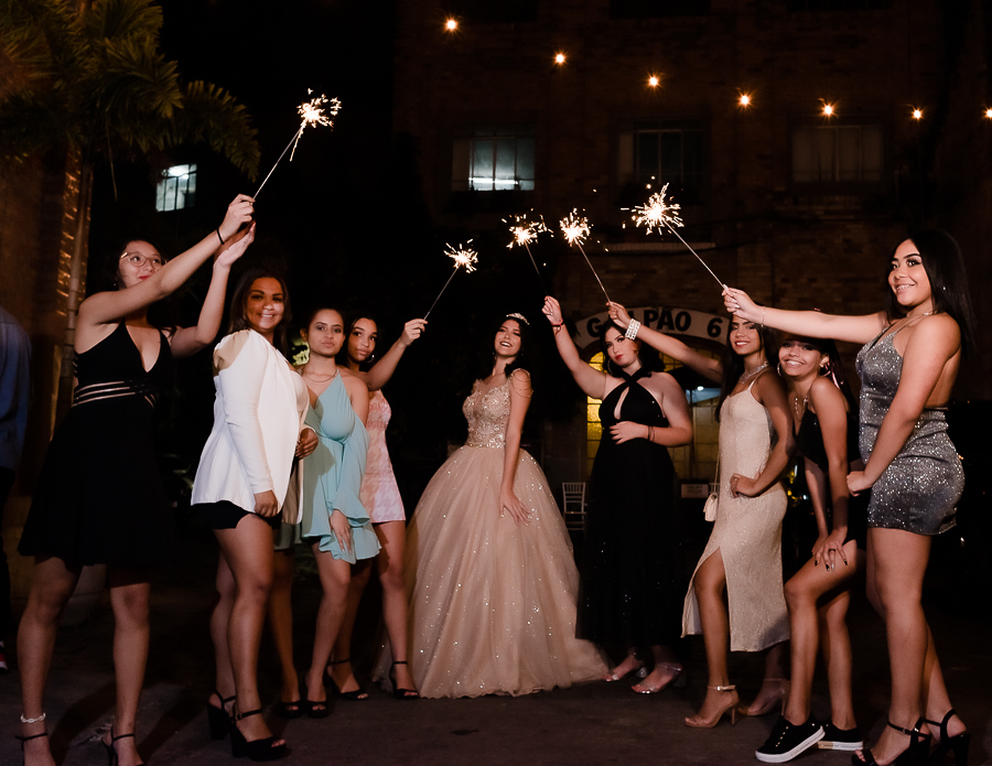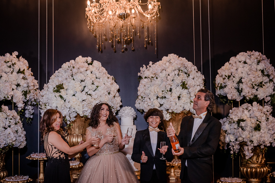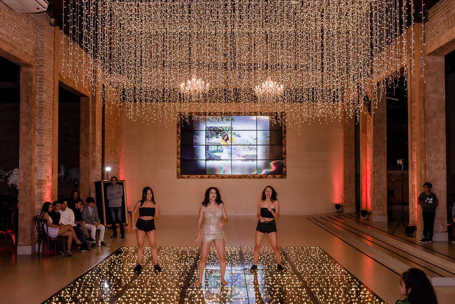 Mais uma sessão de fotos, brinde com o champanhe, cumprimentos aos convidados e...abertura da pista de dança com um SHOW da Malu e suas amigas!