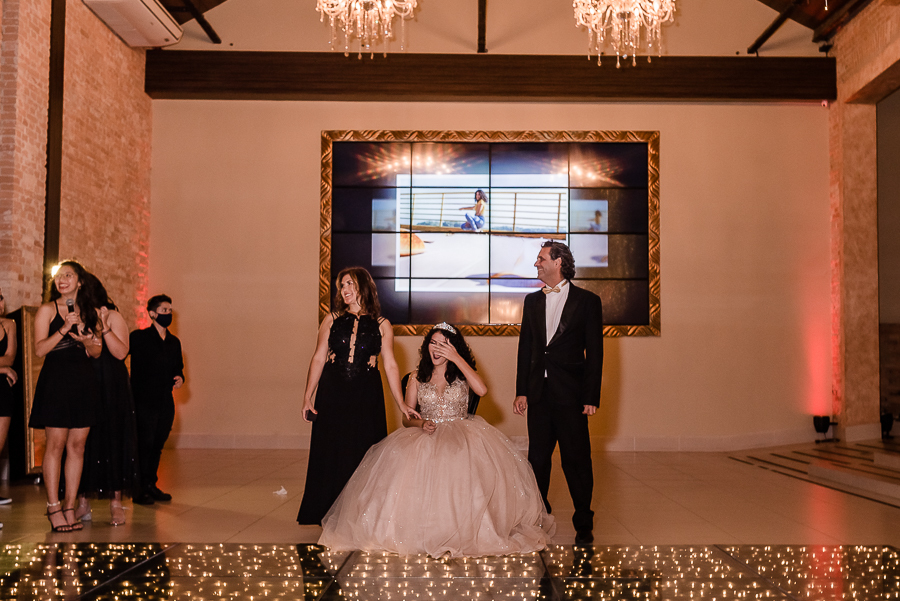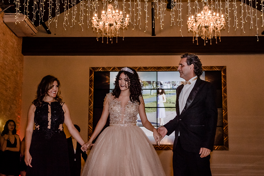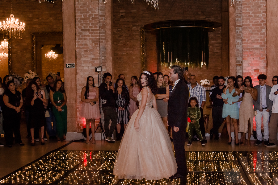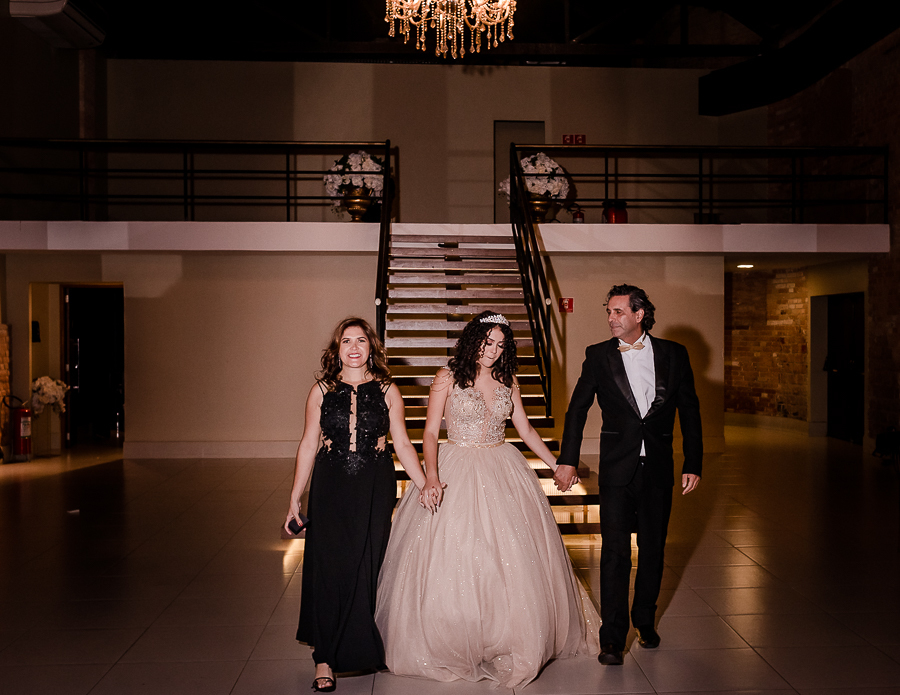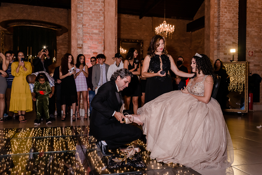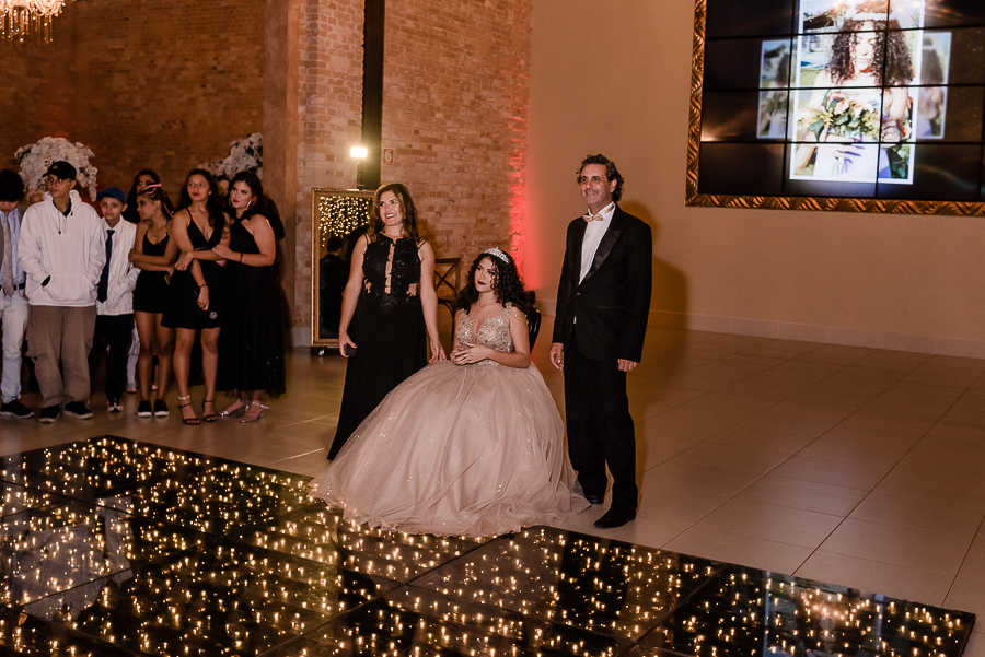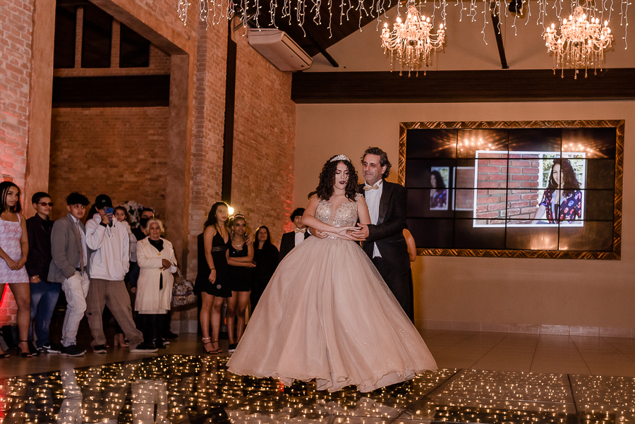 Os convidados foram chegando e logo, o momento tão esperado chegou! A entrada triunfal da Malu ao lado de seus pais em direção a pista onde teve a valsa, a troca do sapato e a entrega de um lindo anel a ela...tudo lindo e perfeito! Ela estava parecendo uma princesa e recebeu o carinho e a emoção de seus pais e seu irmão e de todos a sua volta que estavam encantados com esse momento tão lindo na vida da Malu!