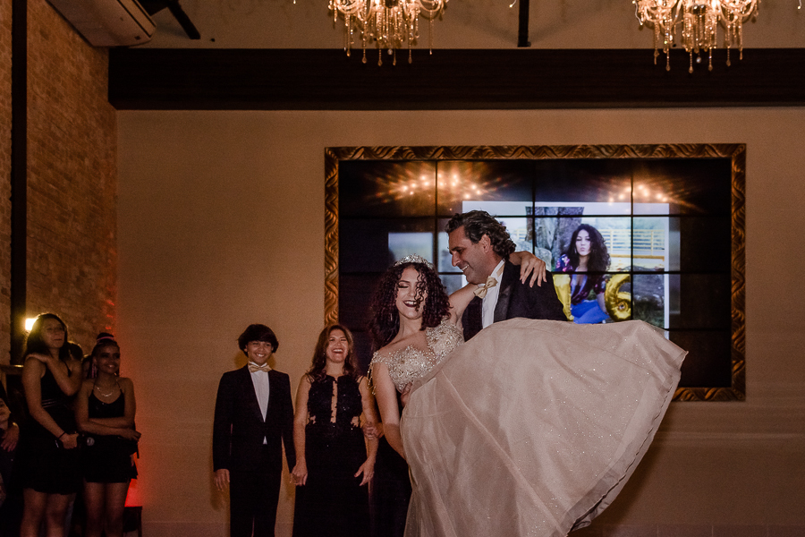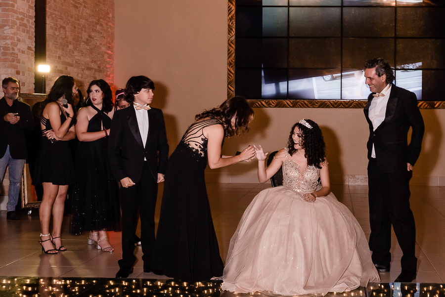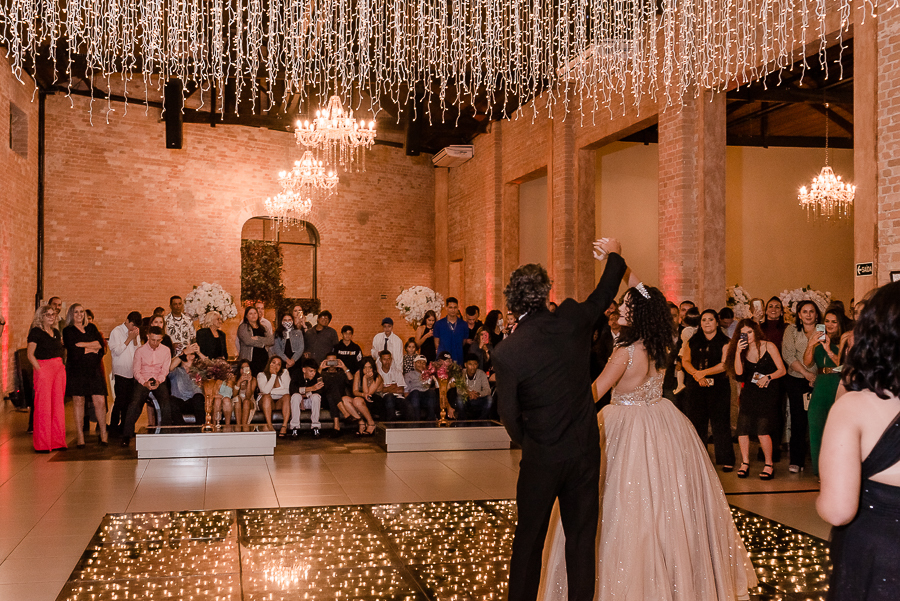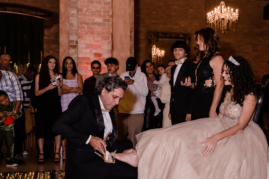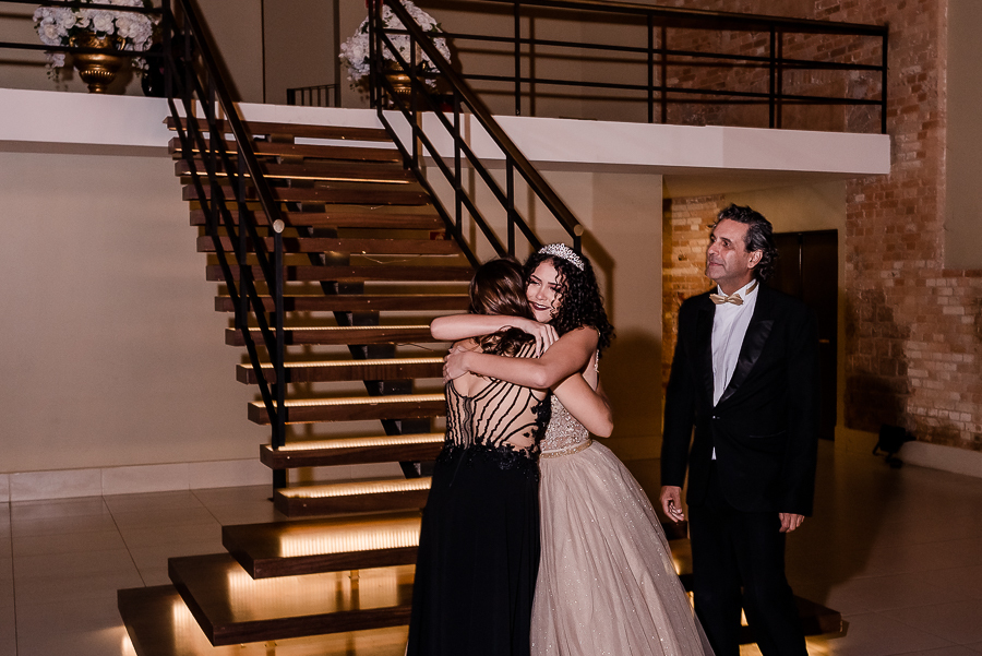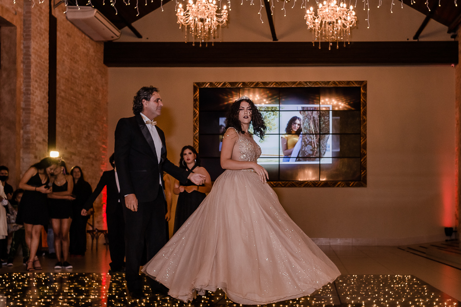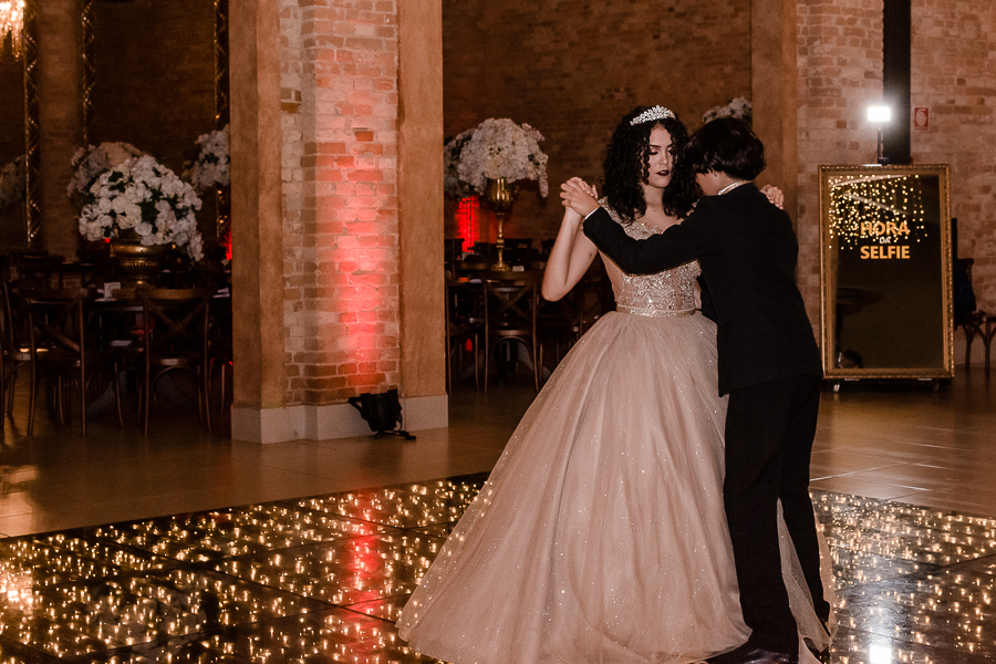 Os convidados foram chegando e logo, o momento tão esperado chegou! A entrada triunfal da Malu ao lado de seus pais em direção a pista onde teve a valsa, a troca do sapato e a entrega de um lindo anel a ela...tudo lindo e perfeito! Ela estava parecendo uma princesa e recebeu o carinho e a emoção de seus pais e seu irmão e de todos a sua volta que estavam encantados com esse momento tão lindo na vida da Malu!