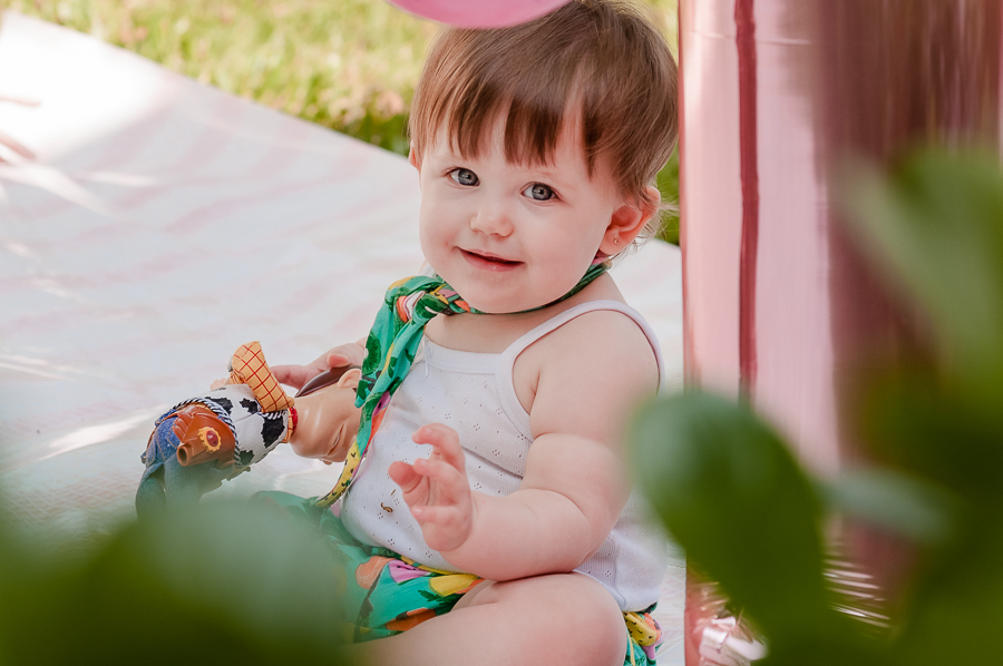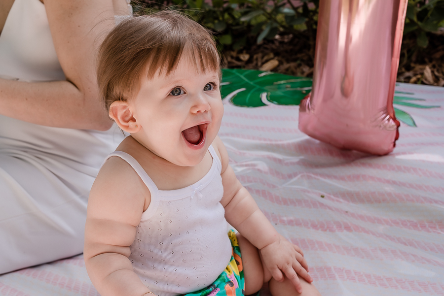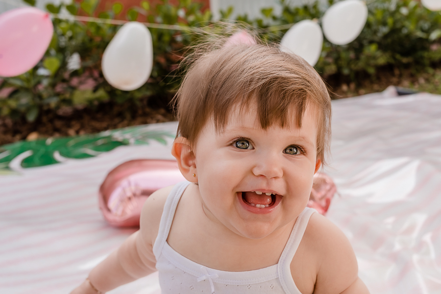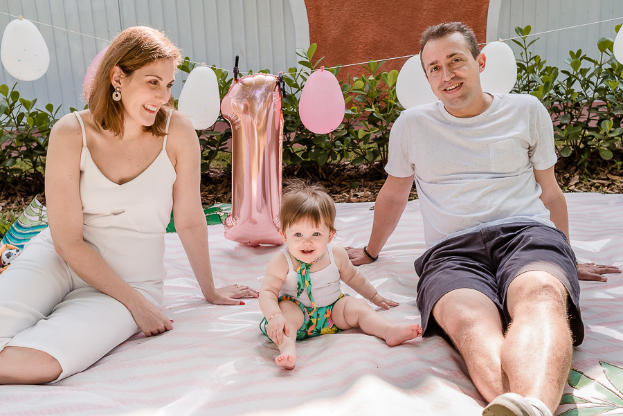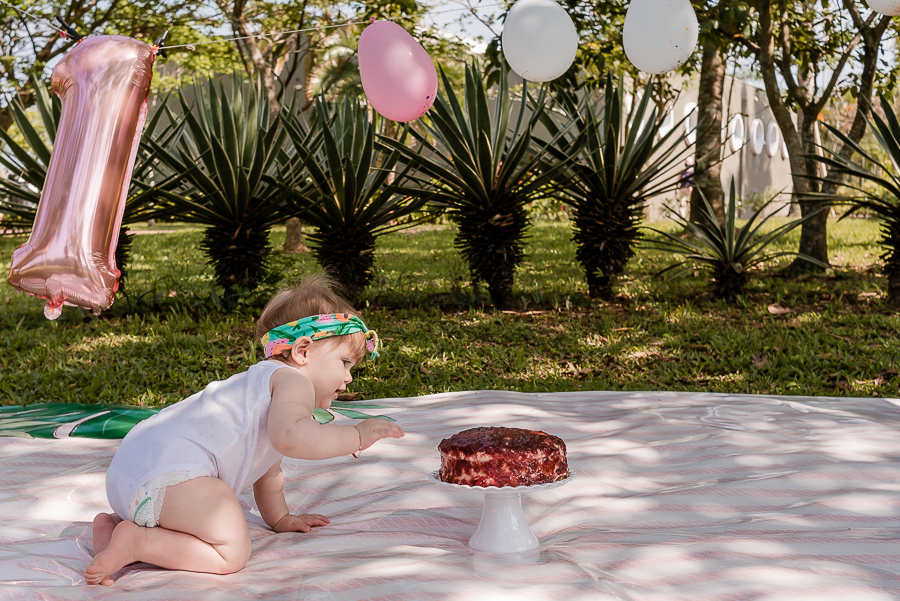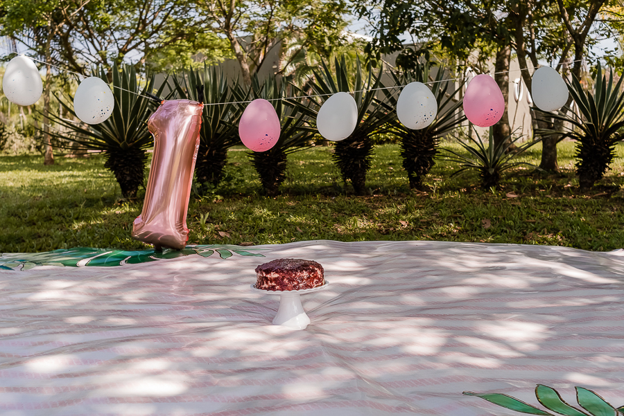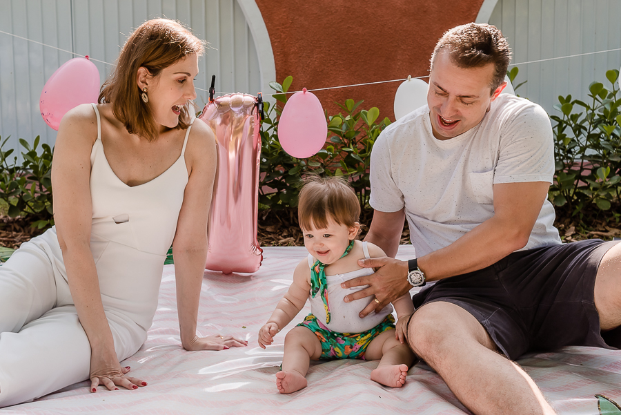 A Alice brincou com os balões, deu carinho na mamãe e no papai e aproveitou seu momento com um bolo inteirinho para ela. Foi uma farra só!