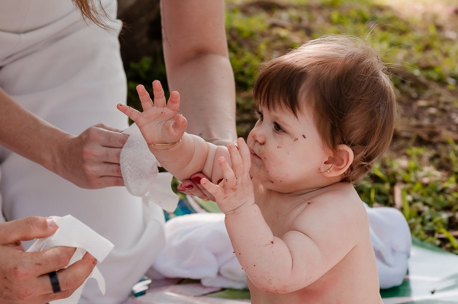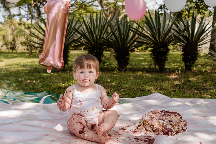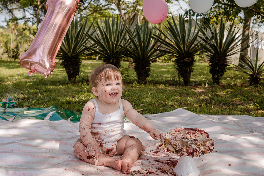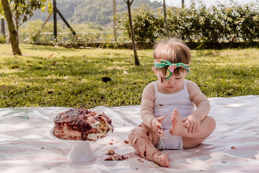 Em uma linda manhã de sol, realizamos o ensaio Smash the Cake da Alice, no Parque da Cidade, em Praia Grande - SP.