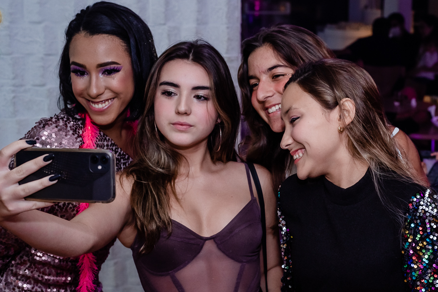 A Stella recebeu seus convidados com muita alegria e tirou muitas fotos divertidas na cabine de fotos.