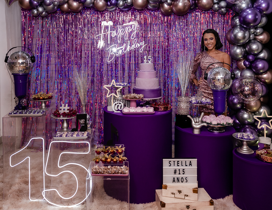 Ao lado de sua família e seus amigos ela brilhou, curtiu cada momento especial de sua festa de 15 anos, realizada no Buffet Hora da Festa, na cidade de Santos -SP.