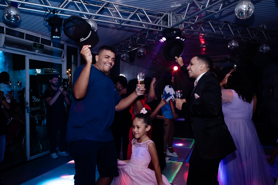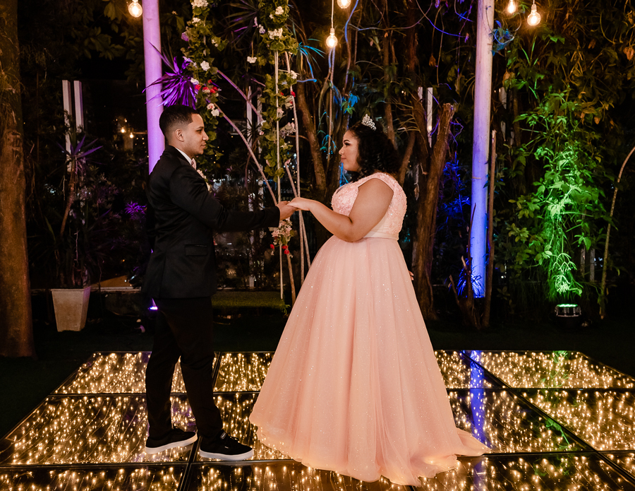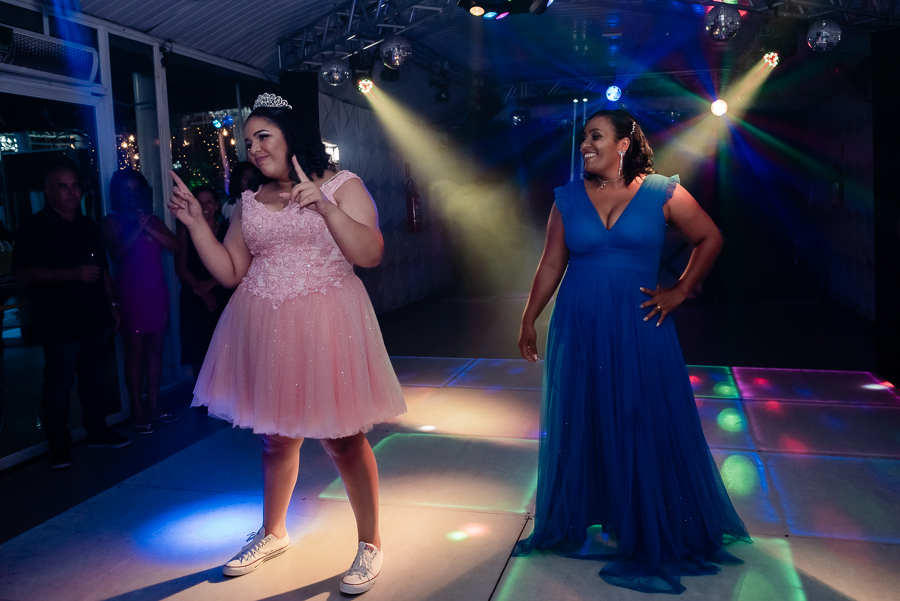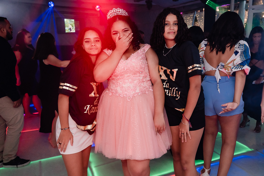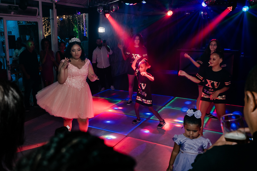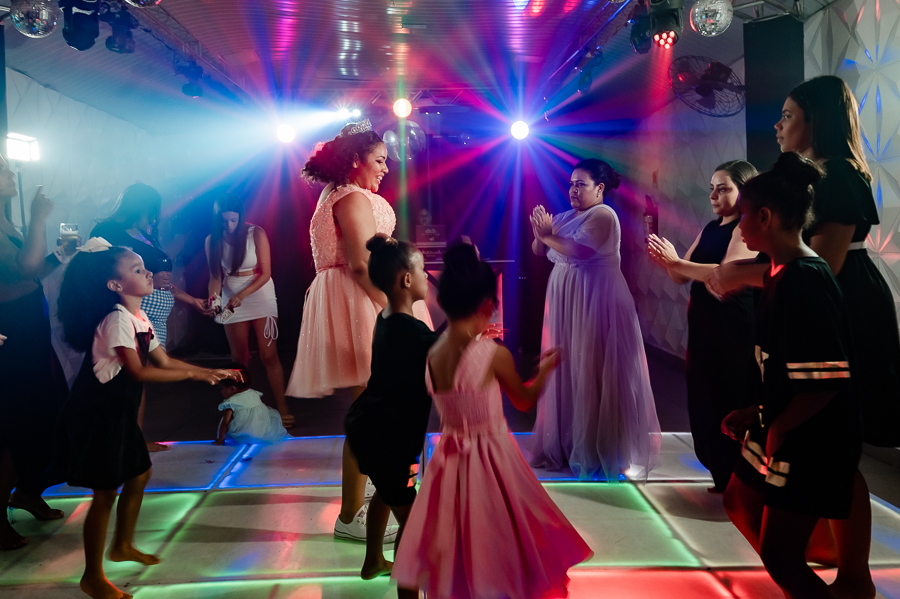 Após o jantar e as fotos com os convidados era hora de pista de dança! Kamilly, acompanhada de suas amigas e primas fizeram uma super coreografia para dar início. Depois dançou com sua mãe e liberaram a pista para todos curtirem muito juntos.