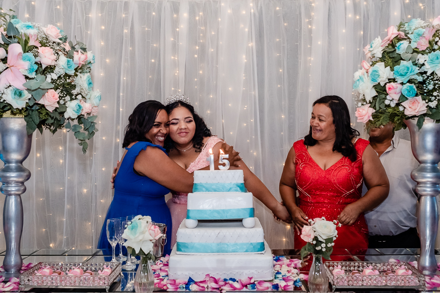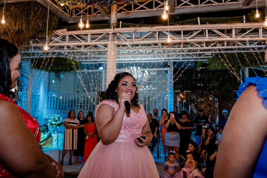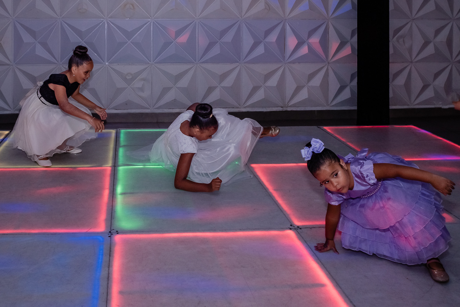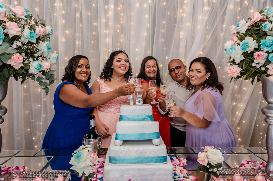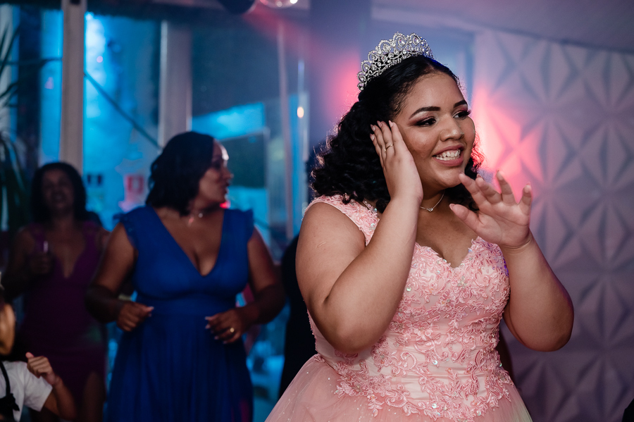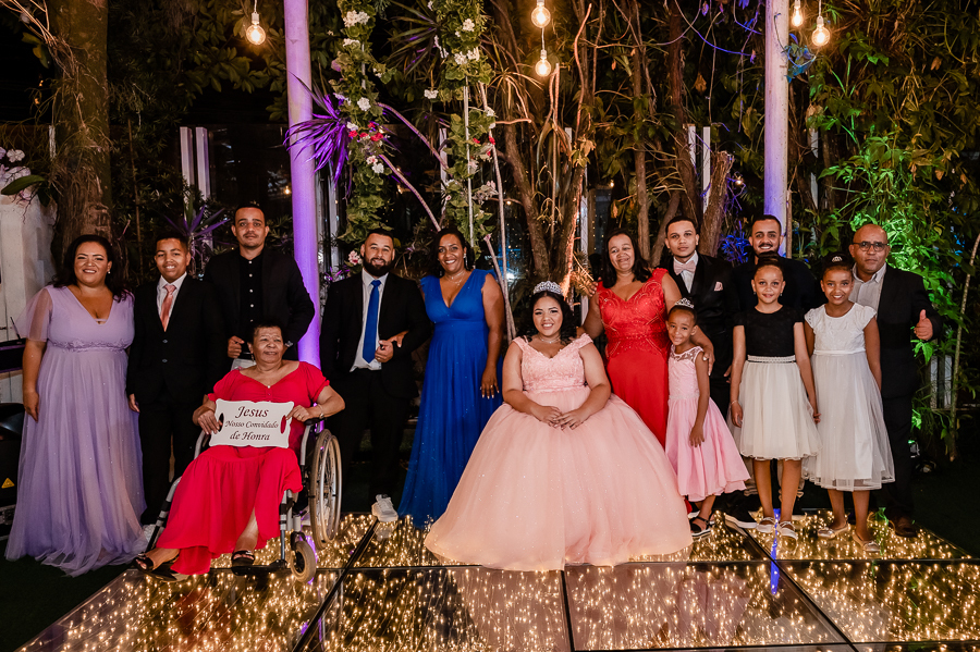 Após o jantar e as fotos com os convidados era hora de pista de dança! Kamilly, acompanhada de suas amigas e primas fizeram uma super coreografia para dar início. Depois dançou com sua mãe e liberaram a pista para todos curtirem muito juntos.