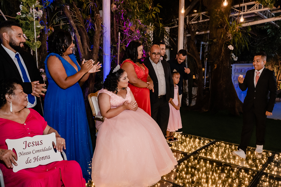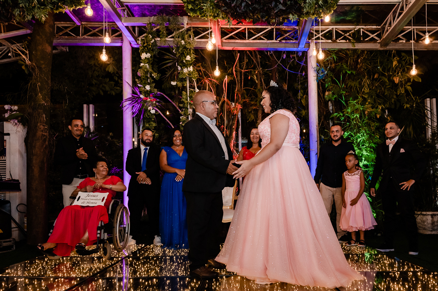 Todos se posicionaram para a entrada da Kamilly e a emoção foi tomando conta do espaço, com as homenagens e agradecimentos! Depois a tão esperada dança.