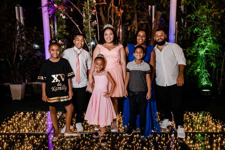 Kamilly completou seus quinze anos em uma linda noite de festa, na companhia de sua família e amigas.