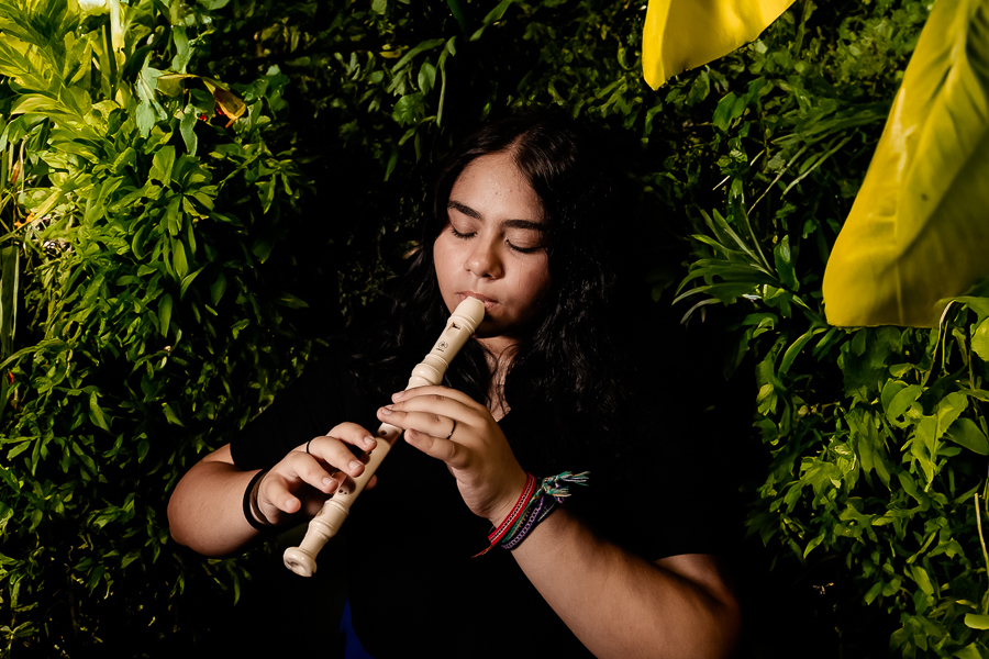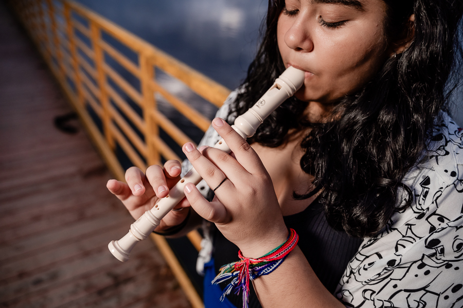 Foi tudo muito leve e descontraído. Conversamos bastante com a Fernanda para que ela ficasse a vontade e confiante. E conseguimos até que ela tocasse duas músicas na sua companheira, flauta doce.