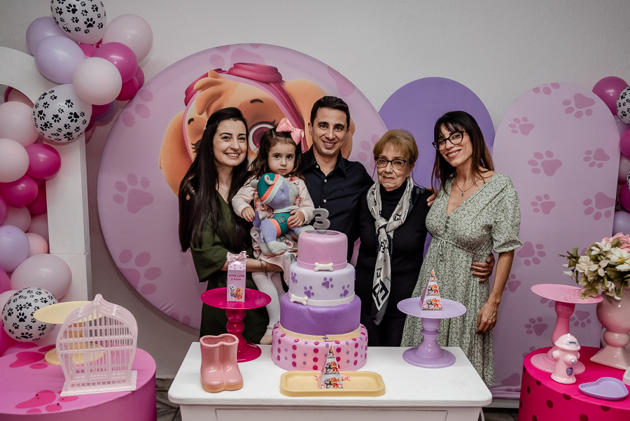 O tema do aniversário, realizado no Buffet Alakazan na cidade de São Paulo -SP, foi A Patrulha Canina. Na chegada ao buffet a Nalu estava admirada e ficou muito feliz de ver a mesa decorada com seus personagens favoritos!