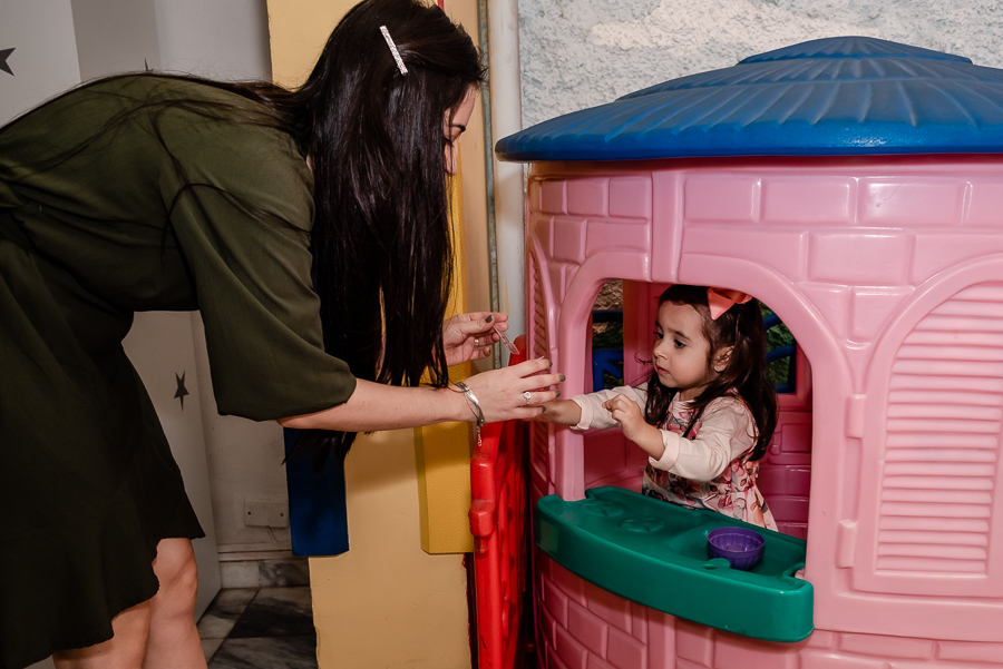 A Nalu é muito tímida, delicada, uma princesinha. Mesmo assim curtiu muito os priminhos, as vovós e os vovôs e as bizas. Mas o lugar que ela mais ficou foi na casinha, estava encantada com tudo!