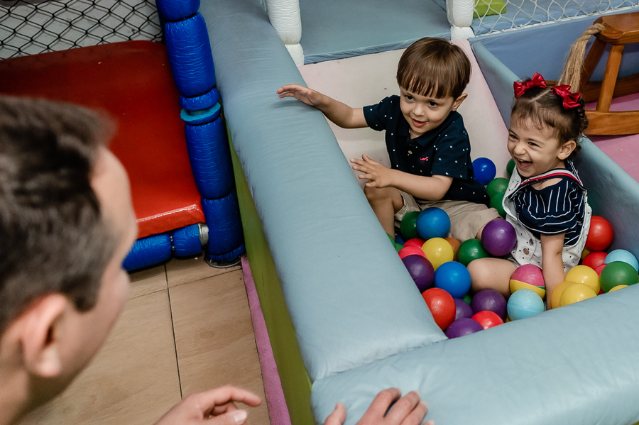 Gabriel também brincou muito com seus primos e amiguinhos. Recebeu ainda o carinho dos avós, tios e tias e amigos especiais do papai e da mamãe.