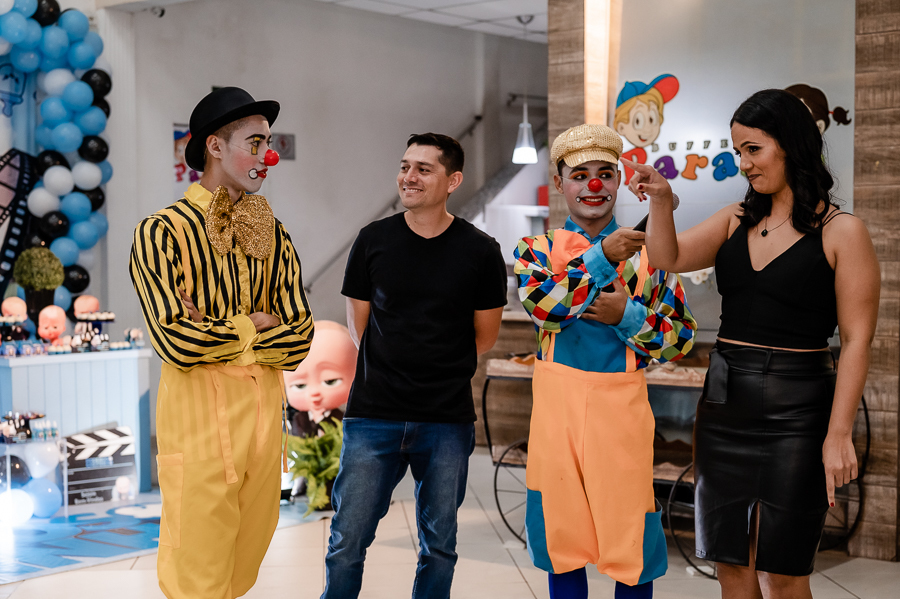 As crianças participaram de brincadeiras com os palhaços "Pedrinho e Muxkito" que trouxeram ainda mais alegria para o aniversário. E depois os adultos também participaram das brincadeiras e se divertiram muito.