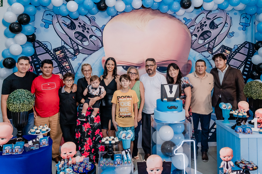A hora mais esperada da festa, "O PARABÉNS" para o pequeno Mateus, foi muito animado! E depois, todos os convidados participaram das fotos com o aniversariante.