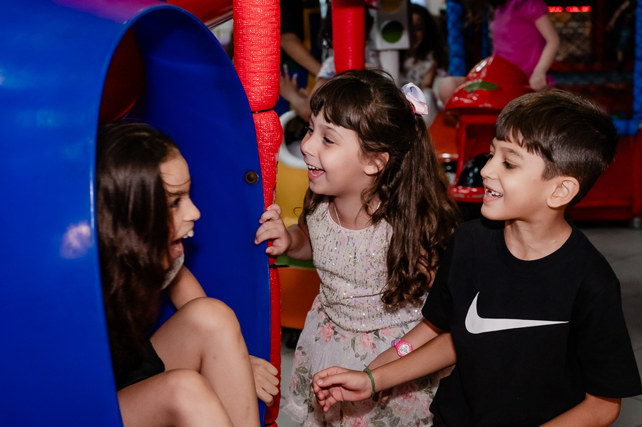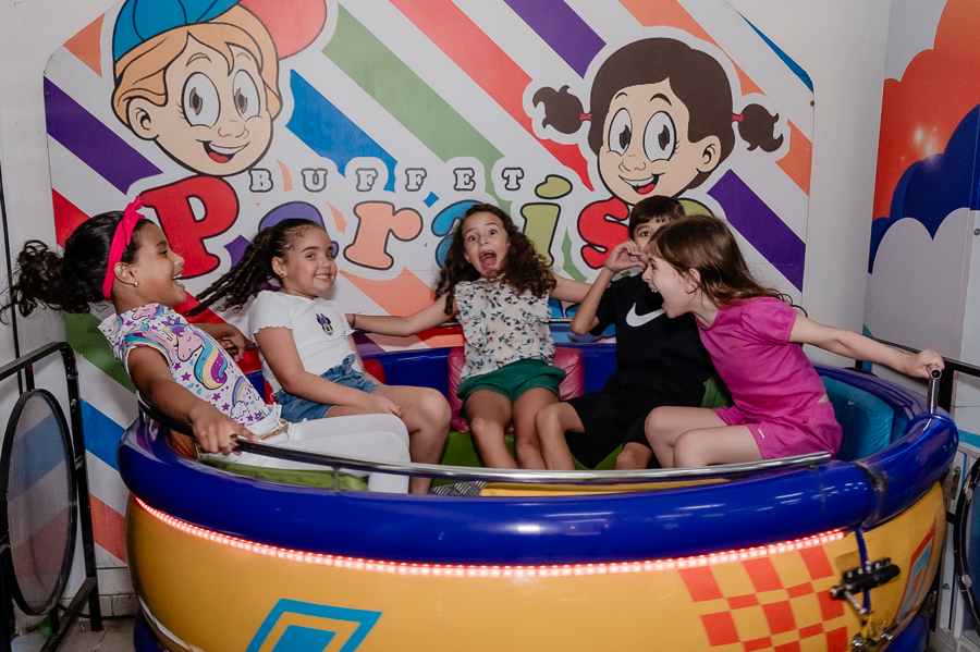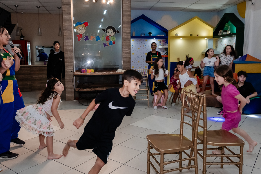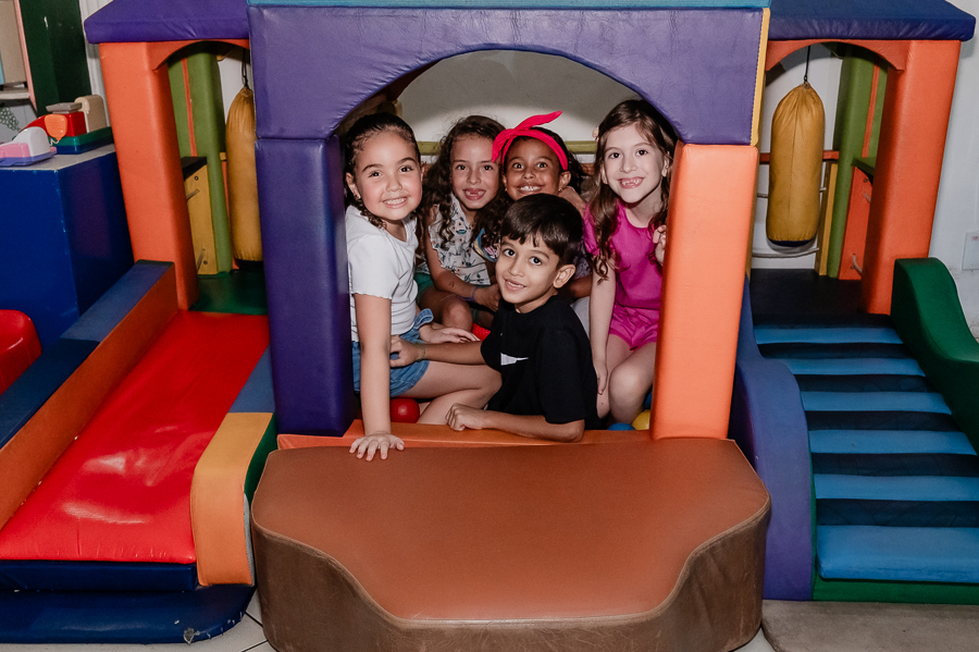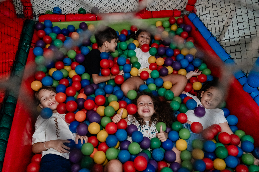 Foi um aniversário exclusivo para a criançada, já que de adultos havia apenas os pais da Bebel (Raquel e Paulo) e os avós maternos.