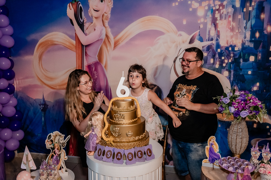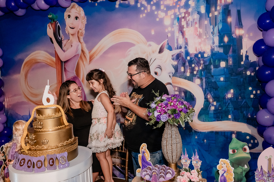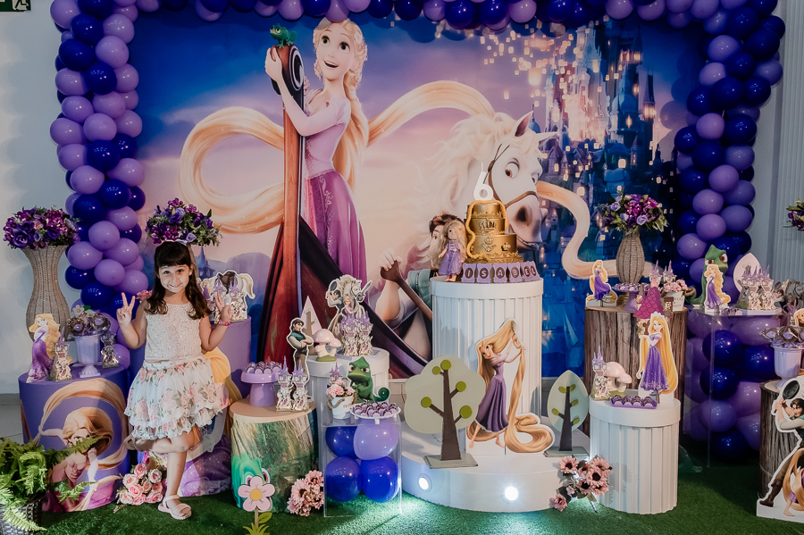 Conheci a Raquel e sua família durante o casamento da Natalia e do Renan e tivemos a oportunidade de registrar o aniversário da Isabel "Bebel" de 6 anos com temática do filme Enrolados que foi realizado durante uma tarde no Buffet Paraiso Kids localizado na cidade de Praia Grande-SP.
