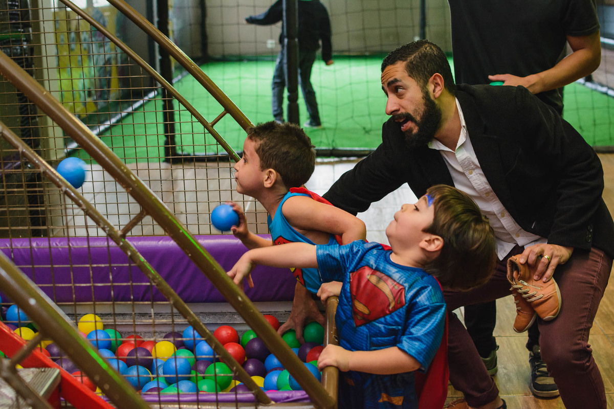 O Miguel completando 7 anos e o Bernardo 3 anos. Uma festa cheia de amor, alegria, família e amigos. E que energia! Além dos aniversariantes aproveitarem os brinquedos e brincadeiras ainda achavam tempo de receber os convidados com muitos abraços!