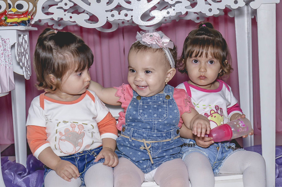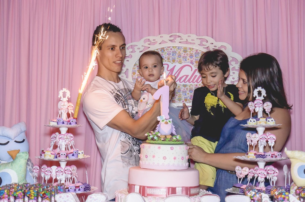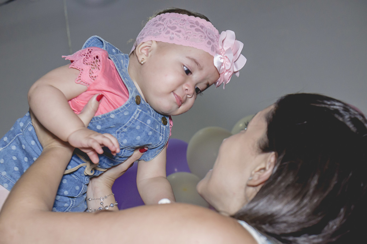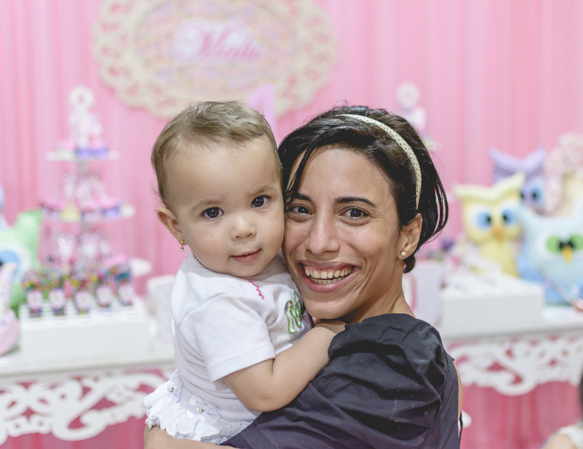 No dia da festa, tudo estava lindo, com a decoração de corujinhas que a tia Carol fez com tanto amor. Ela já está dando os primeiros passos, brincando na piscina de bolinhas, sorrindo para todos, e um grude do vovô.