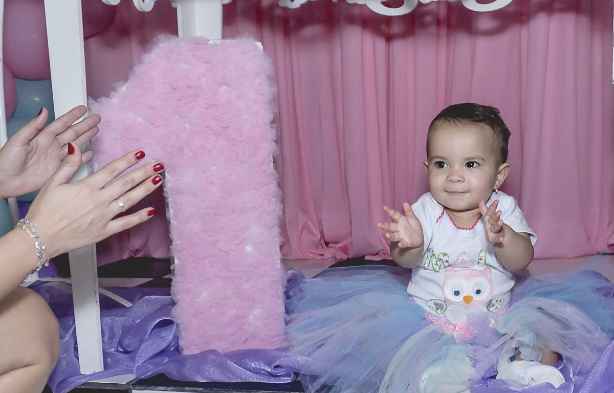 Até que eu fui falar com ela e disse: vem com a Vanessa, acreditando que ela não viria. E qual foi a minha surpresa! Ela veio no meu colo, me fez carinho e tudo, pareceu que estava agradecendo o amor que demos a ela todo esse tempo. Porque não existe um bom resultado sem amor. E essa família é um exemplo de amor, harmonia, alegria, pessoas maravilhosas que nos receberam sempre com carinho e confiança em nosso trabalho! Você consegue perceber a energia das pessoas a sua volta, os convidados, a família, todos permitindo que fizéssemos parte desse dia tão esperado! O parabéns animadíssimo com todos mostrando à Malu o quanto a amam! E ela com aquele sorriso fofo, batendo palminhas!