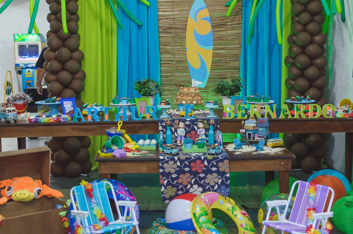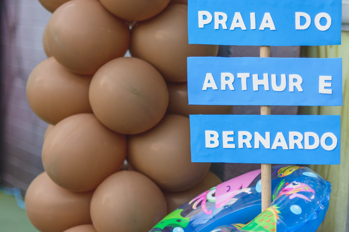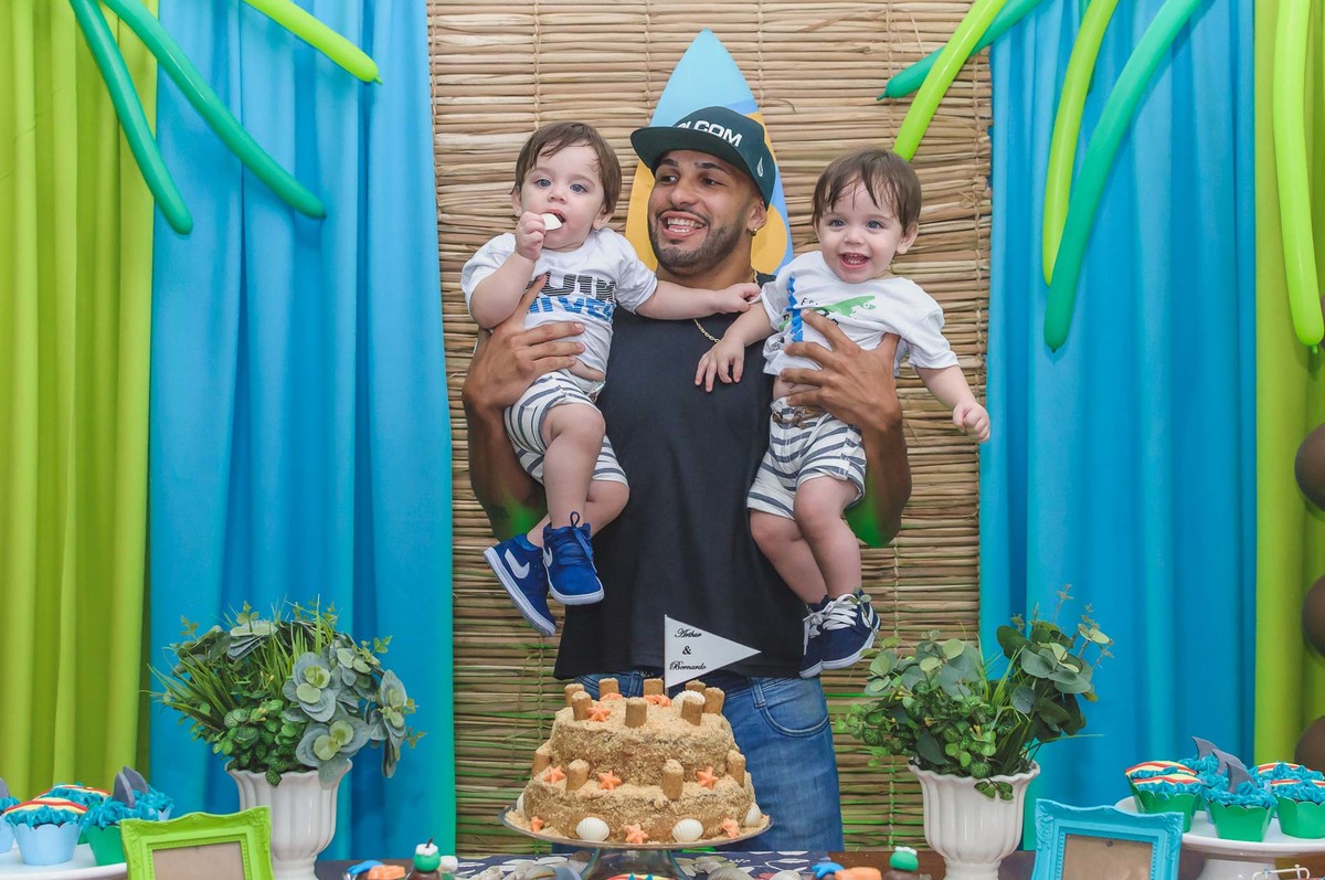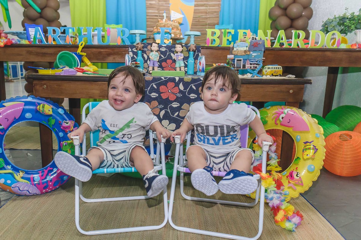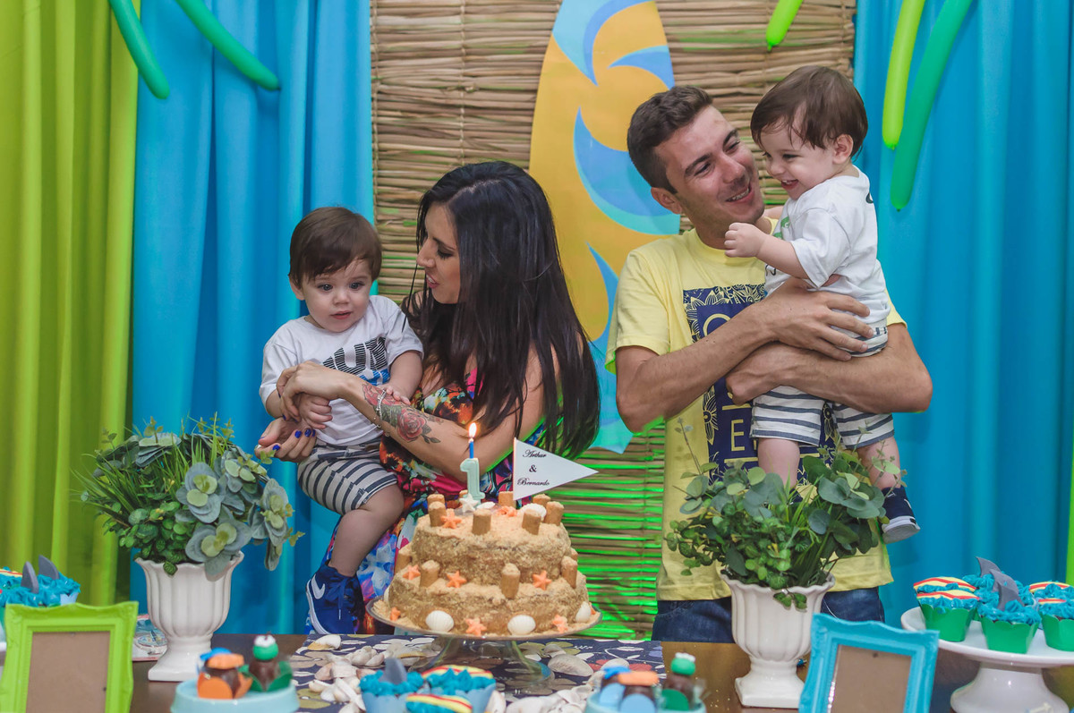 Uma linda festa com o tema no maior estilo “Praia”, os pitocos curtiram muito a festa nos brinquedos e receberam os carinhos dos familiares e convidados, que deram toda atenção e muito colo aos dois, além de diversos amiguinhos que compareceram na festa e se divertirem a beça.