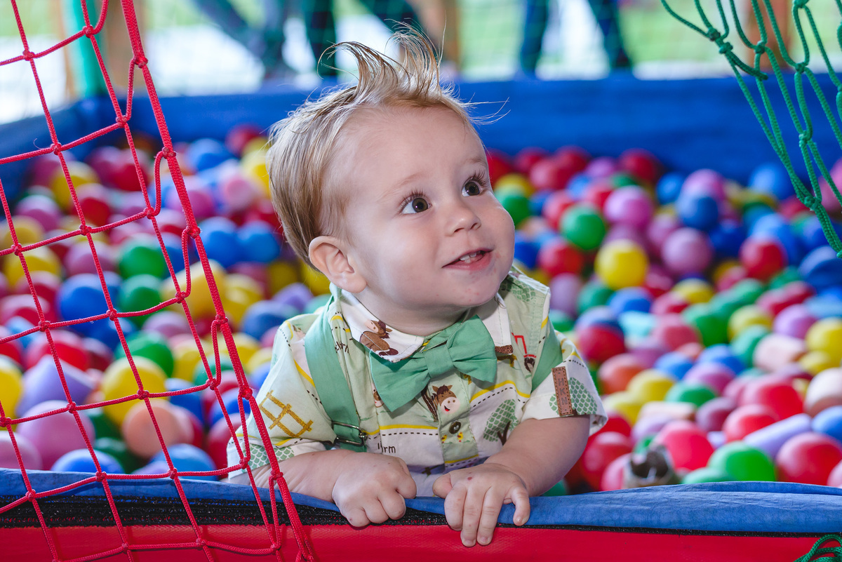 O Murilo é muito lindo e fofo! Chegou e logo tomou conta de sua festa. Foi brincar na piscina de bolinhas, com seus amiguinhos, a mamãe e o papai. Sorriu o tempo todo! Teve tempo até de uma soneca antes do parabéns.