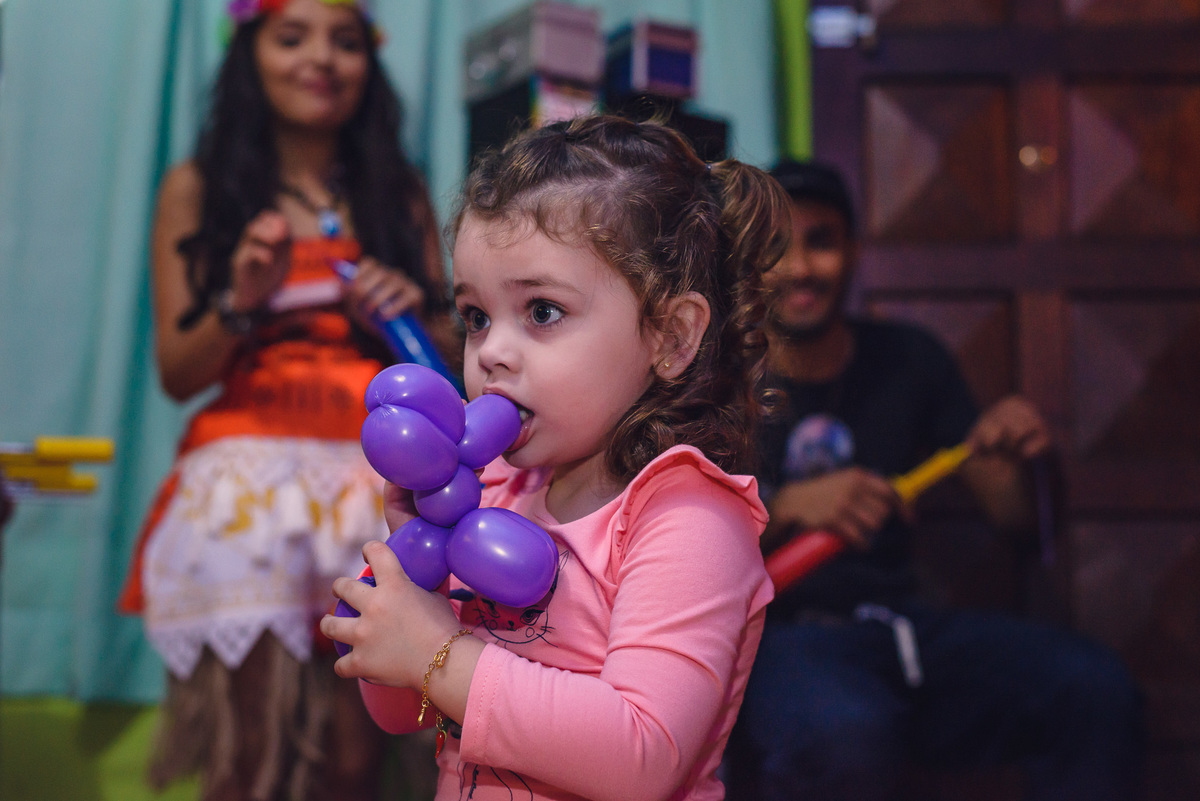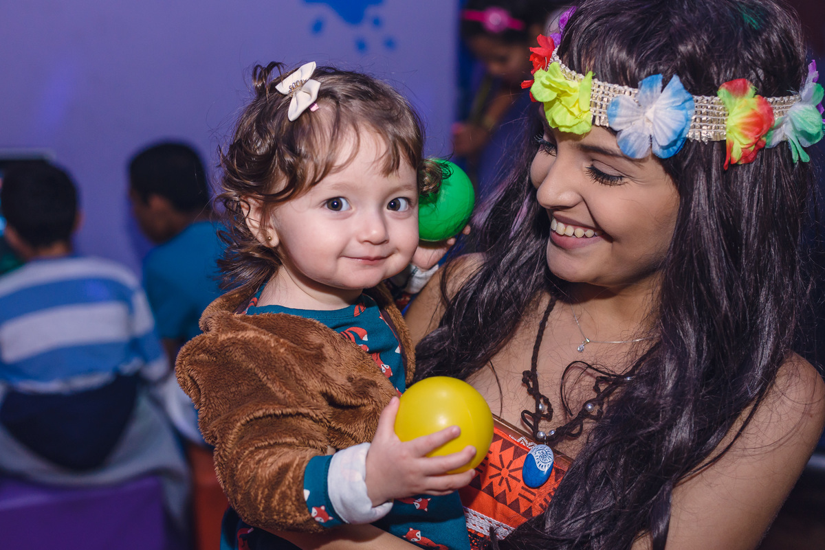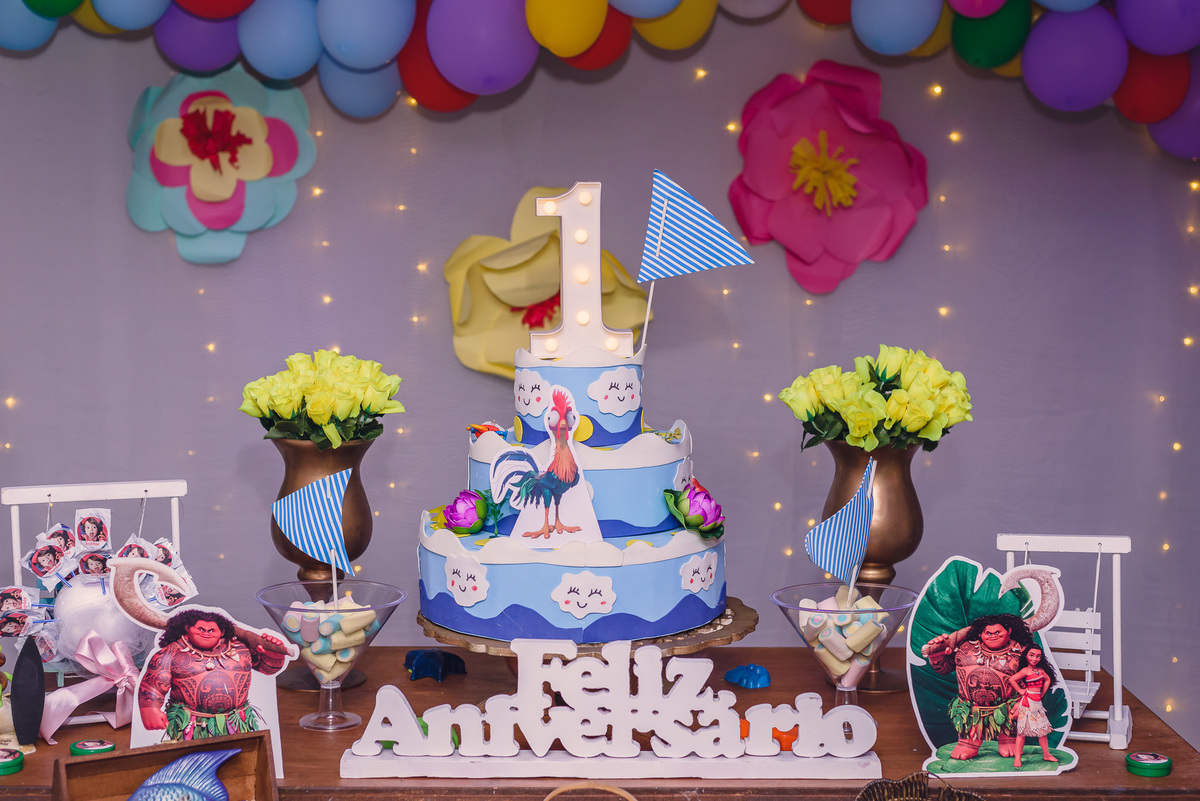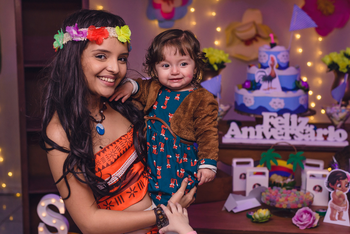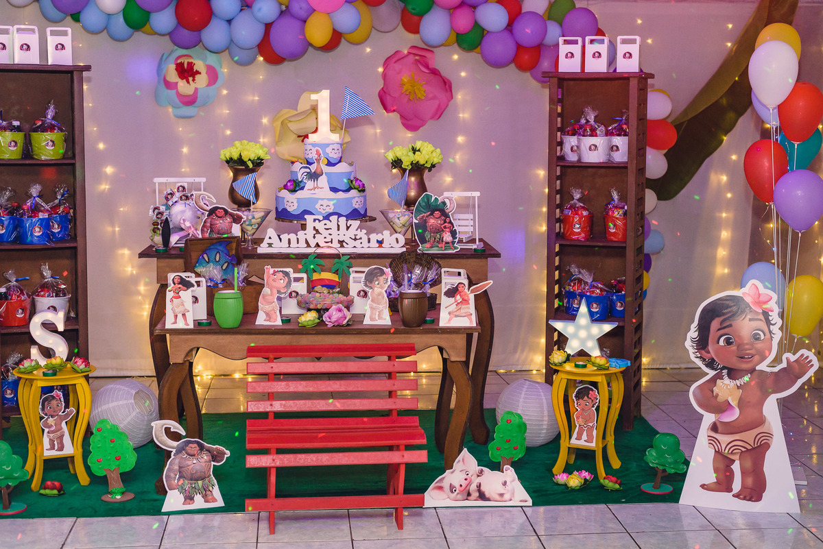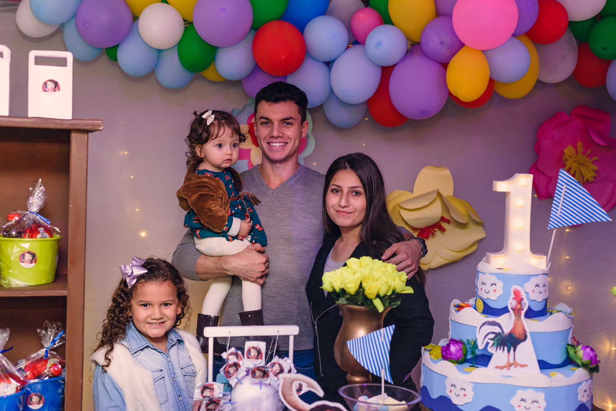 Sempre sorridente se divertiu com os irmãos Alexandre e Júlia e seus padrinhos, parentes e amigos. Outro momento especial para Sophia foi quando apareceu o seu personagem preferido, a Moana, que após sua chegada ficou sempre ao seu lado até a hora do parabéns.