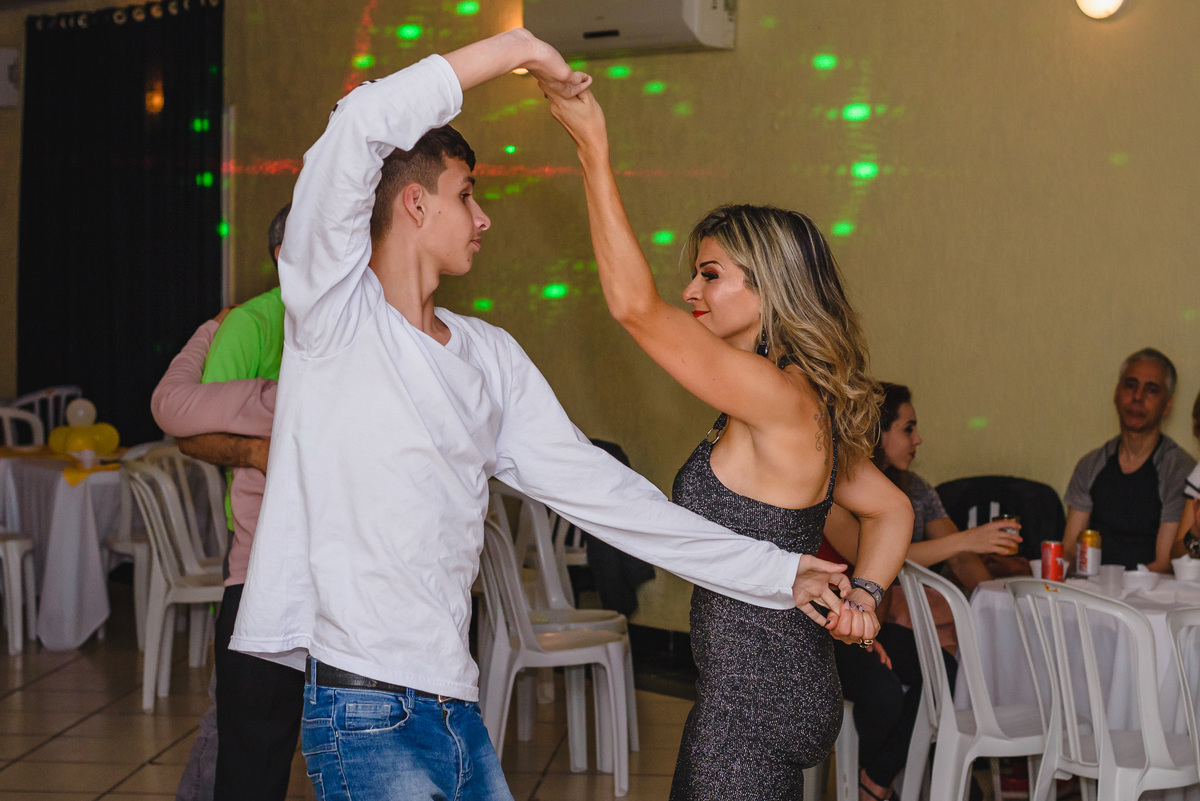 Com direito a muita festa e diversão entre seus familiares e amigas acompanhadas pelos professores de dança ninguém ficou parado e todos mostraram muita ginga e passos sincronizados.
