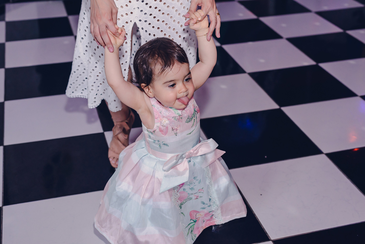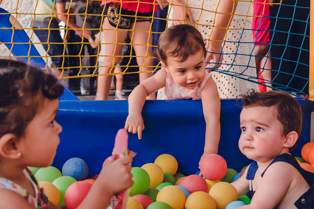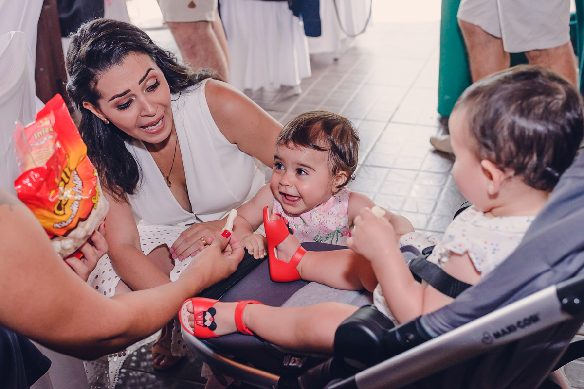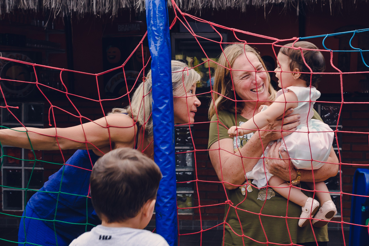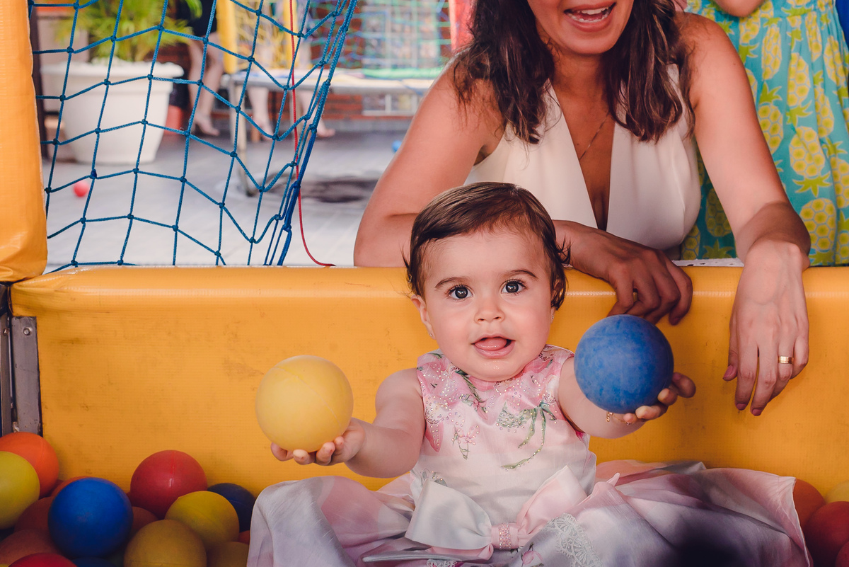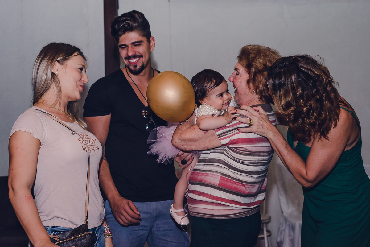 Ela não parou um minuto, fez a mamãe andar muito pela festa. As vovós aproveitaram junto com a Malu, sorriram, se emocionaram. Ela recebeu também o carinho dos titios e titias que deram muito colo e atenção, abraçou os primos e amiguinhos...estava todo animada!