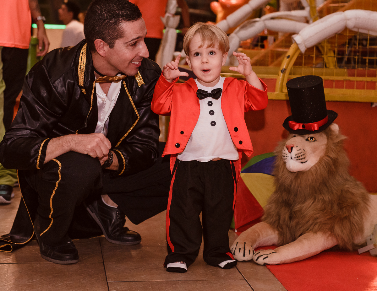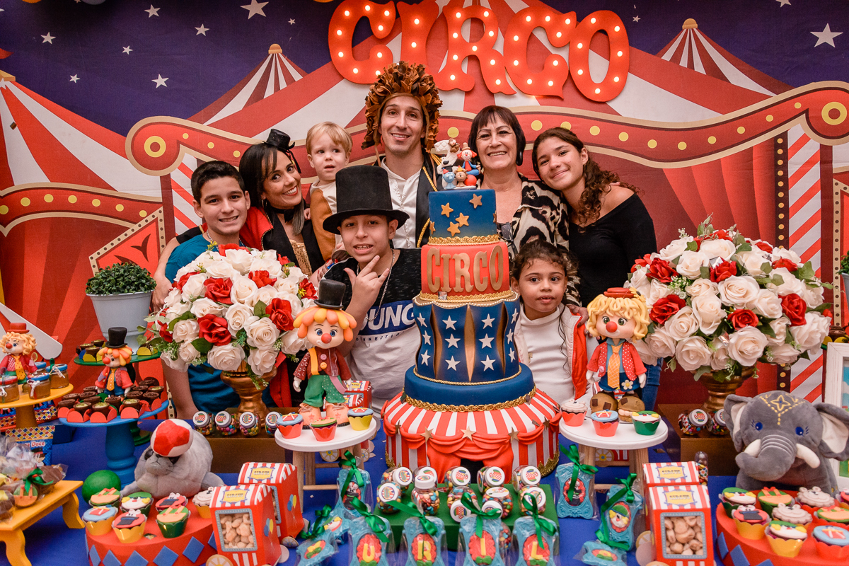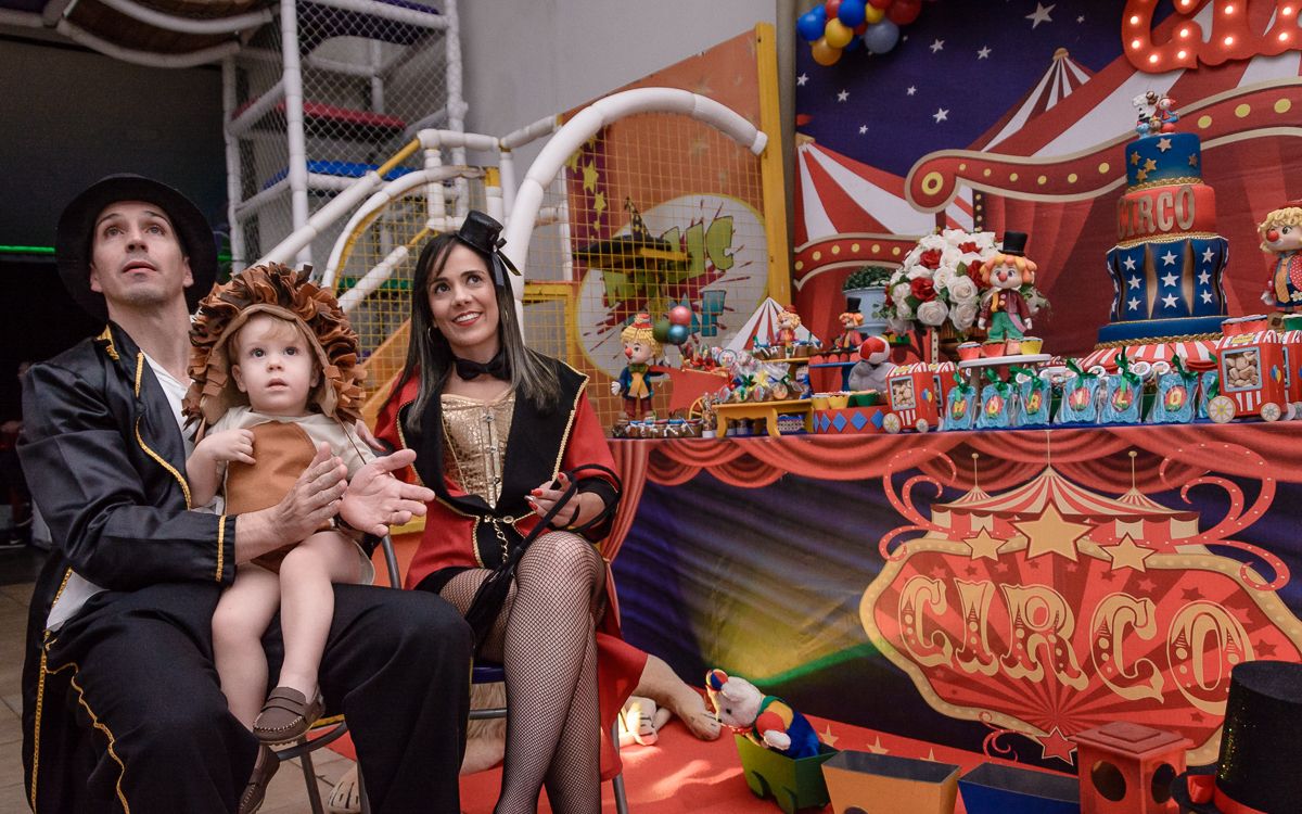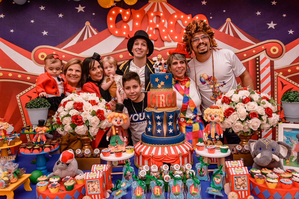 O aniversário do Murilo, foi realizado no buffet Magic Time na cidade de Praia Grande - SP e estava lindo! Cheio de detalhes e a família entrou mesmo no tema, foram caracterizados como os personagens do circo, tema da festa.