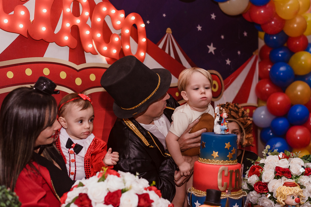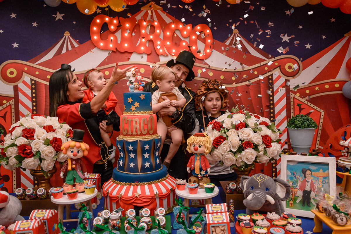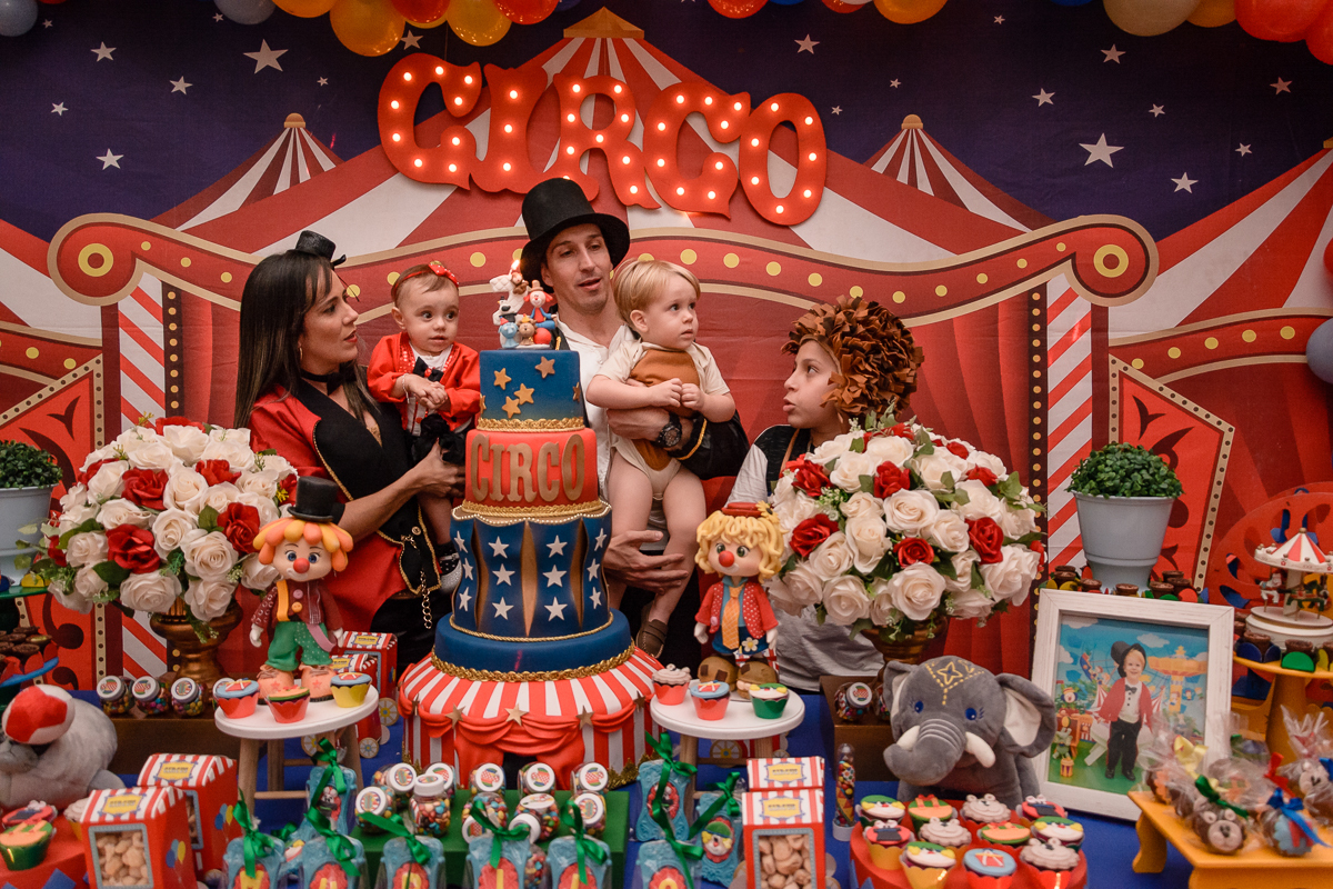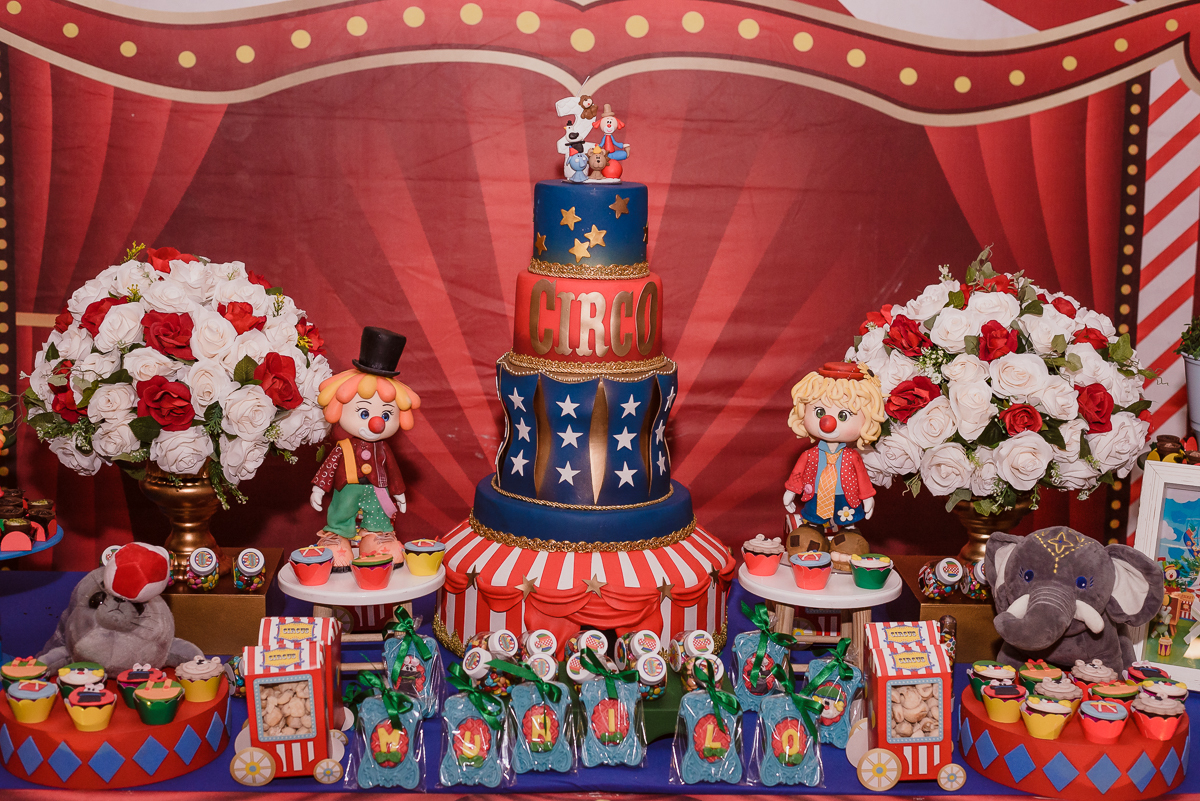 O aniversário do Murilo, foi realizado no buffet Magic Time na cidade de Praia Grande - SP e estava lindo! Cheio de detalhes e a família entrou mesmo no tema, foram caracterizados como os personagens do circo, tema da festa.