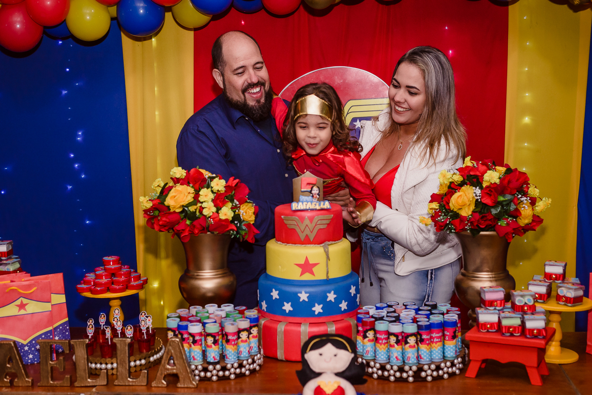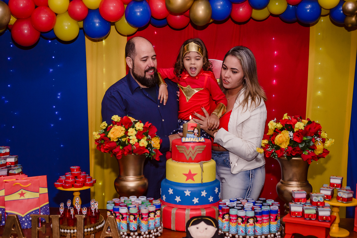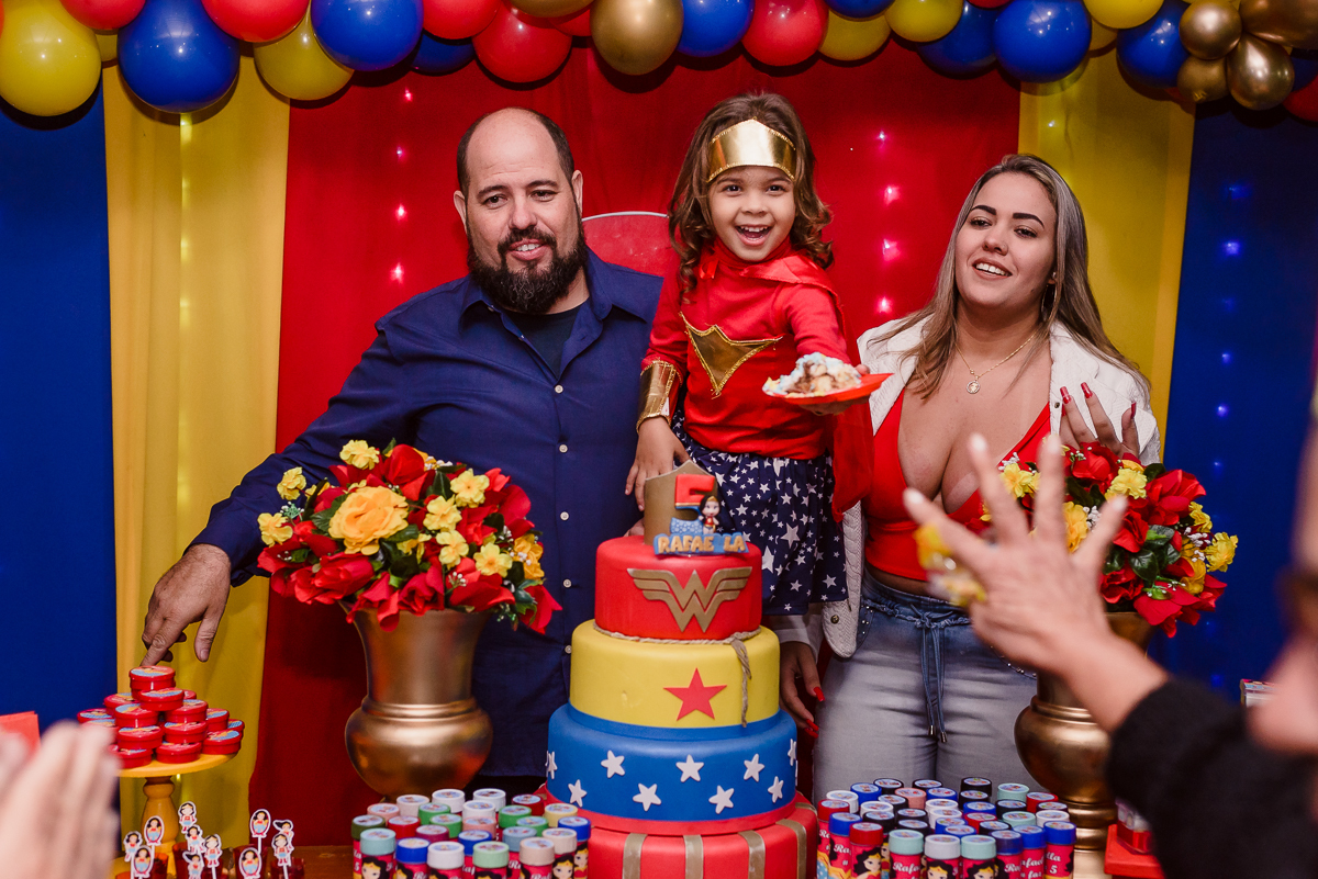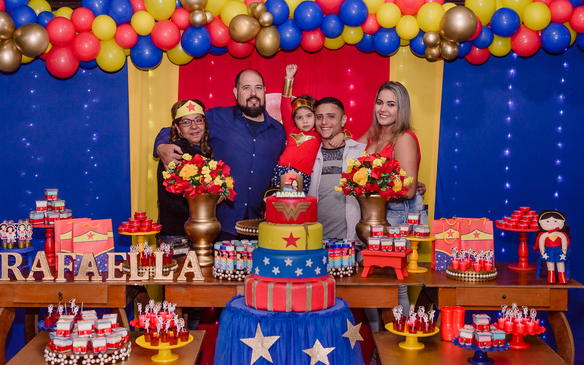 Com o tema Mulher Maravilha, o aniversário da Rafaella, realizado em Mongaguá - SP, foi repleto de alegria, crianças brincando e muito amor da família e amigos!