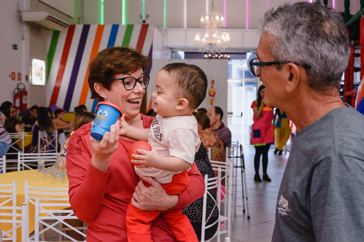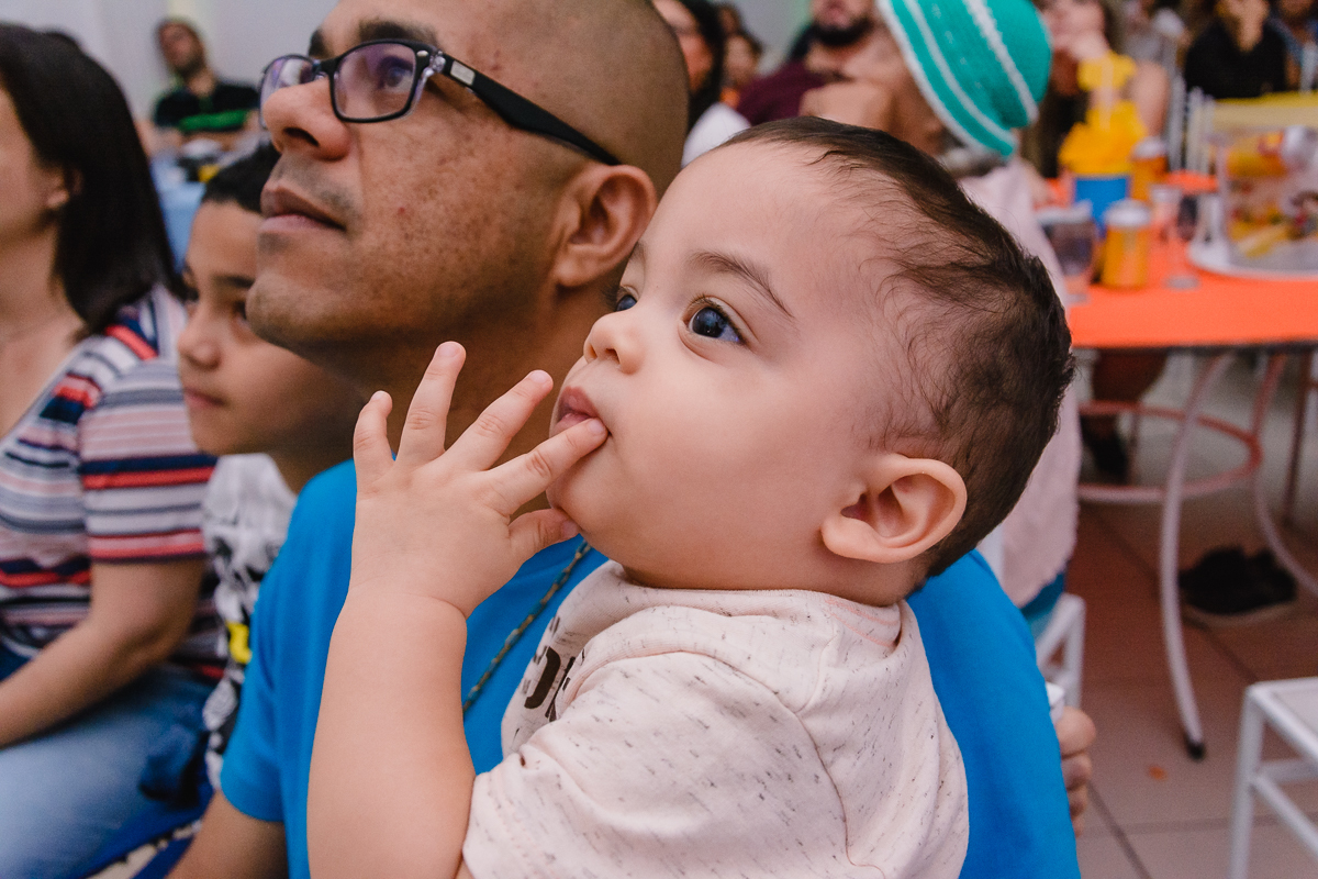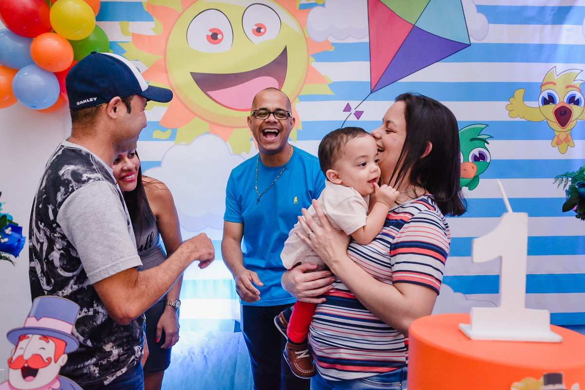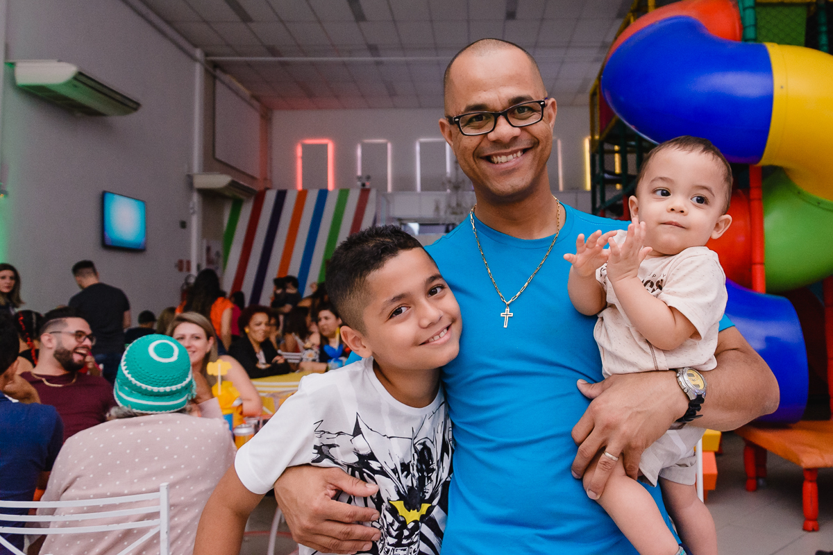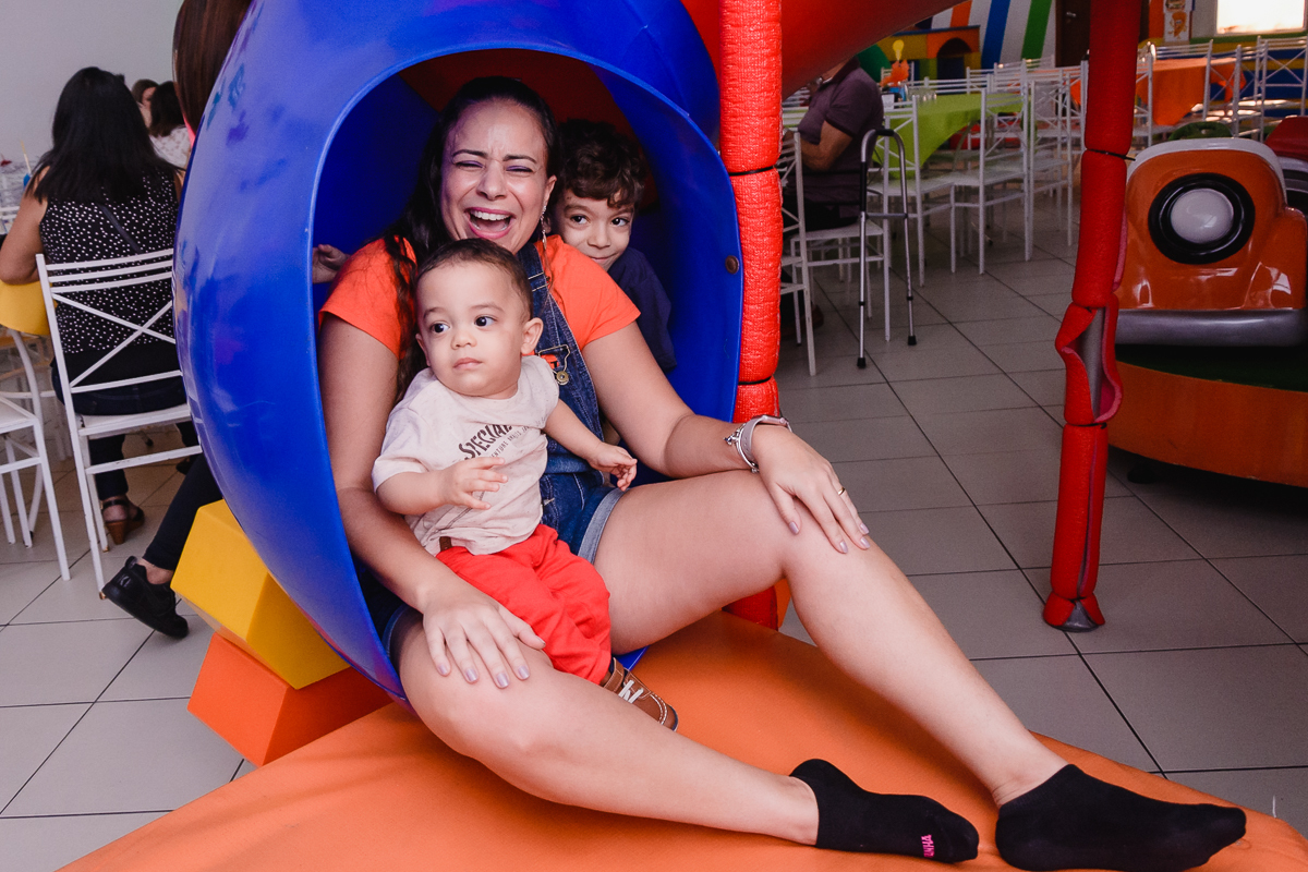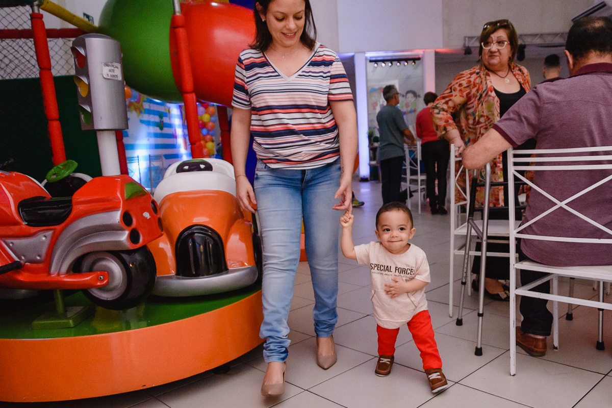 Pensa em um pequeno que brincou a festa toda, não parou um minuto! E só queria andar dando a mãozinha pra mamãe, pro papai e avós. Abraçou e sorriu pro seu irmão mais velho.Também escalou brinquedos com as titias aventureiras e adorou! Depois conheceu a mesa linda do Mundo Bita e brincou com um dado de madeira grande e colorido e se divertiu!