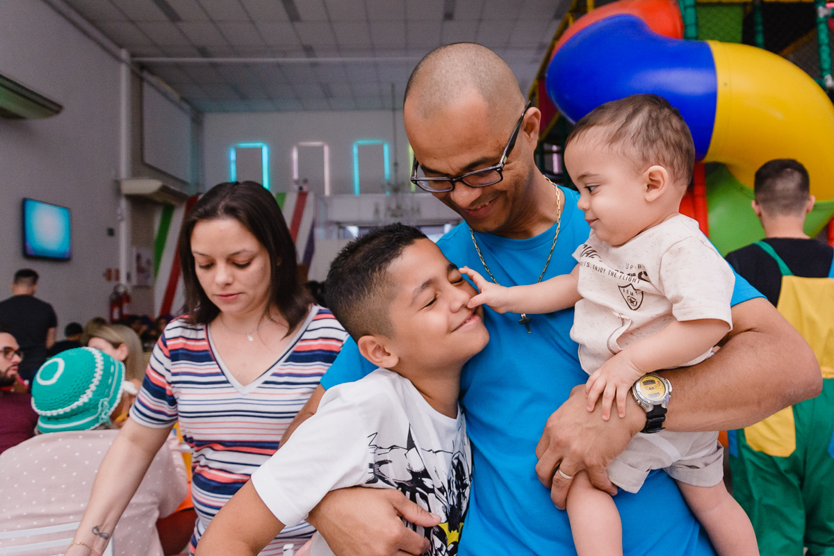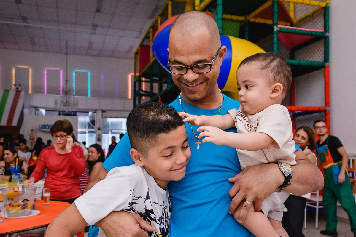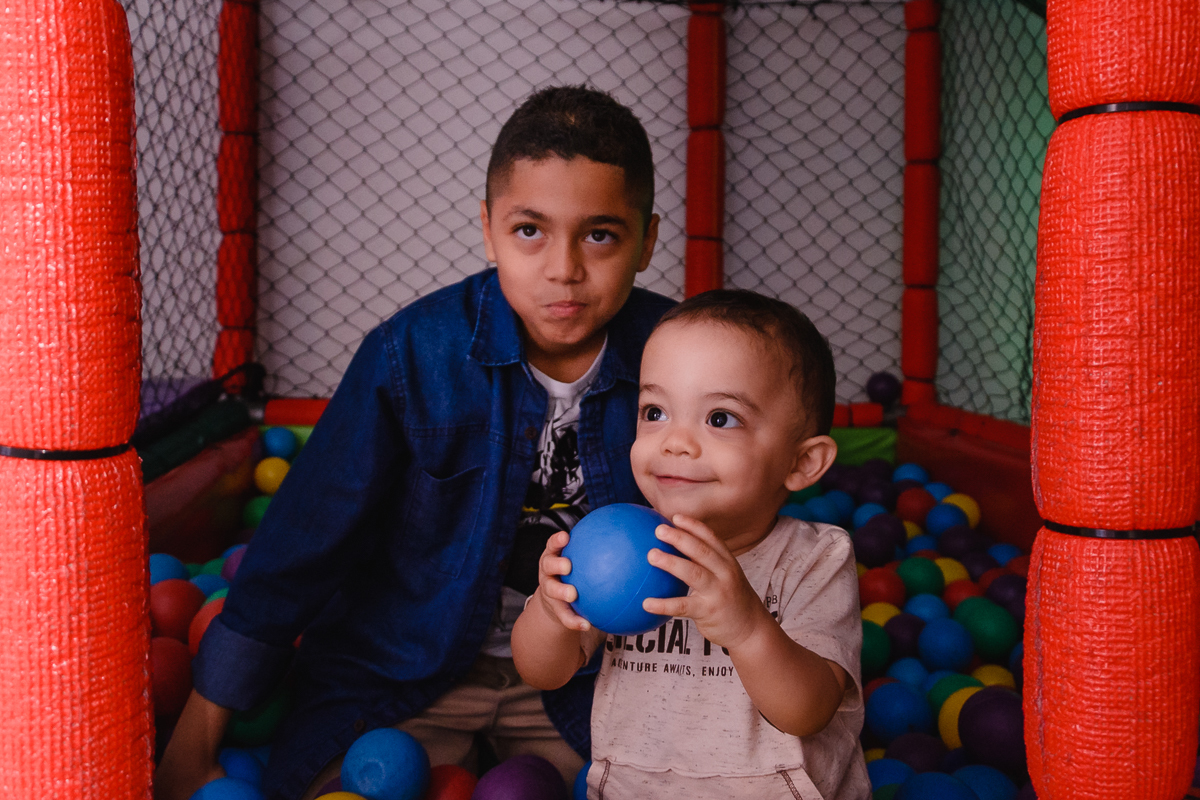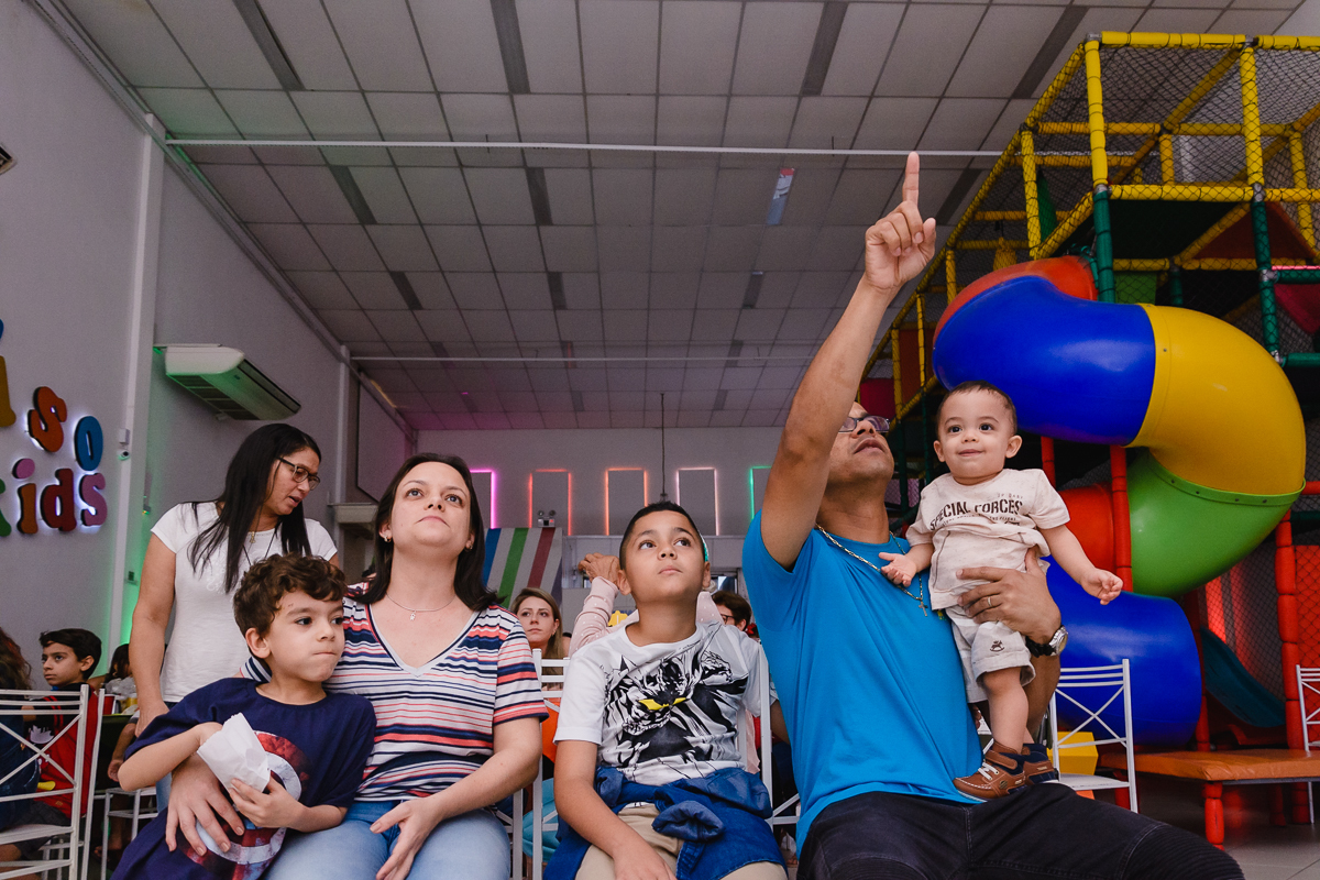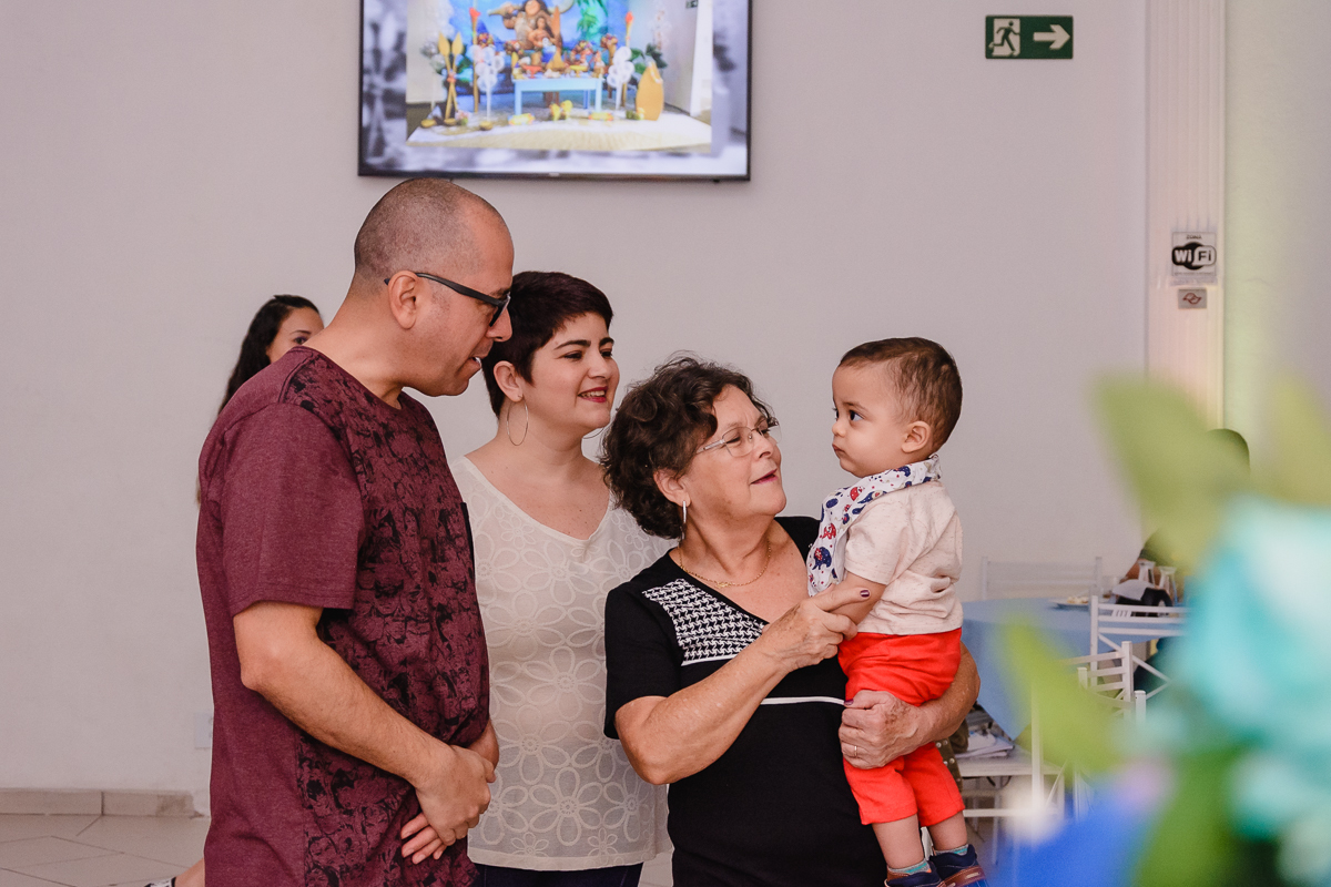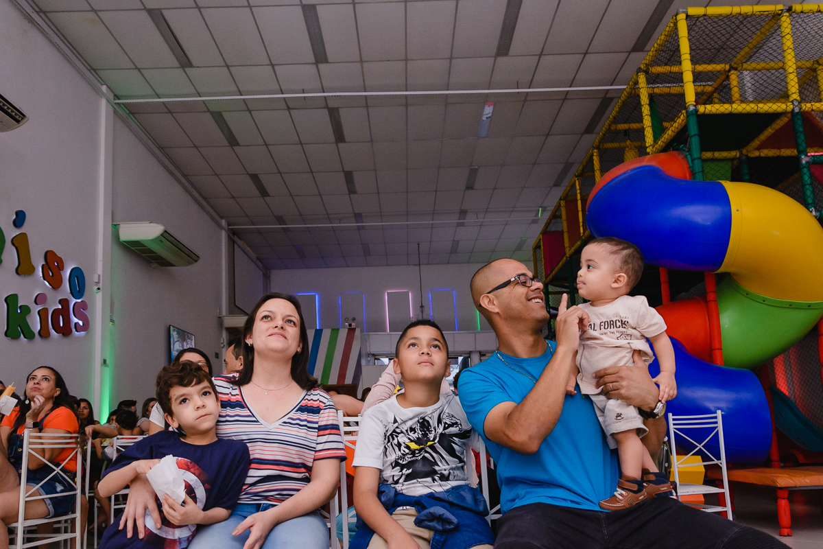 Pensa em um pequeno que brincou a festa toda, não parou um minuto! E só queria andar dando a mãozinha pra mamãe, pro papai e avós. Abraçou e sorriu pro seu irmão mais velho.Também escalou brinquedos com as titias aventureiras e adorou! Depois conheceu a mesa linda do Mundo Bita e brincou com um dado de madeira grande e colorido e se divertiu!