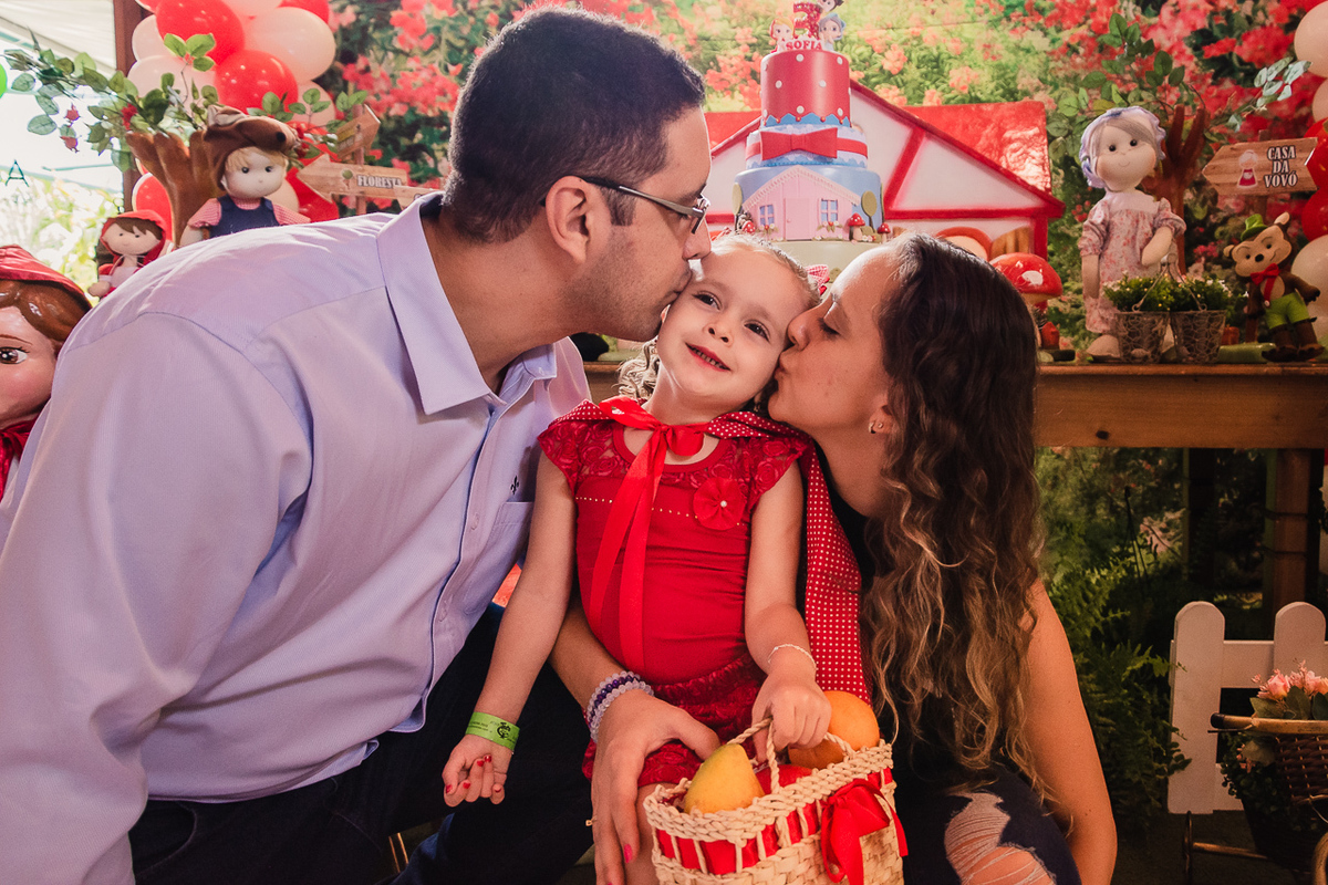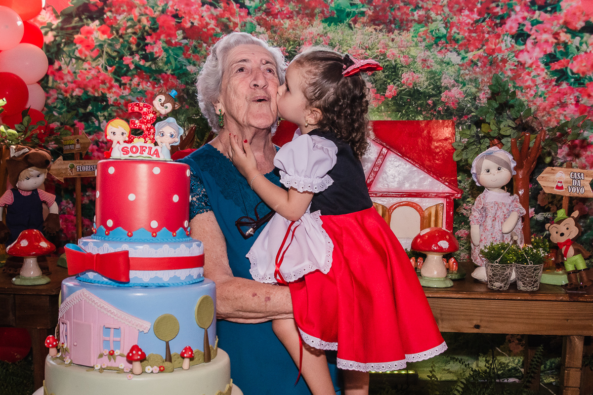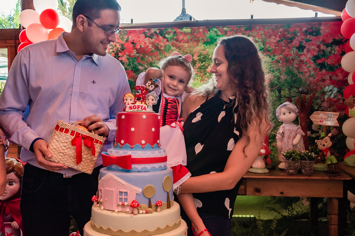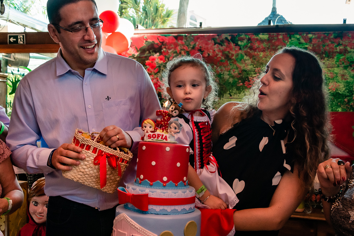 Hora do parabéns, hora da mudança no figurino! A titia, a mamãe e a prima Larissa ajudaram a Soso na troca de vestido. Depois pausa para umas fotinhos solo, toda linda de Chapeuzinho Vermelho.