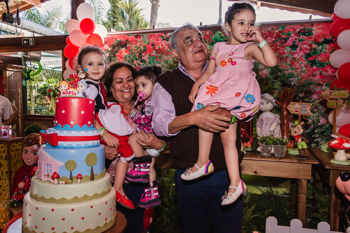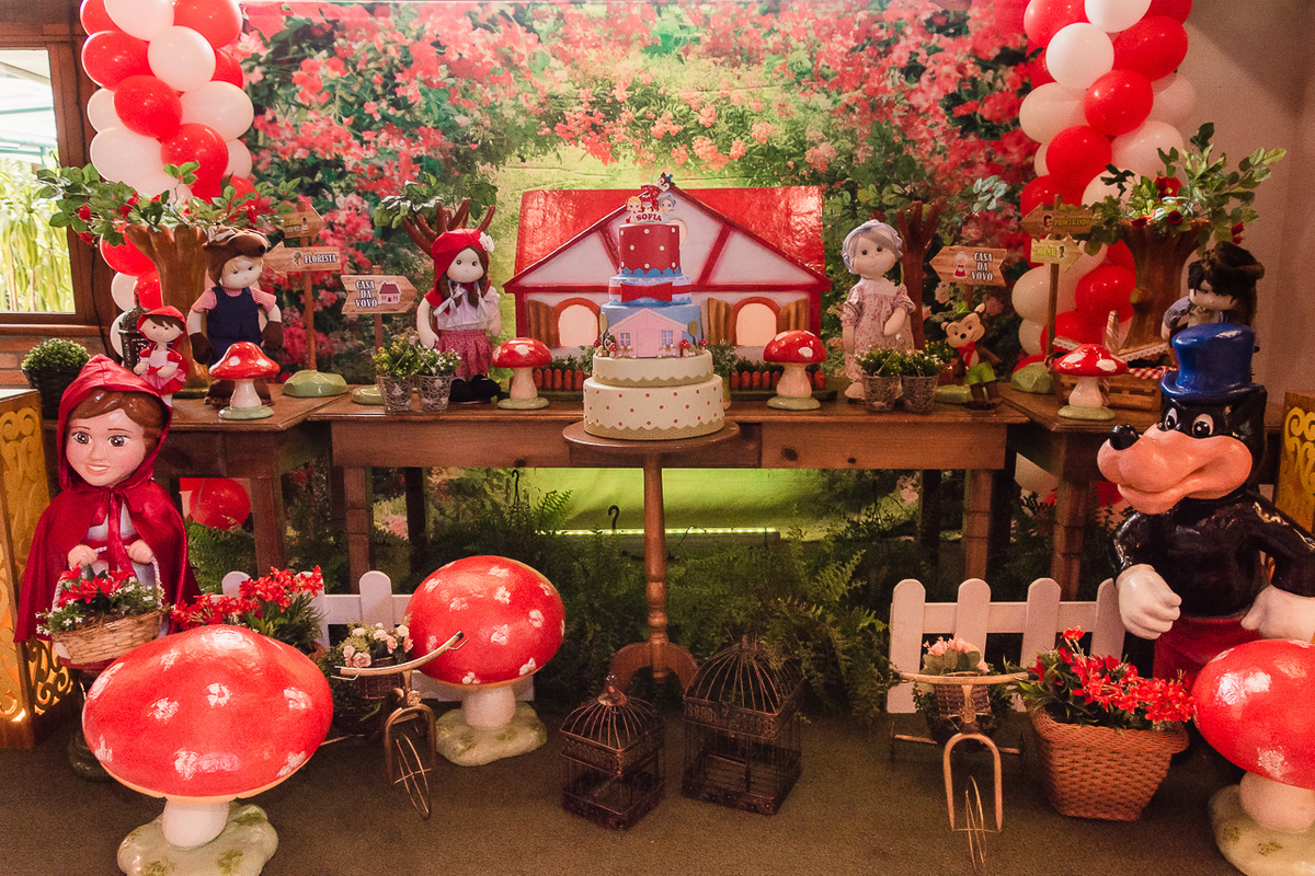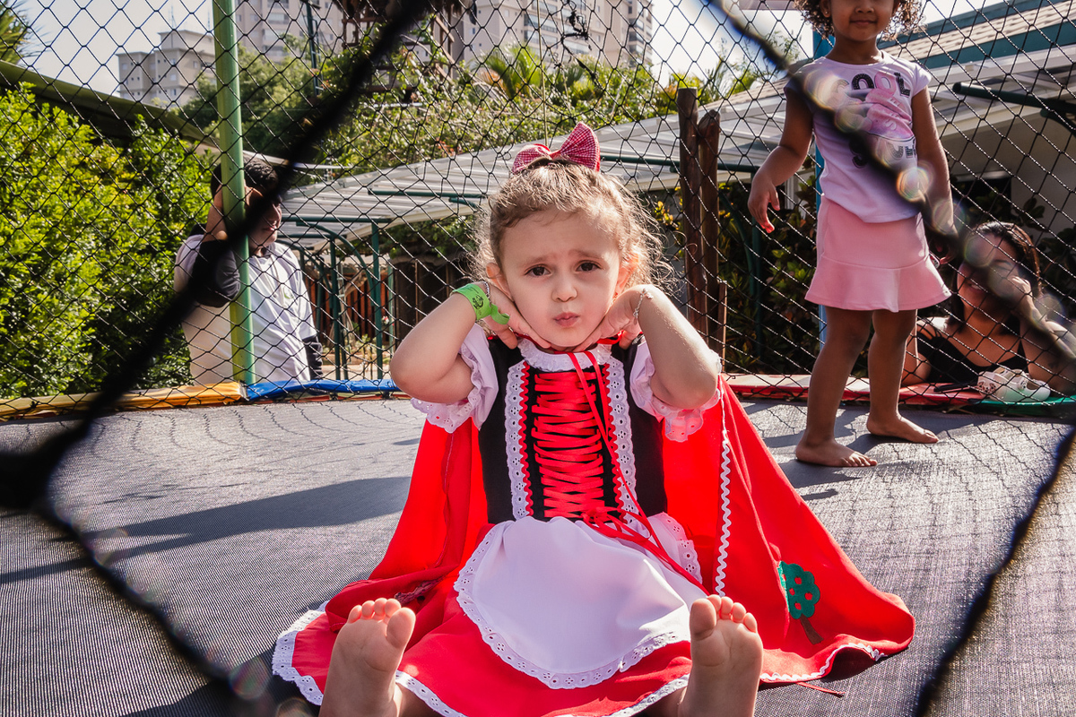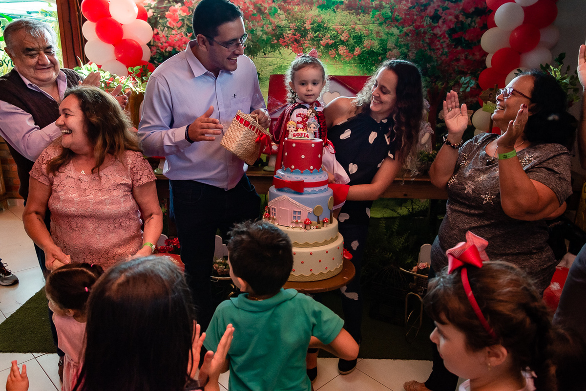 Hora do parabéns, hora da mudança no figurino! A titia, a mamãe e a prima Larissa ajudaram a Soso na troca de vestido. Depois pausa para umas fotinhos solo, toda linda de Chapeuzinho Vermelho.