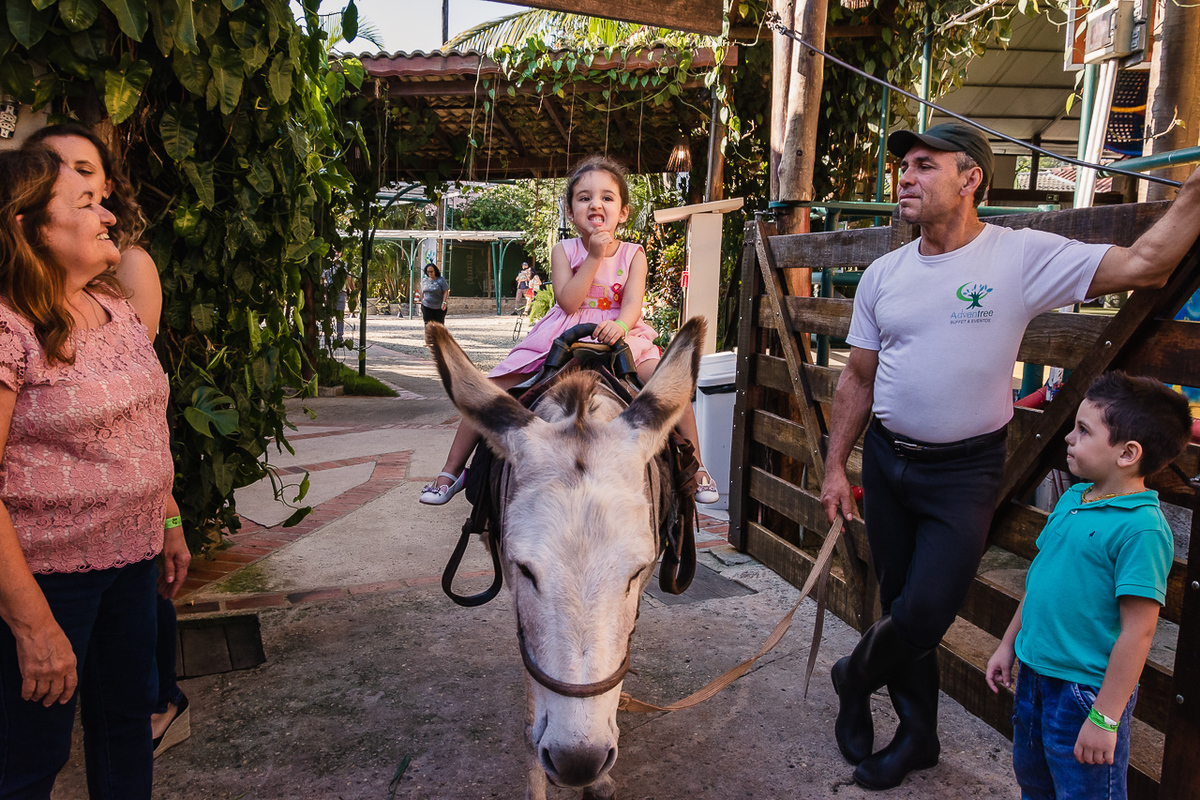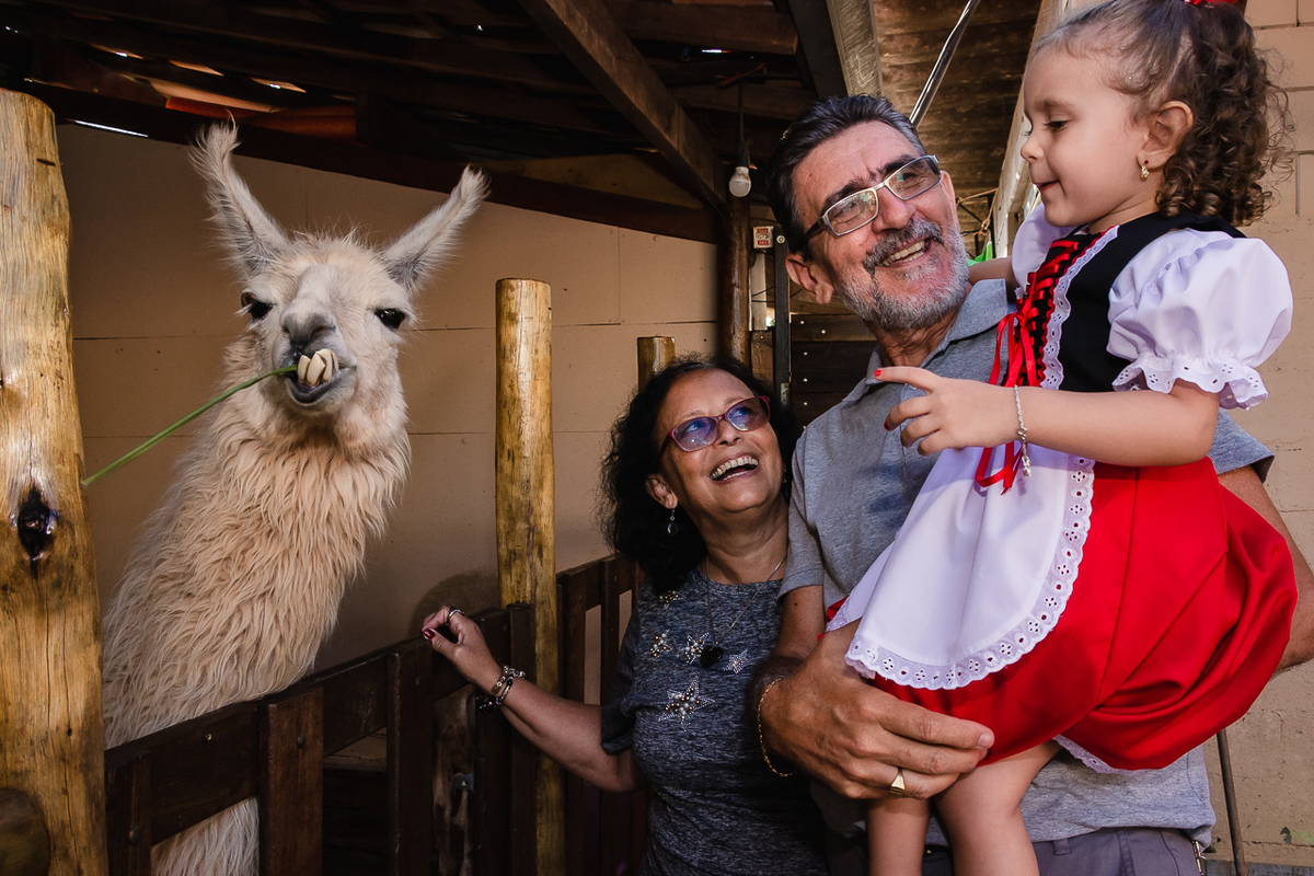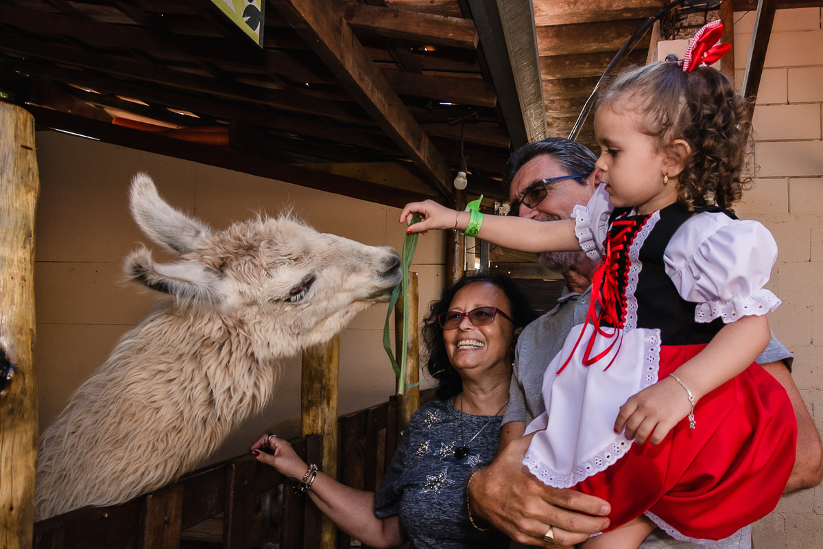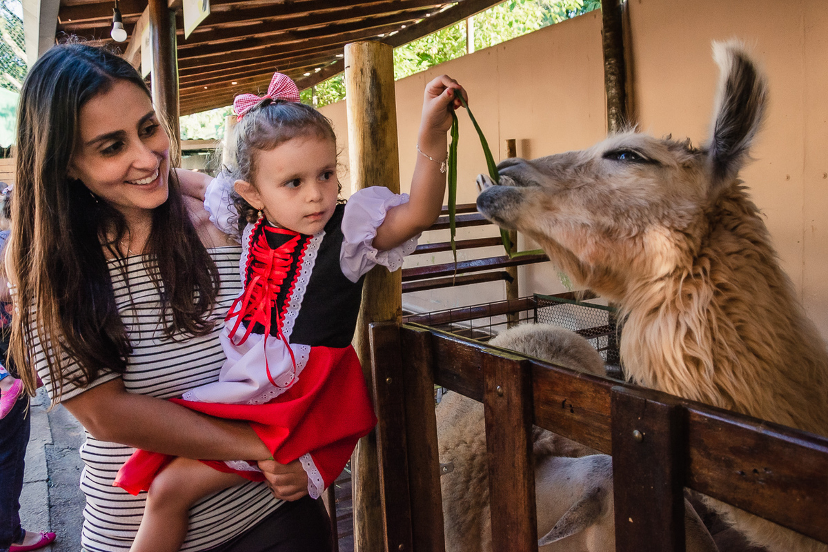 Após o parabéns foi a hora de curtir os animais! A Soso deu de comer para a lhama e para a vaquinha e terminou sua tarde em um passeio em um pônei fofinho!