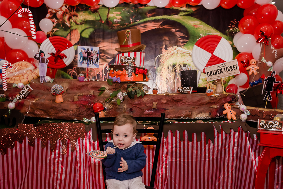 Com o tema, A FANTÁSTICA FABRICA DE CHOCOLATE, sua primeira festinha, realizada no Buffet Mergulhinho em São Paulo -SP, foi muito animada! Ele recebeu o carinho de todos que estavam presentes e até da família do papai Cristian que mora em Portugal, que acompanharam tudo pela chamada de vídeo!