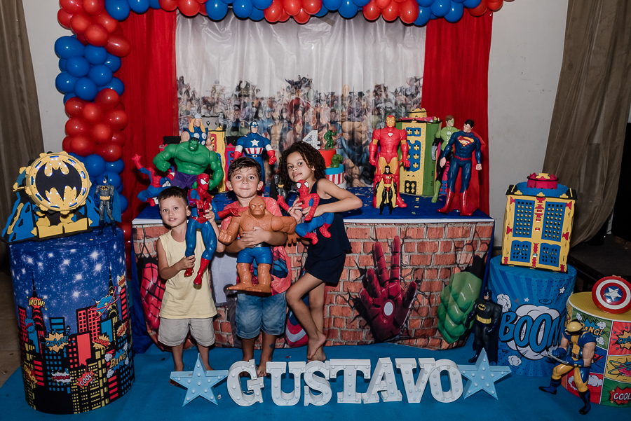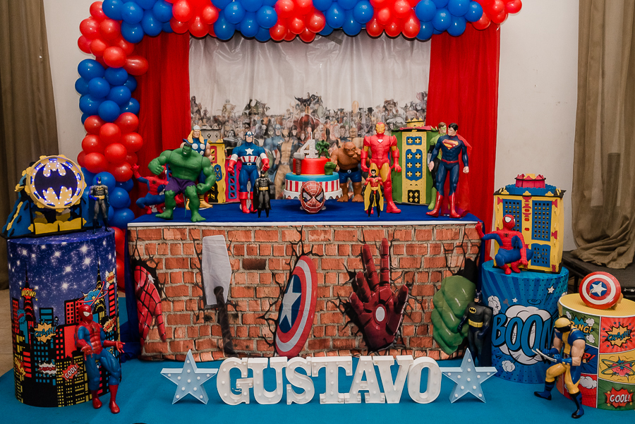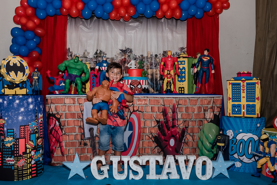Gustavo completou 4 anos e nada melhor do que uma festa com seu tema favorito, os heróis mais queridos das histórias em quadrinhos, para comemorar com a família e amigos esse momento tão especial...mais um ano de vida.