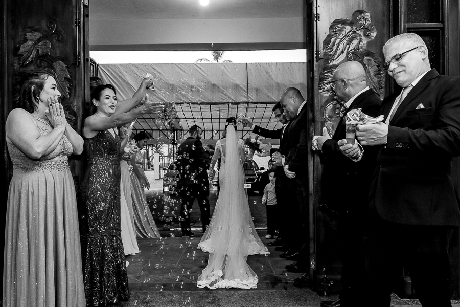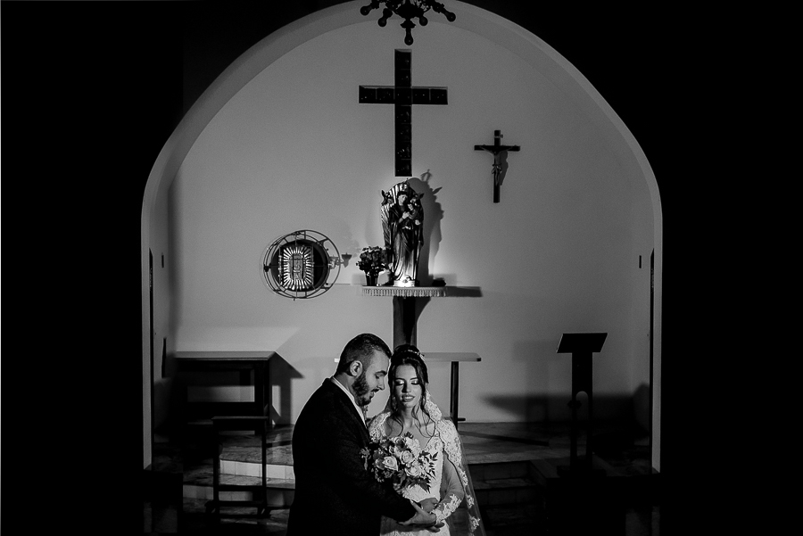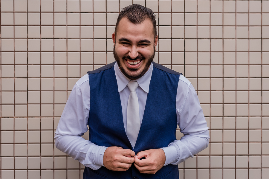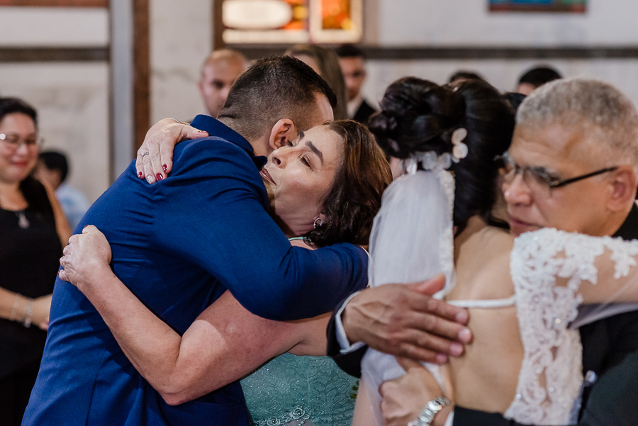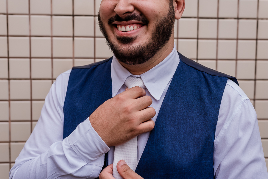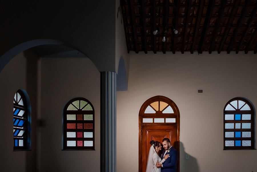 Após o final da cerimônia, enquanto os convidados seguiram para o salão onde a recepção foi realizada, nós seguimos até a Capela Nossa Senhora do Perpétuo Socorro, mais um detalhe escolhido pelos noivos, já que o primeiro beijo foi enfrente a uma capela. Sempre muito divertidos e conectados, mais uma vez eles se entregaram e nós fizemos retratos de seus primeiros momentos dessa nova jornada juntos!