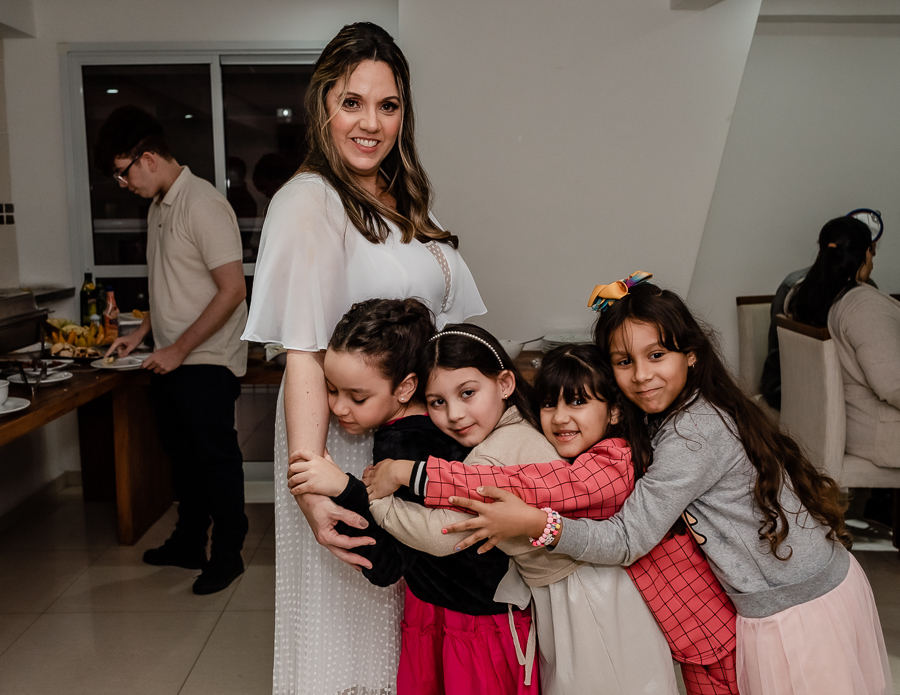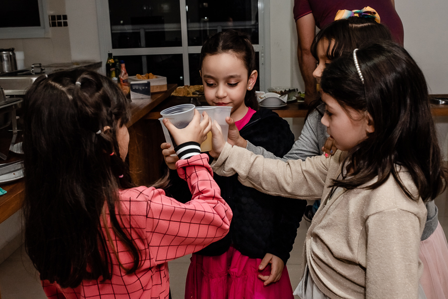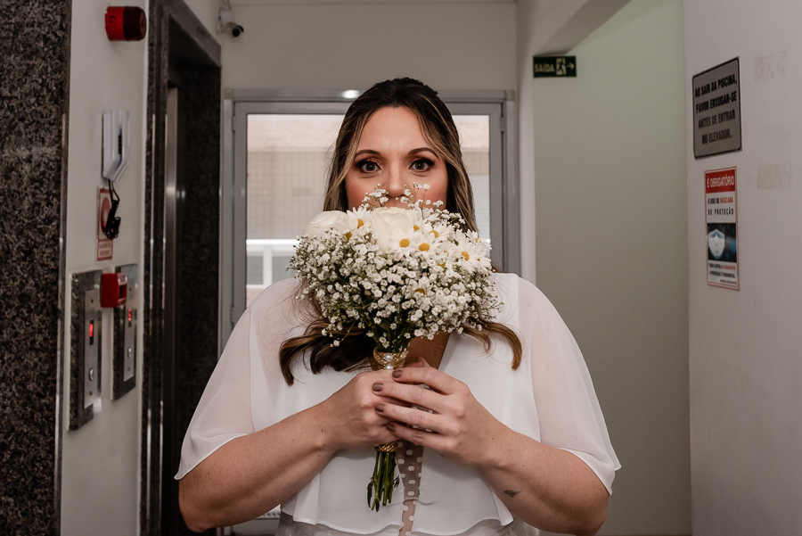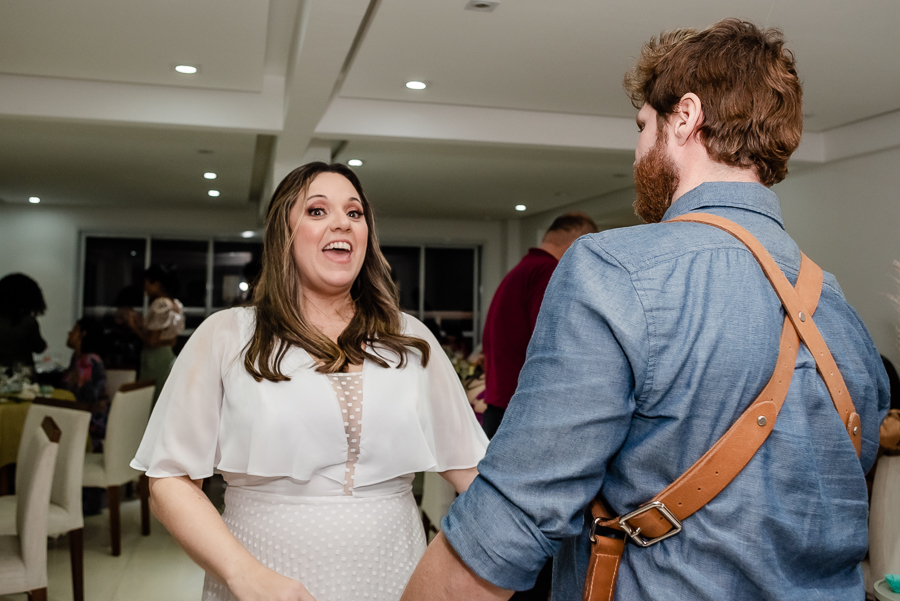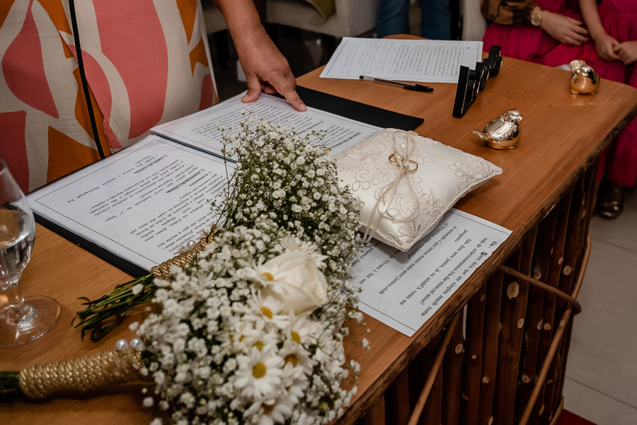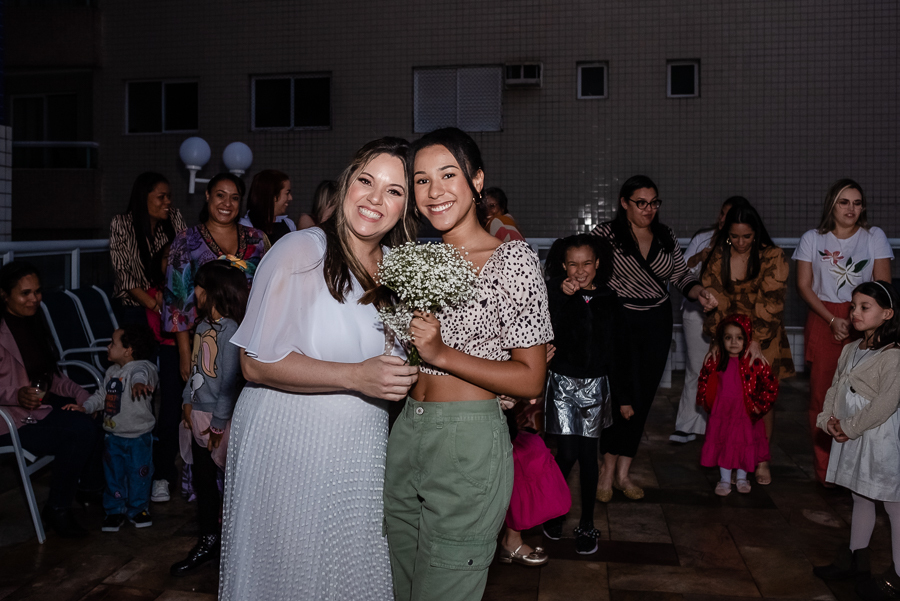 Enquanto aguardavam os convidados, fizemos algumas fotos da Magda e seu filho no apartamento da família. Depois seguimos para o salão de festas para dar início a cerimônia. Na presença de suas famílias e amigos, o casal celebrou sua união com uma linda cerimônia e troca de votos. As lindas daminhas foram sua filha e sua sobrinha, que entraram trazendo as alianças e encantando a todos.